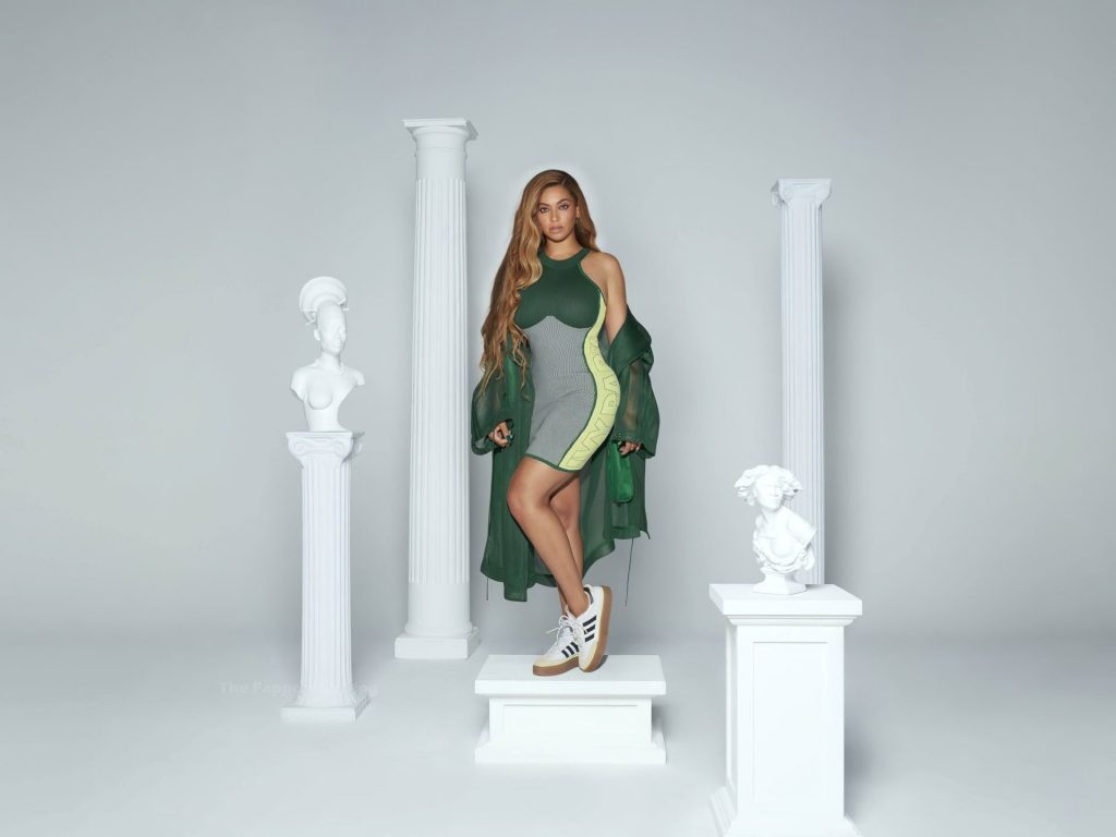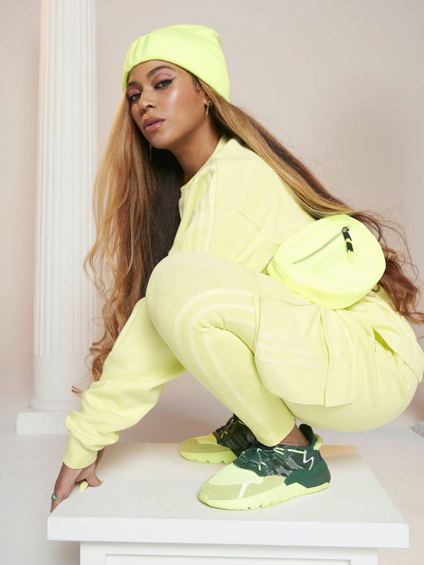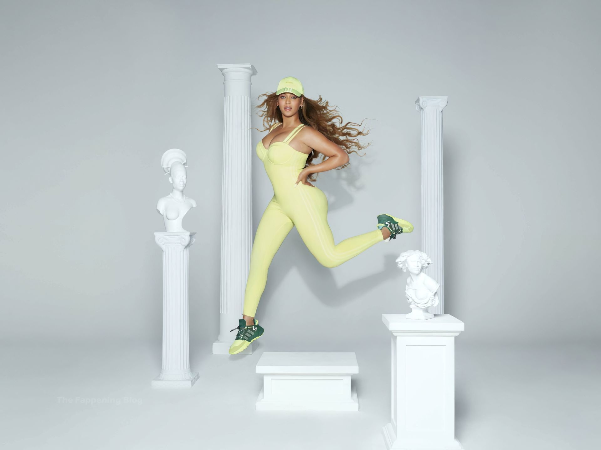 La chanteuse Beyonce montre son corps tonique et un superbe décolleté alors qu’elle pose pour une séance photo de la collection Adidas x Ivy Park (octobre 2020).