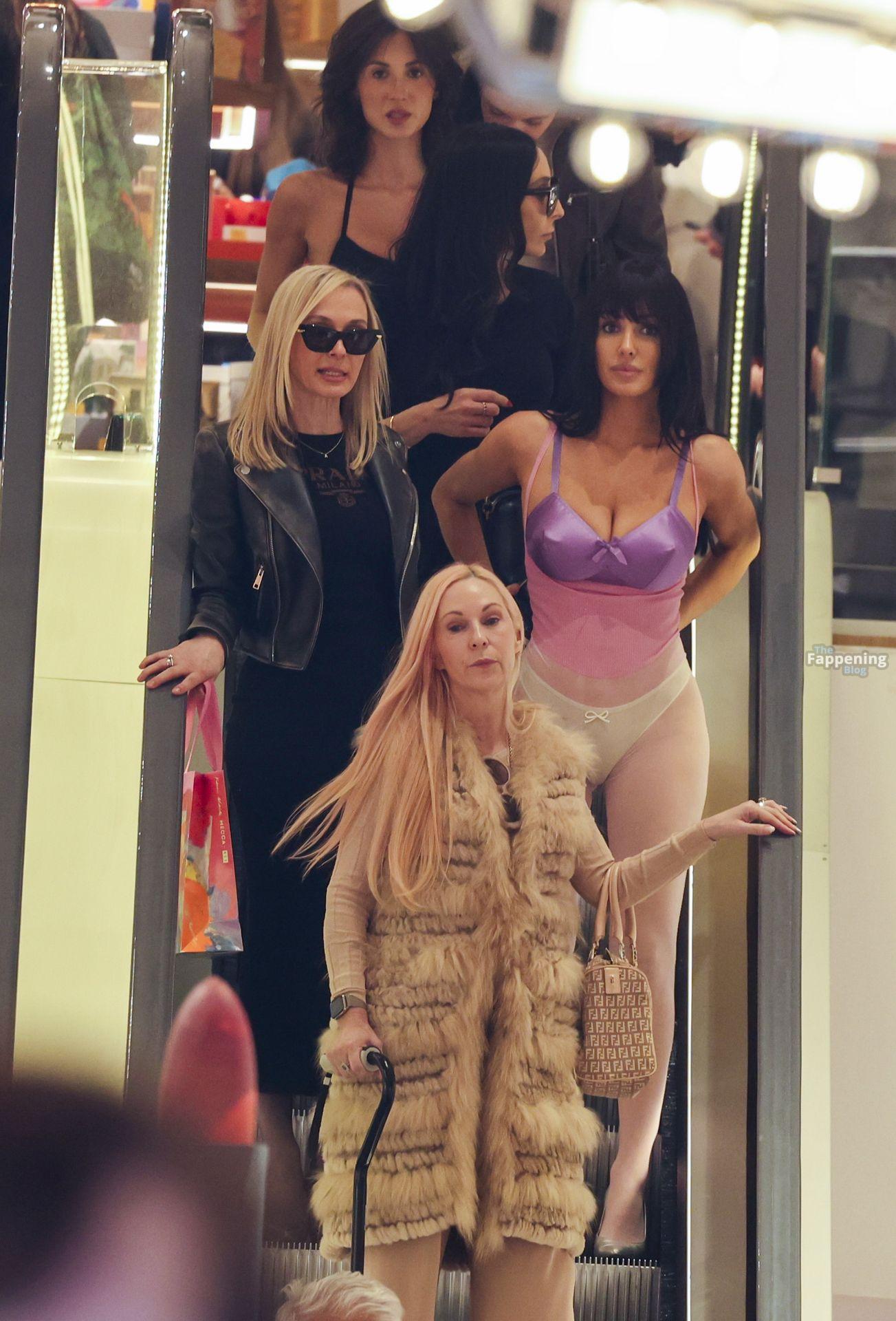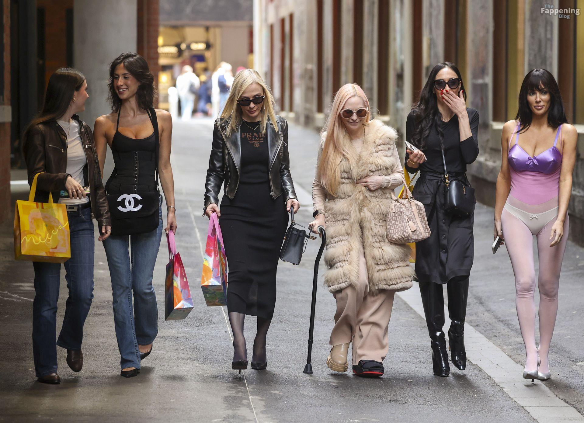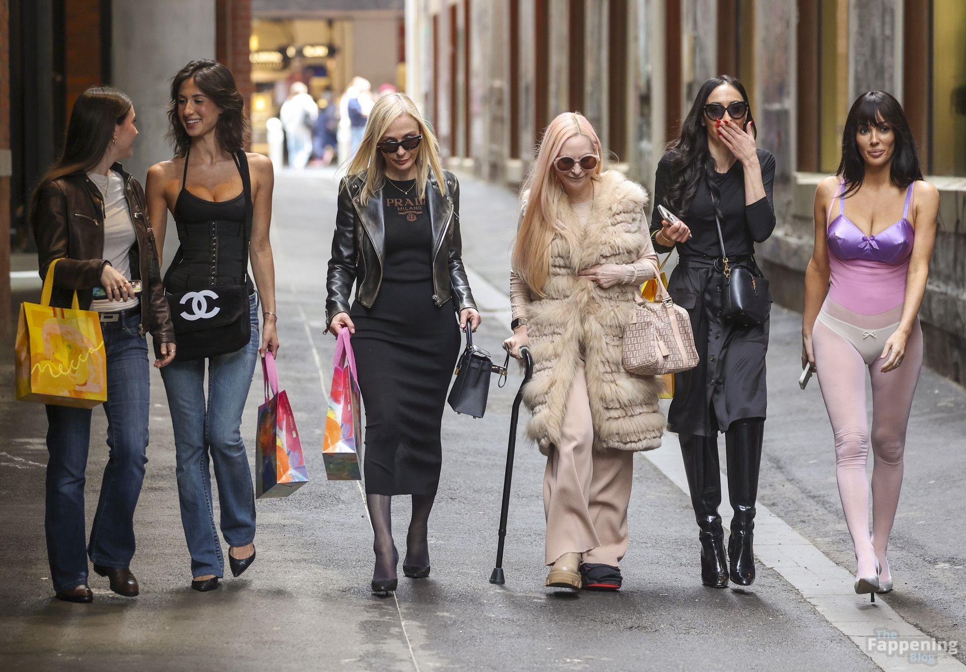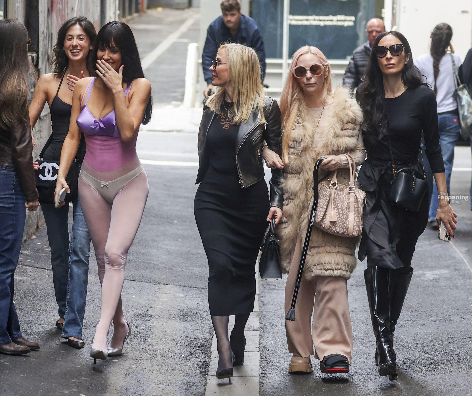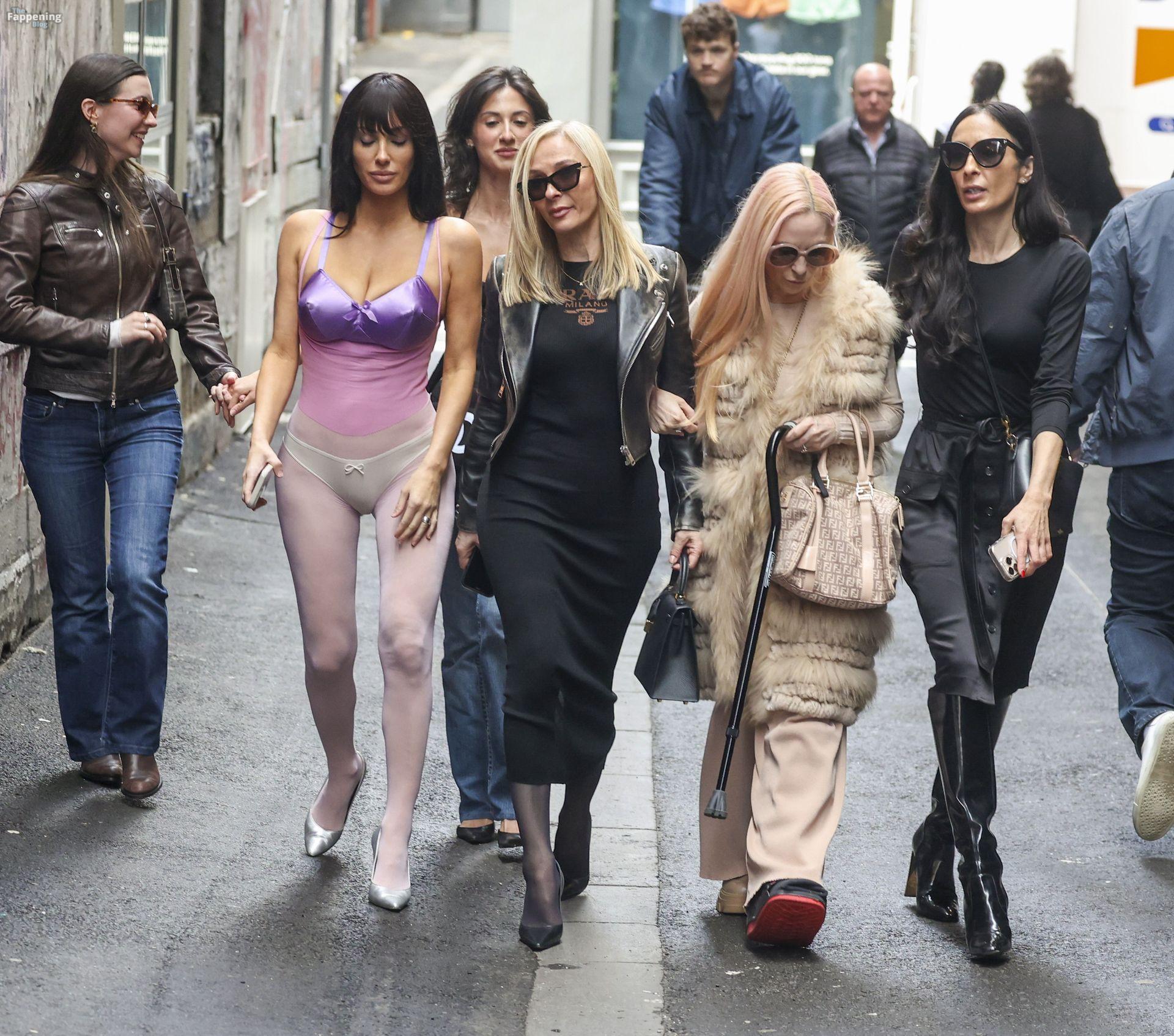 Bianca Censori a été aperçue à Melbourne, en Australie, lors d’une sortie shopping en famille, portant un body violet transparent qui mettait en valeur ses atouts. Elle l’a assorti à un soutien-gorge métallique violet et un sous-vêtement blanc, marchant avec sa mère Alexandra, sa sœur Angelina et quelques proches. Ils se sont rendus chez Mecca pour un butin beauté et ont flâné dans les ruelles du CBD, semblant détendus malgré la pluie.