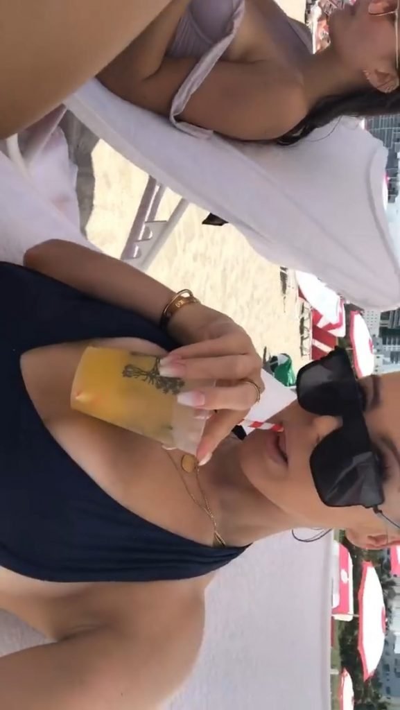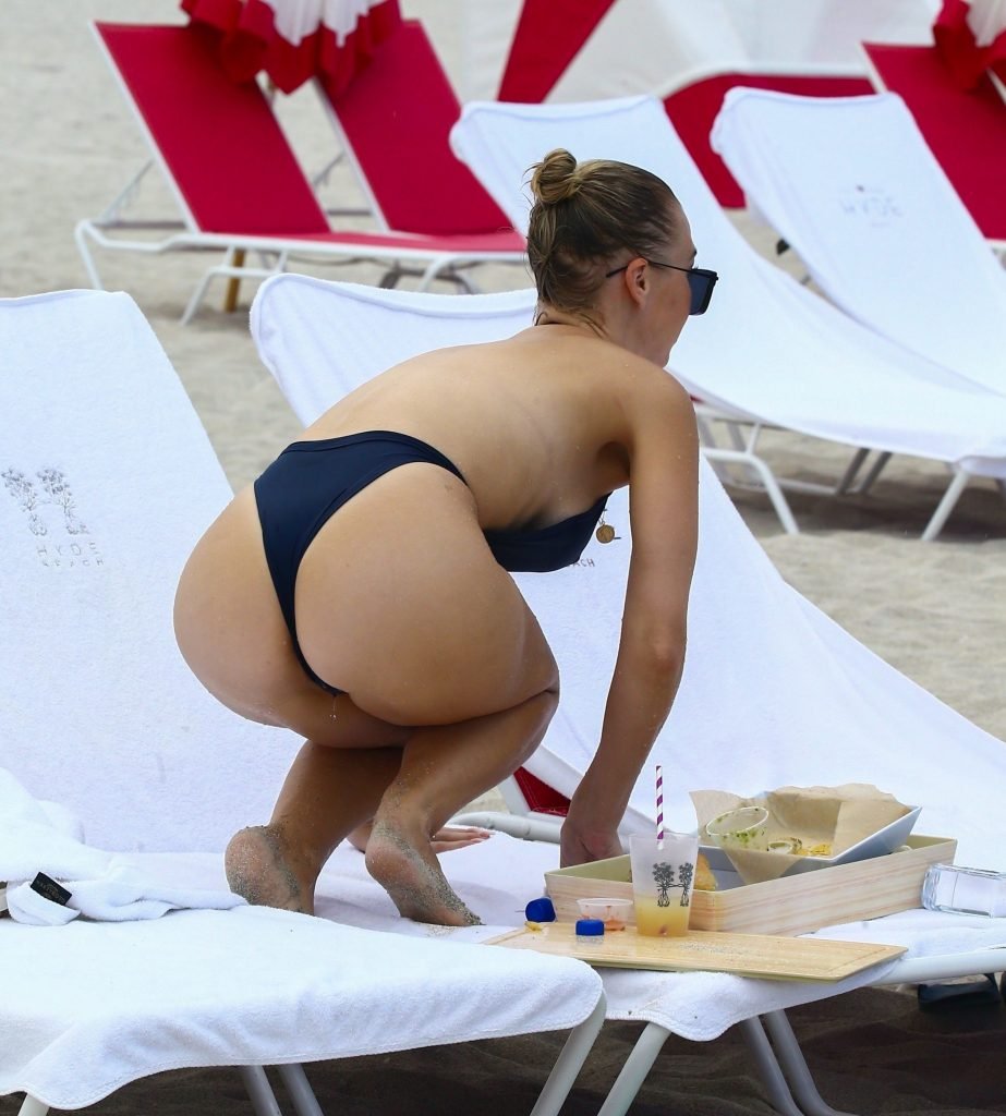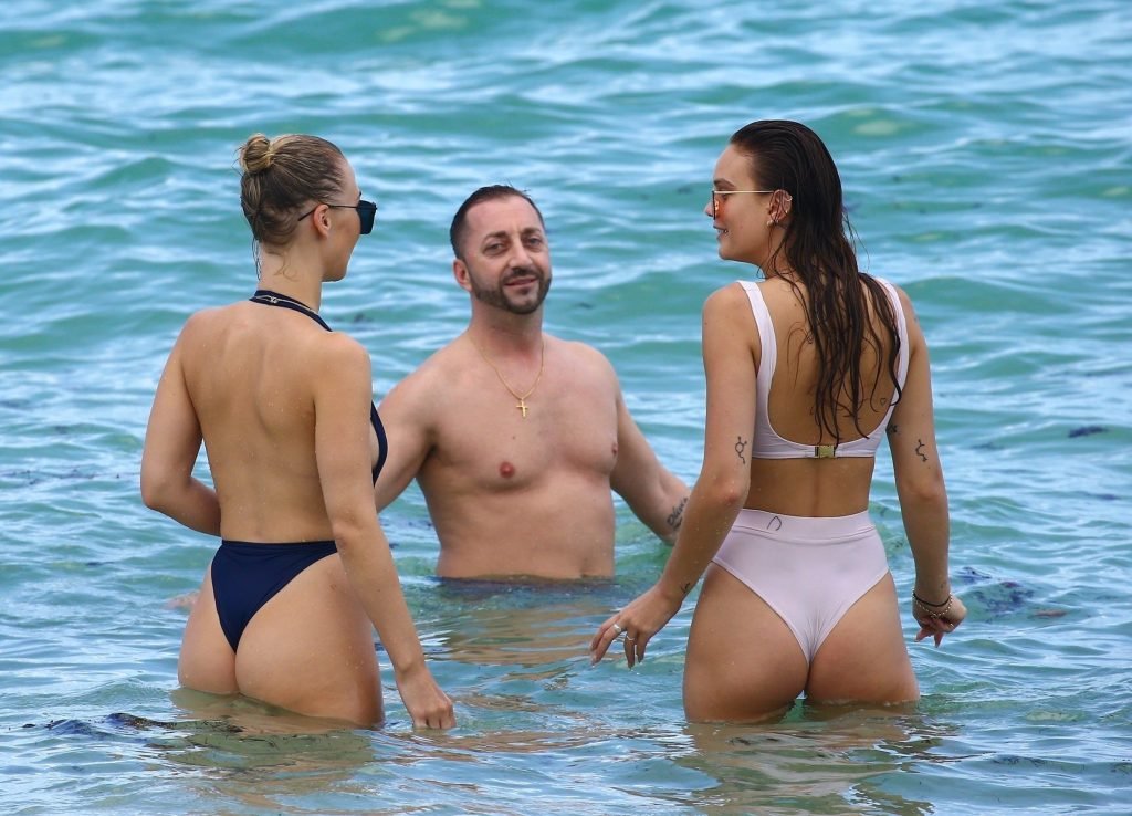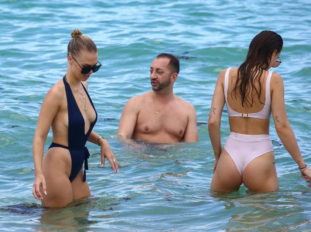 La créatrice de maillots de bain Bianca Elouise profite de la plage à Miami avec une amie, 26/07/2017.