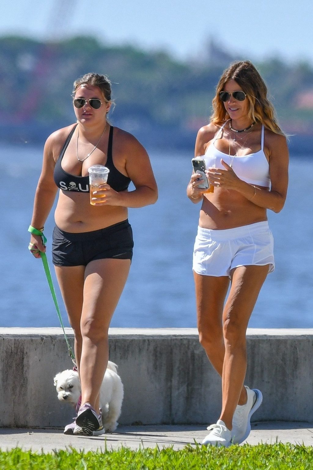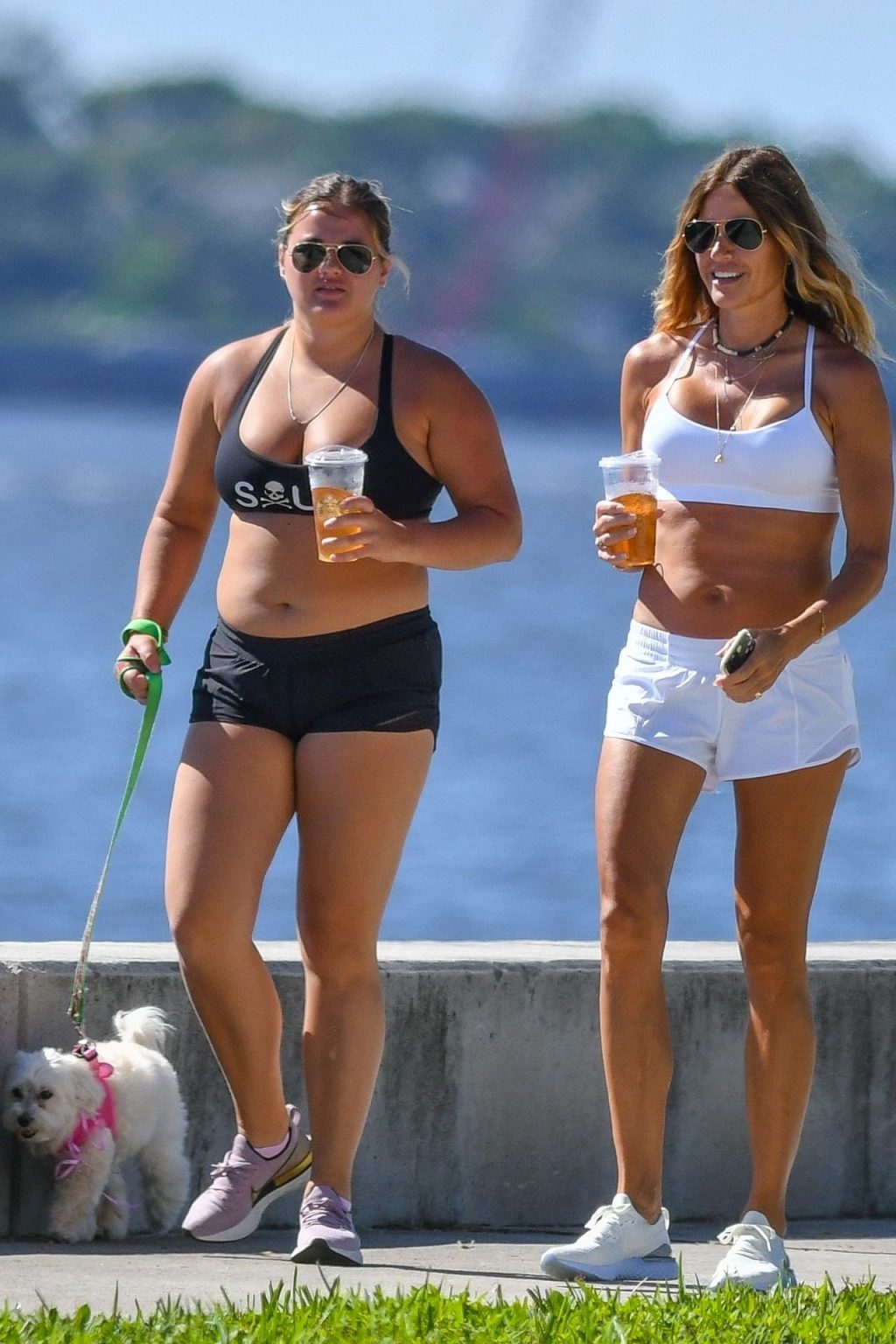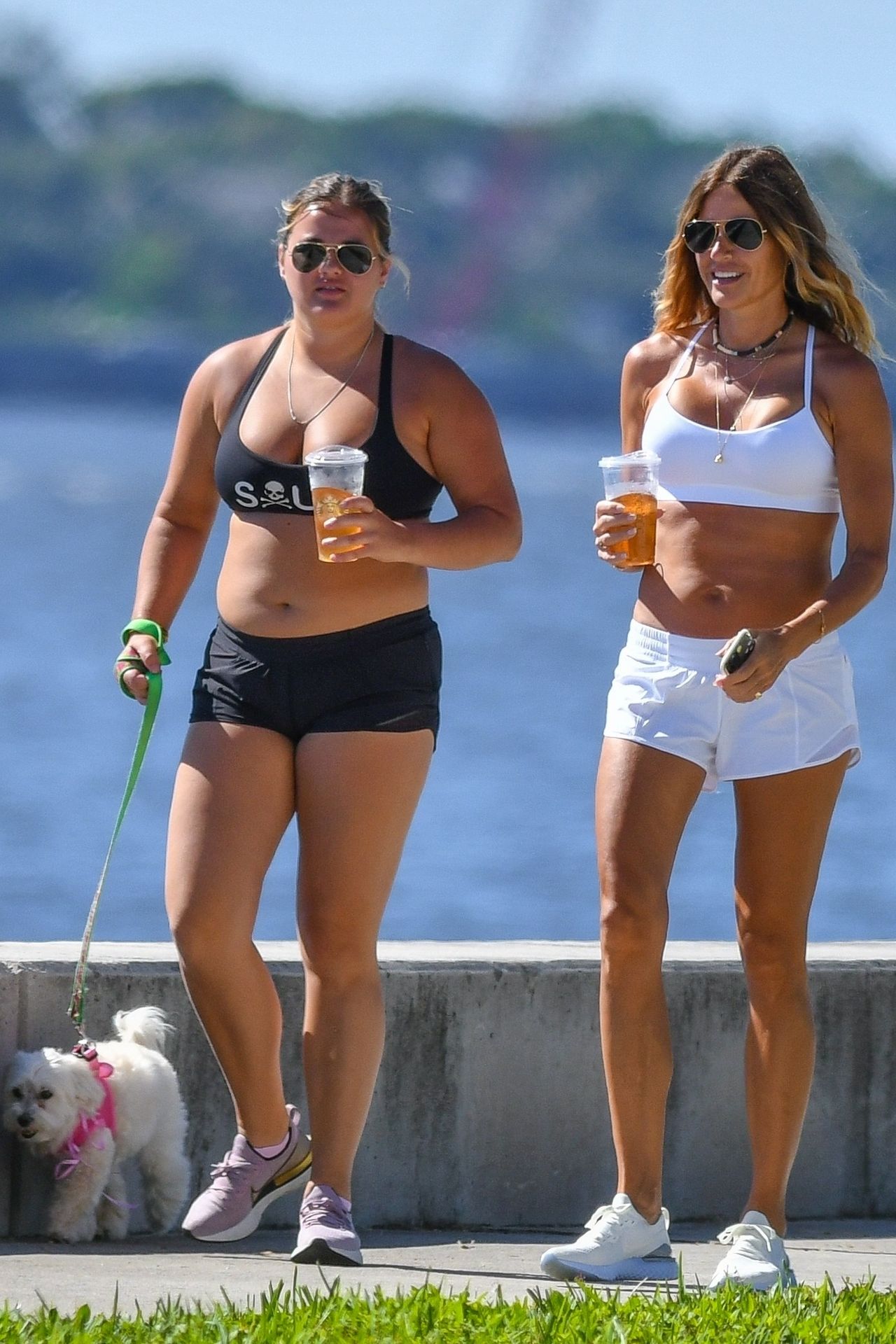 Kelly Bensimon se promène lors d’une belle journée en Floride avec sa fille pendant le confinement à Palm Beach, 01/05/2020. Elle fête ses 52 ans aujourd’hui !