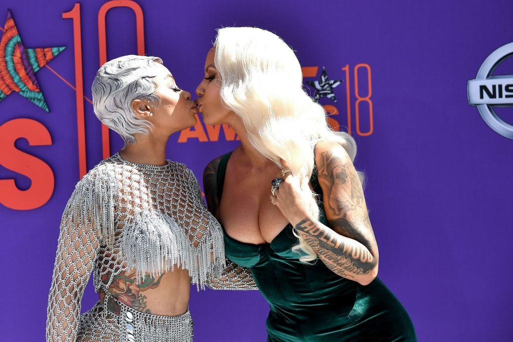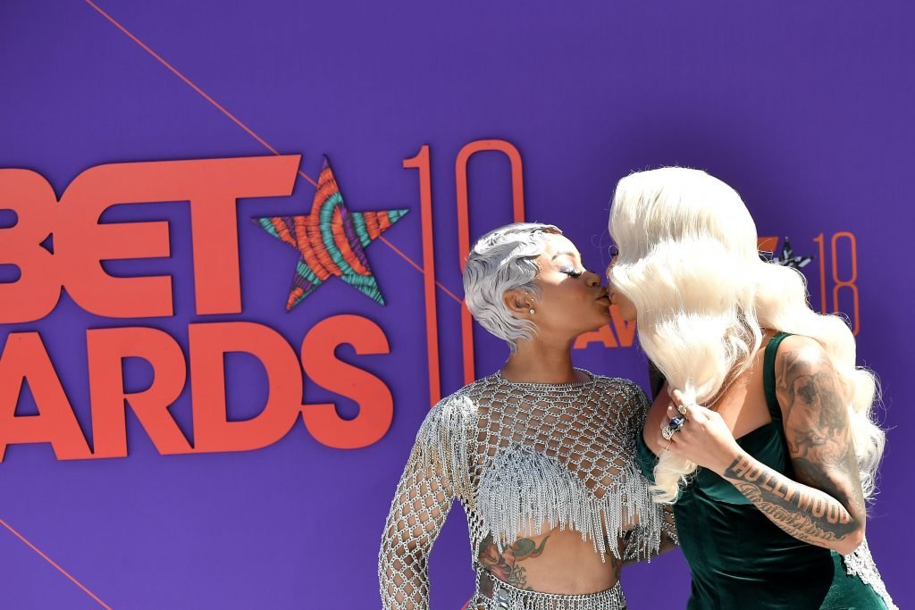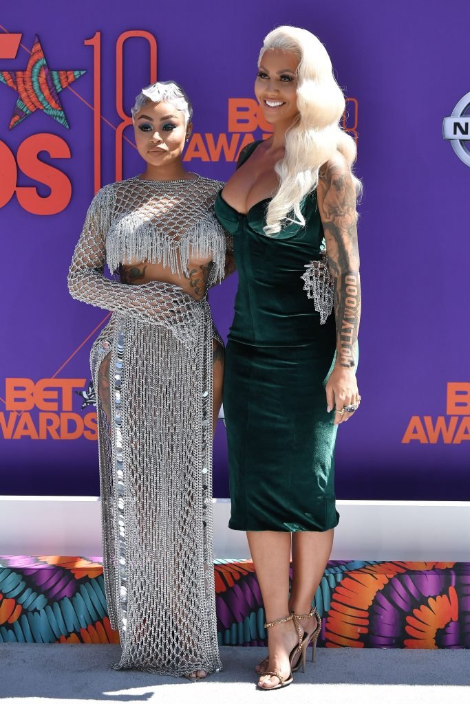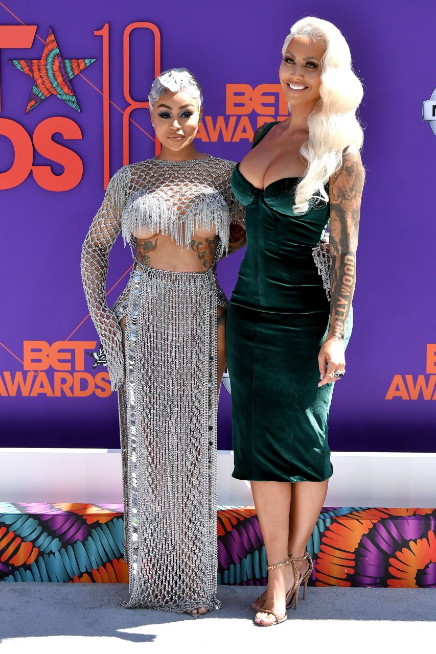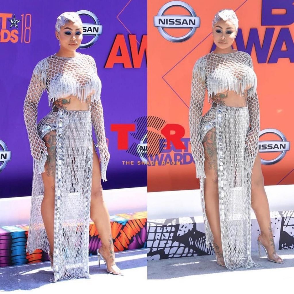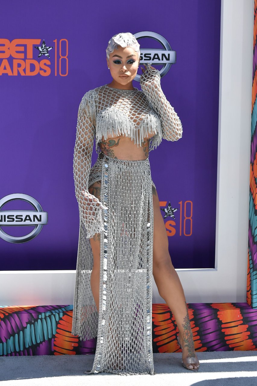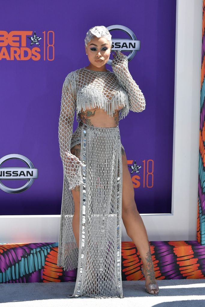 Busty Blac Chyna assiste aux BET Awards à Los Angeles, 24/06/2018. Le mannequin américain de 30 ans portait une tenue argentée en maille sans soutien-gorge.