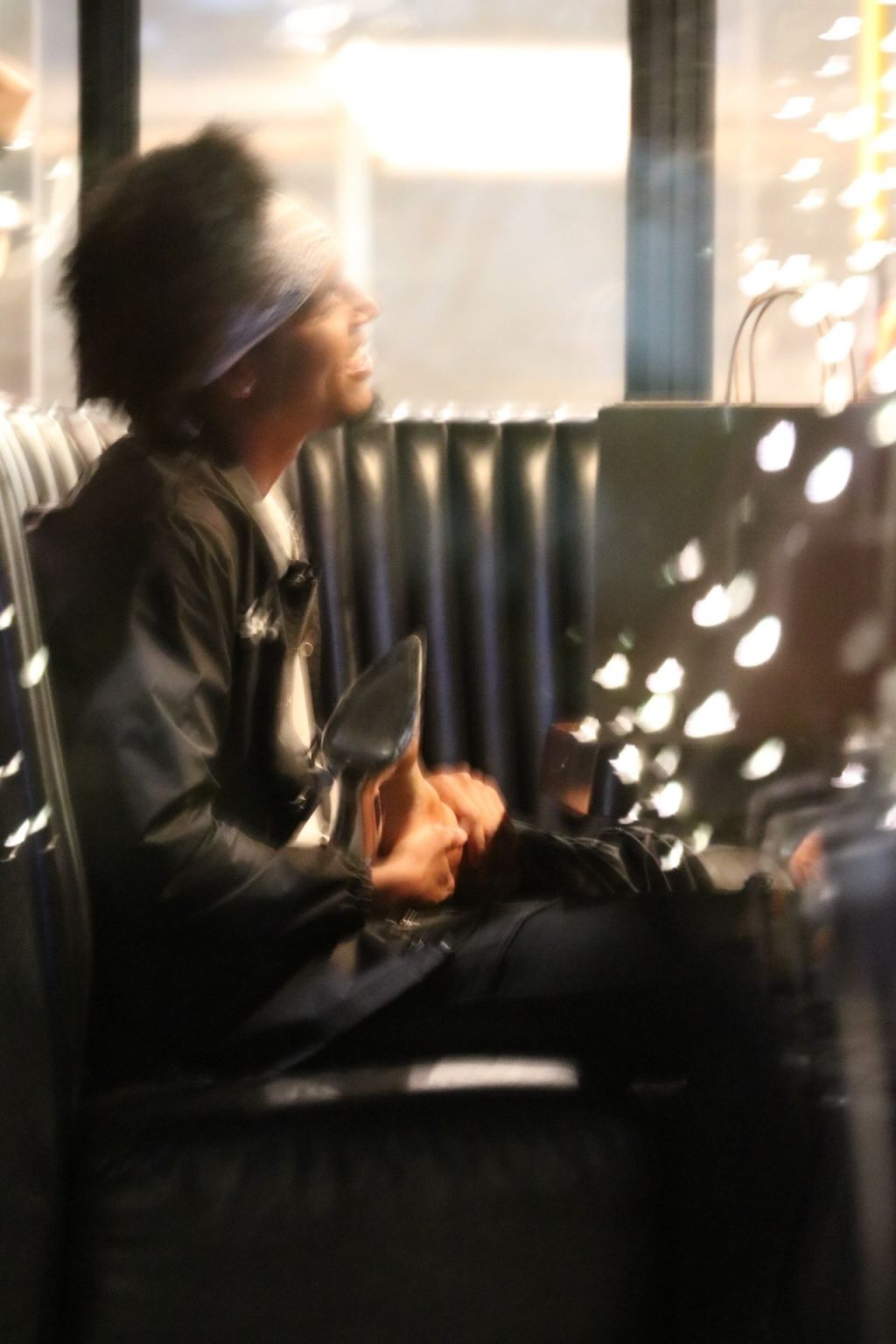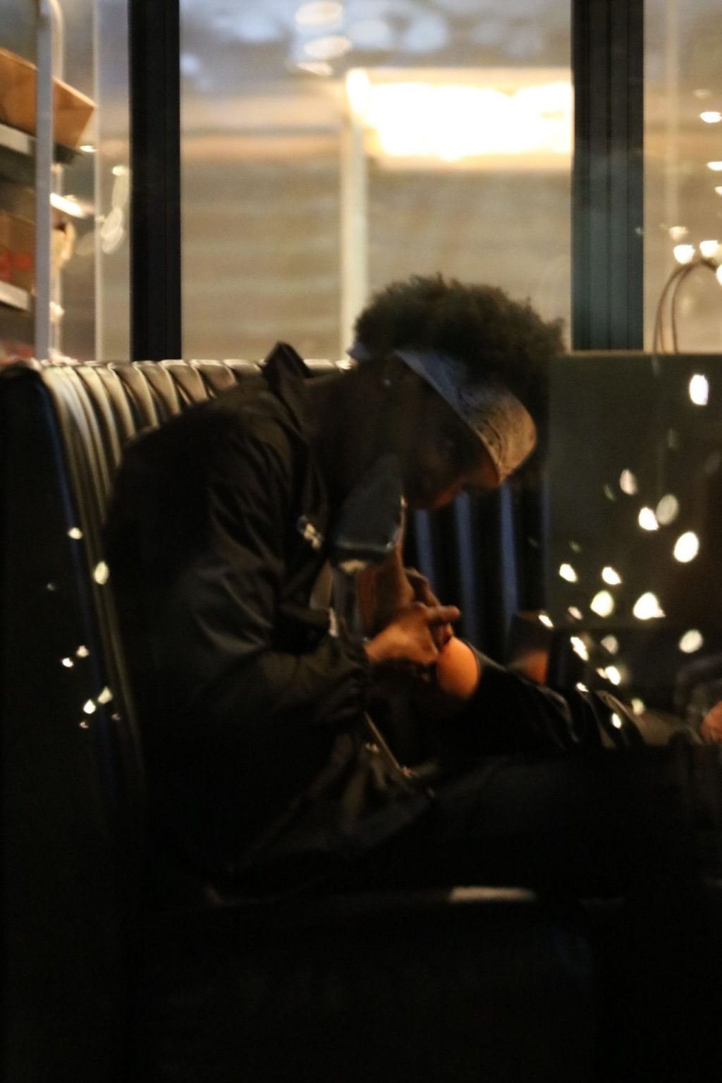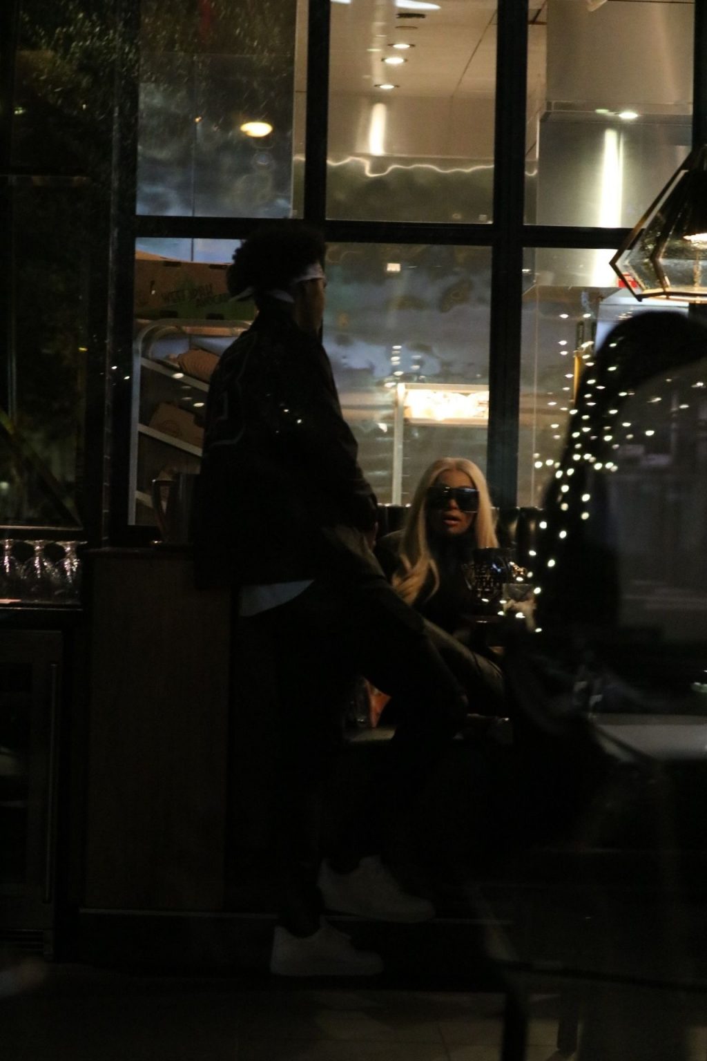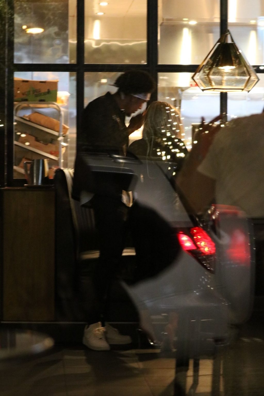 Le rendez-vous de Chyna a passé environ cinq bonnes minutes à choyer ses pieds après avoir terminé leur repas au restaurant Joeys à Woodland Hills, le 23/09/2019. Le couple a quitté le restaurant ensemble et le rendez-vous de Chyna s’est assuré de porter son « doggy bag » et d’ouvrir la porte côté passager pour elle.