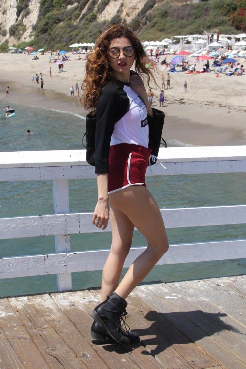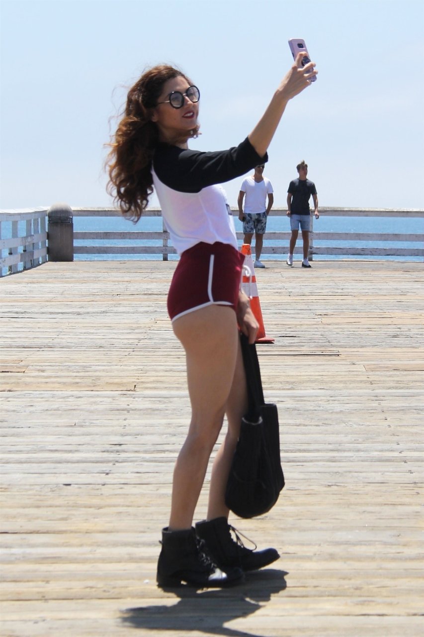 Actrice Blanca Blanco profite de la vue et prend quelques selfies en se promenant sur la jetée de Paradise Cove à Malibu, Californie, le 24/07/2018.