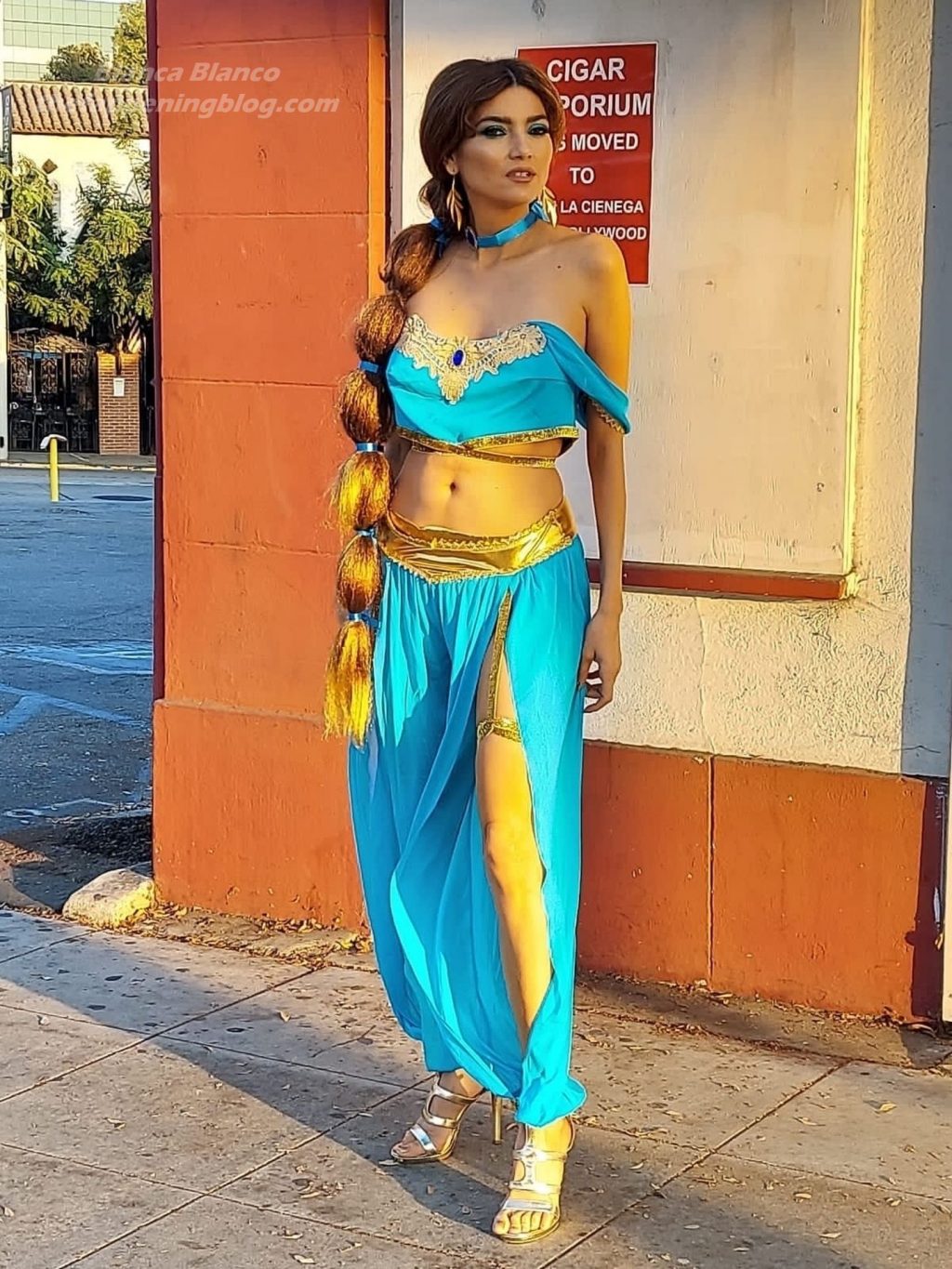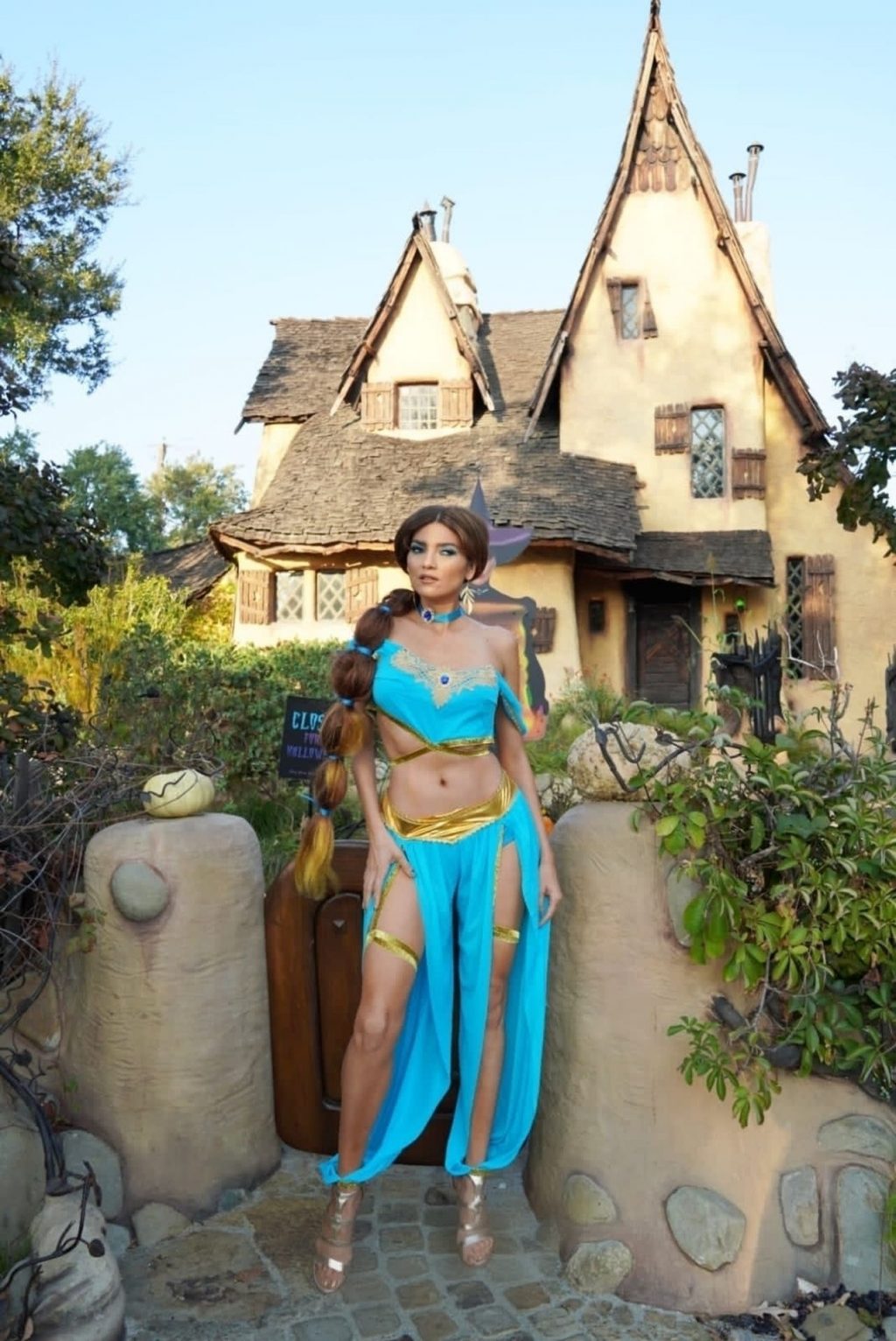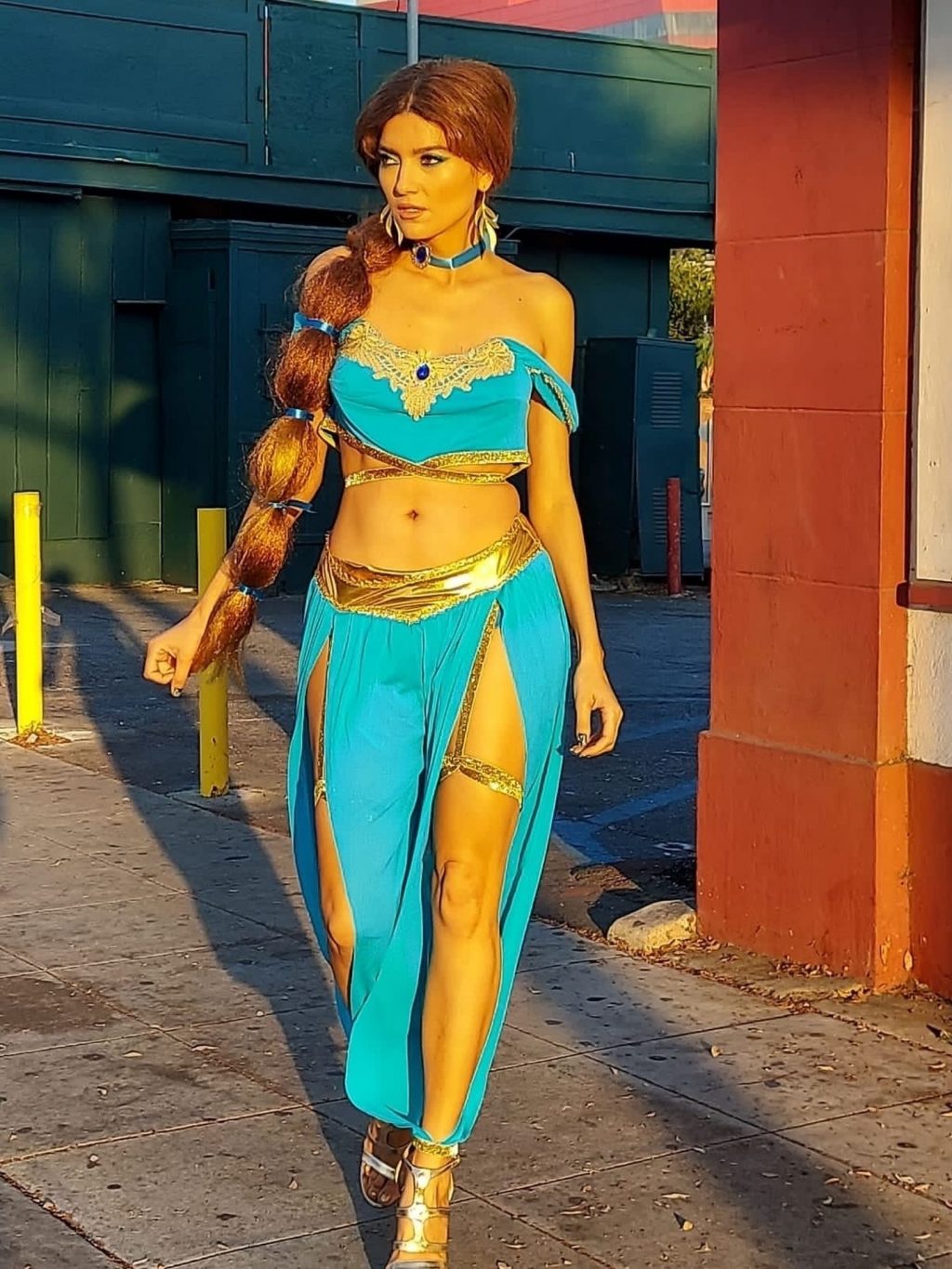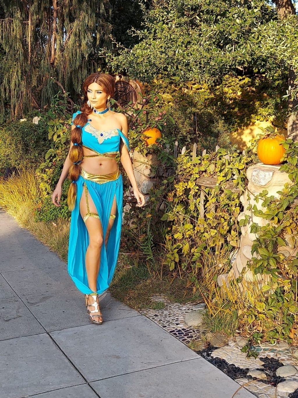 Blanca Blanco enfile un autre costume en tant que Princesse Jasmine d’Aladdin pour Halloween à West Hollywood, le 31/10/2020.