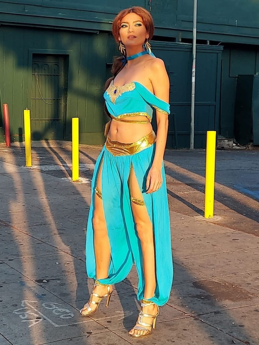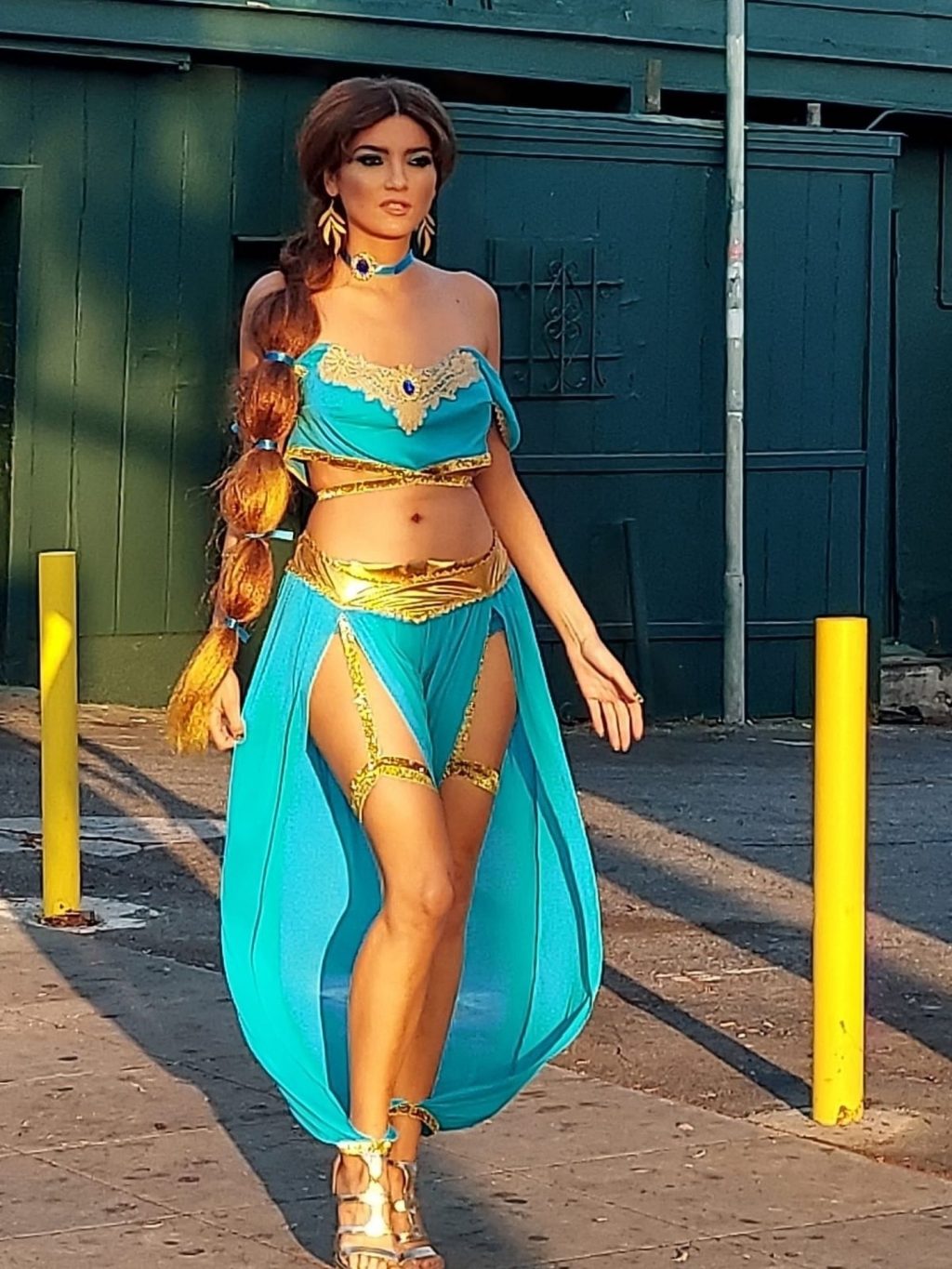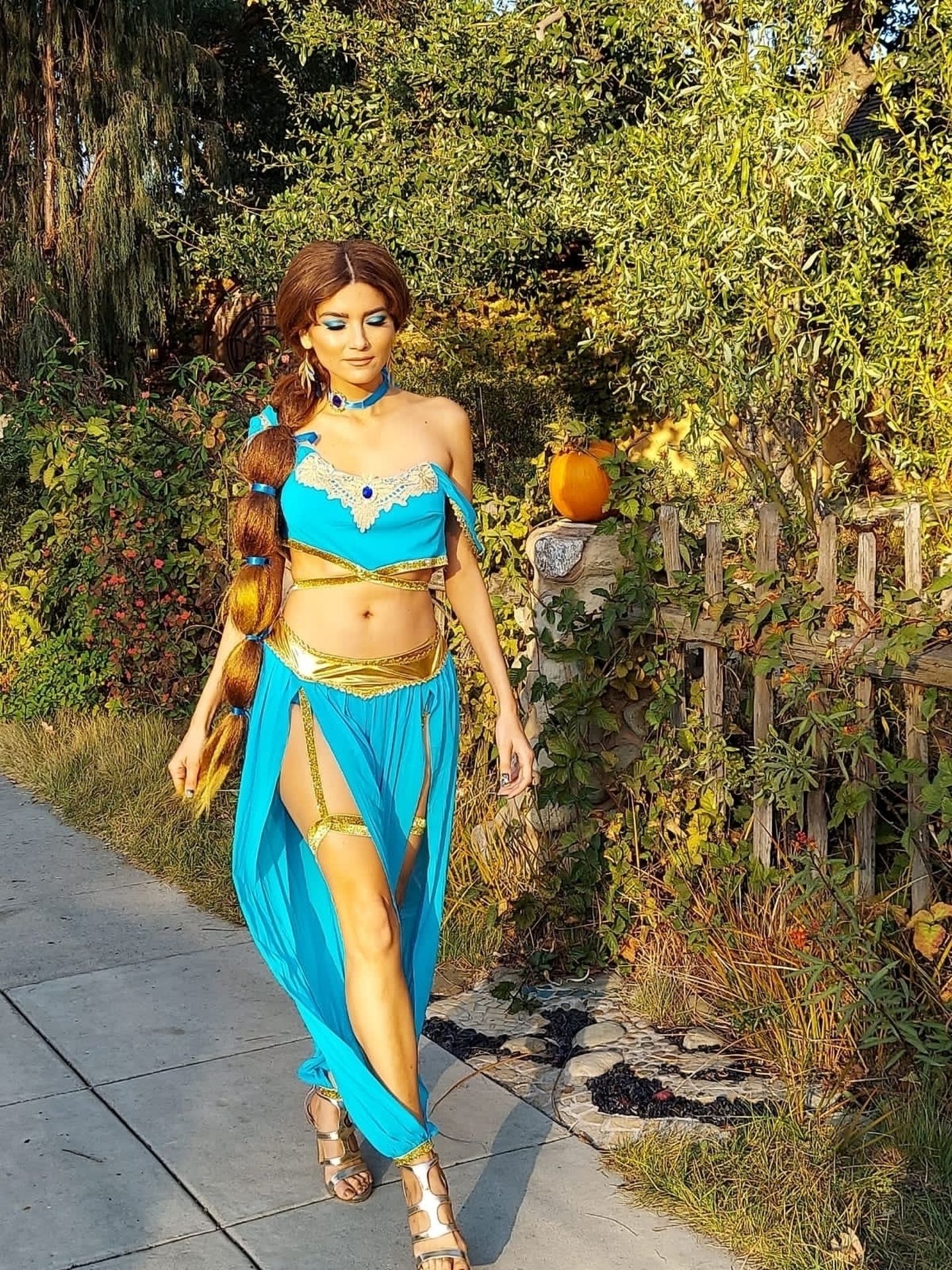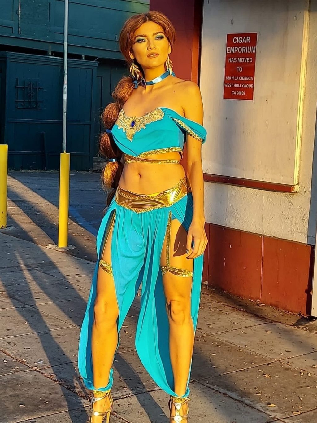 Blanca Blanco enfile un autre costume en tant que Princesse Jasmine d’Aladdin pour Halloween à West Hollywood, le 31/10/2020.