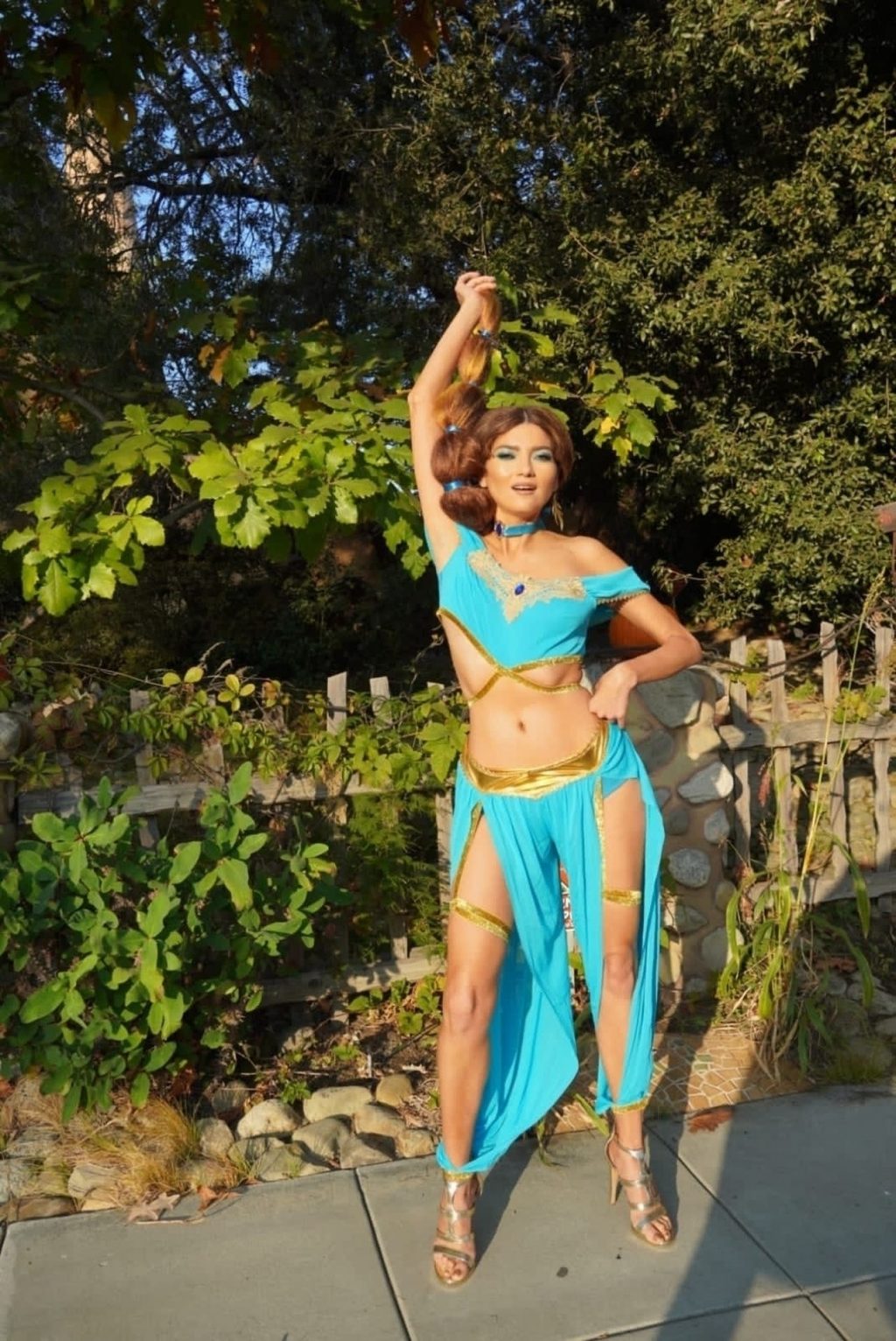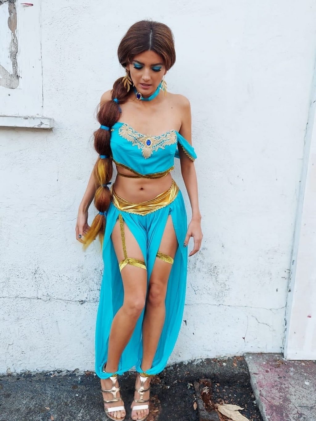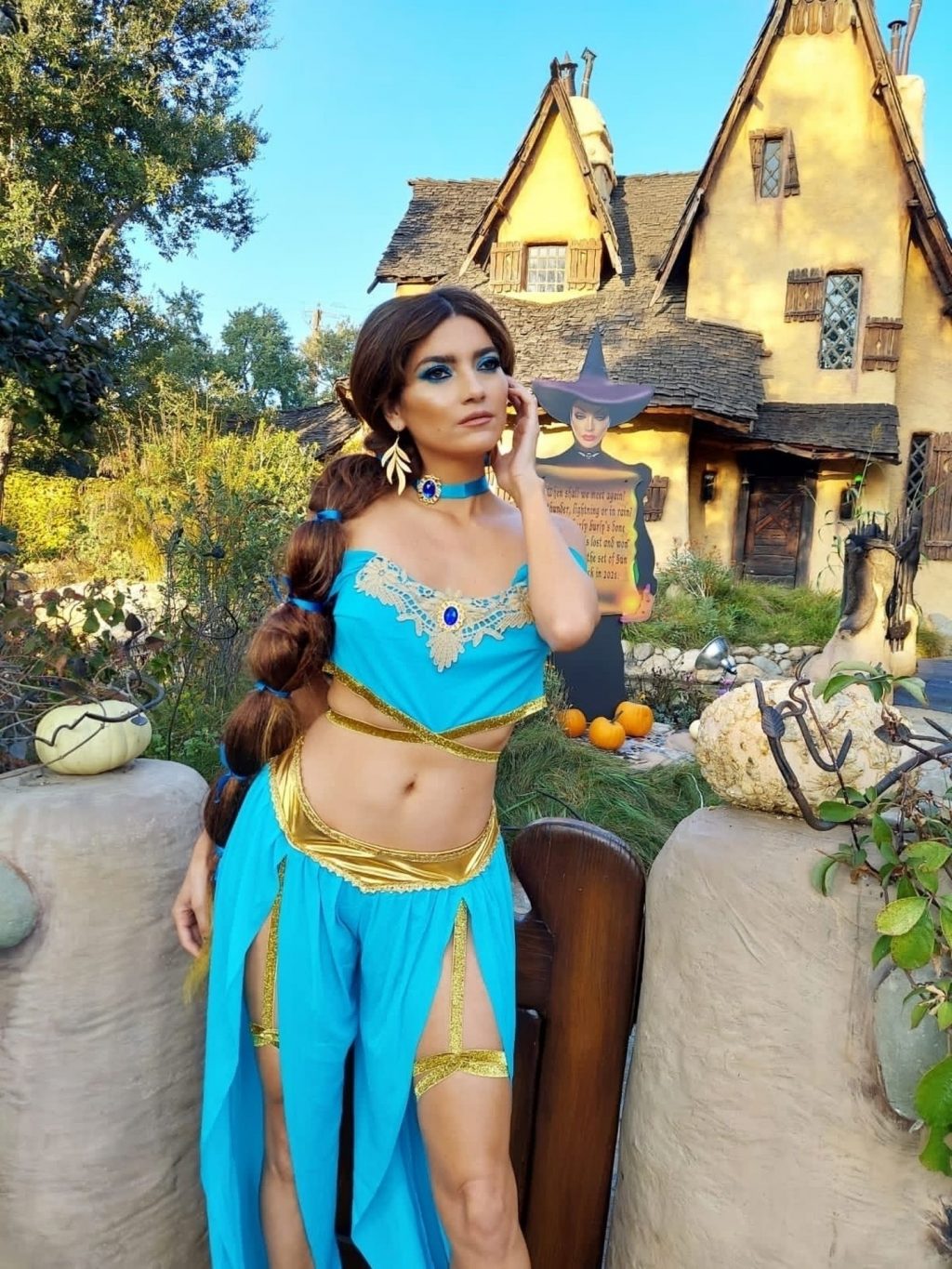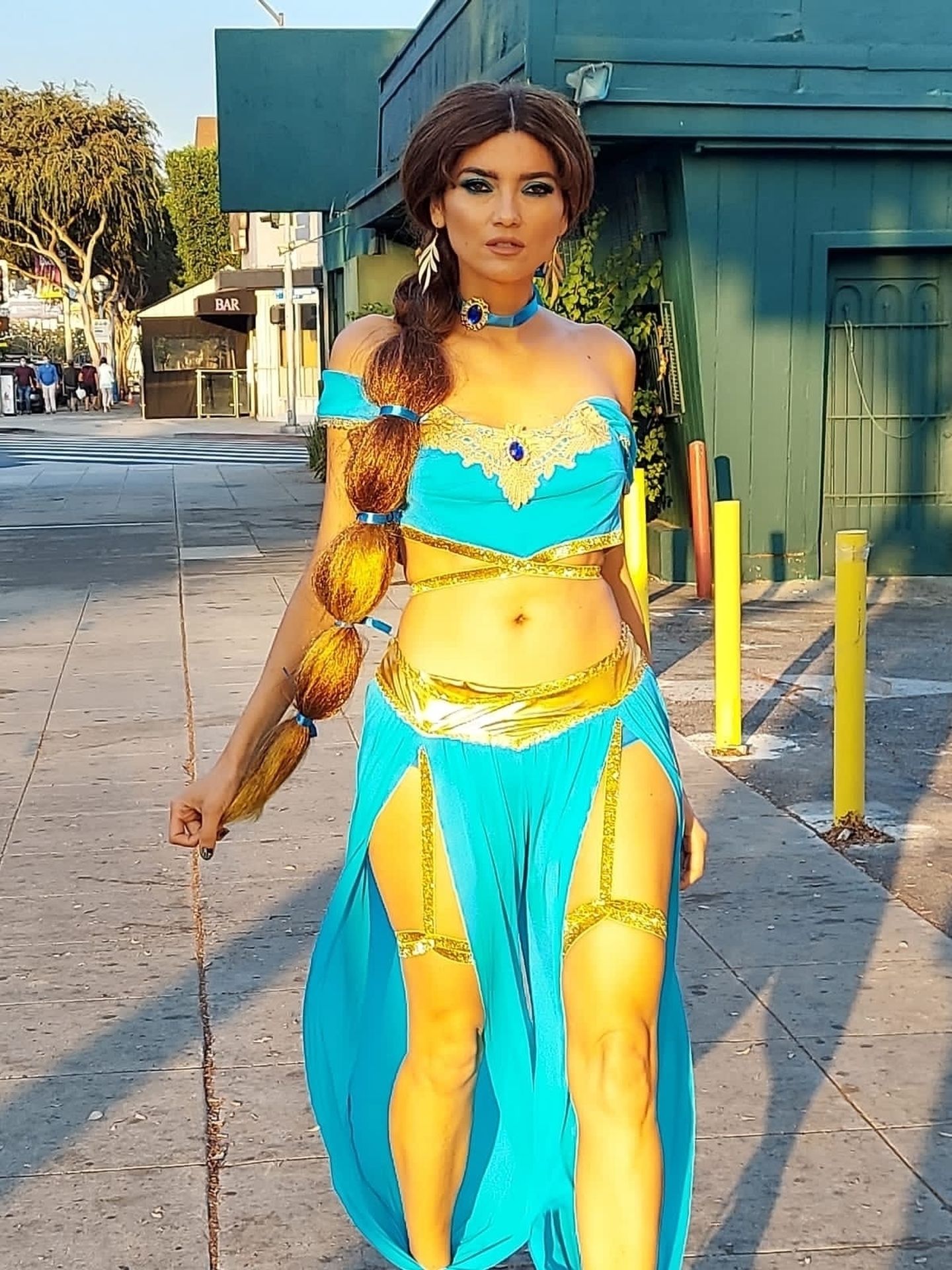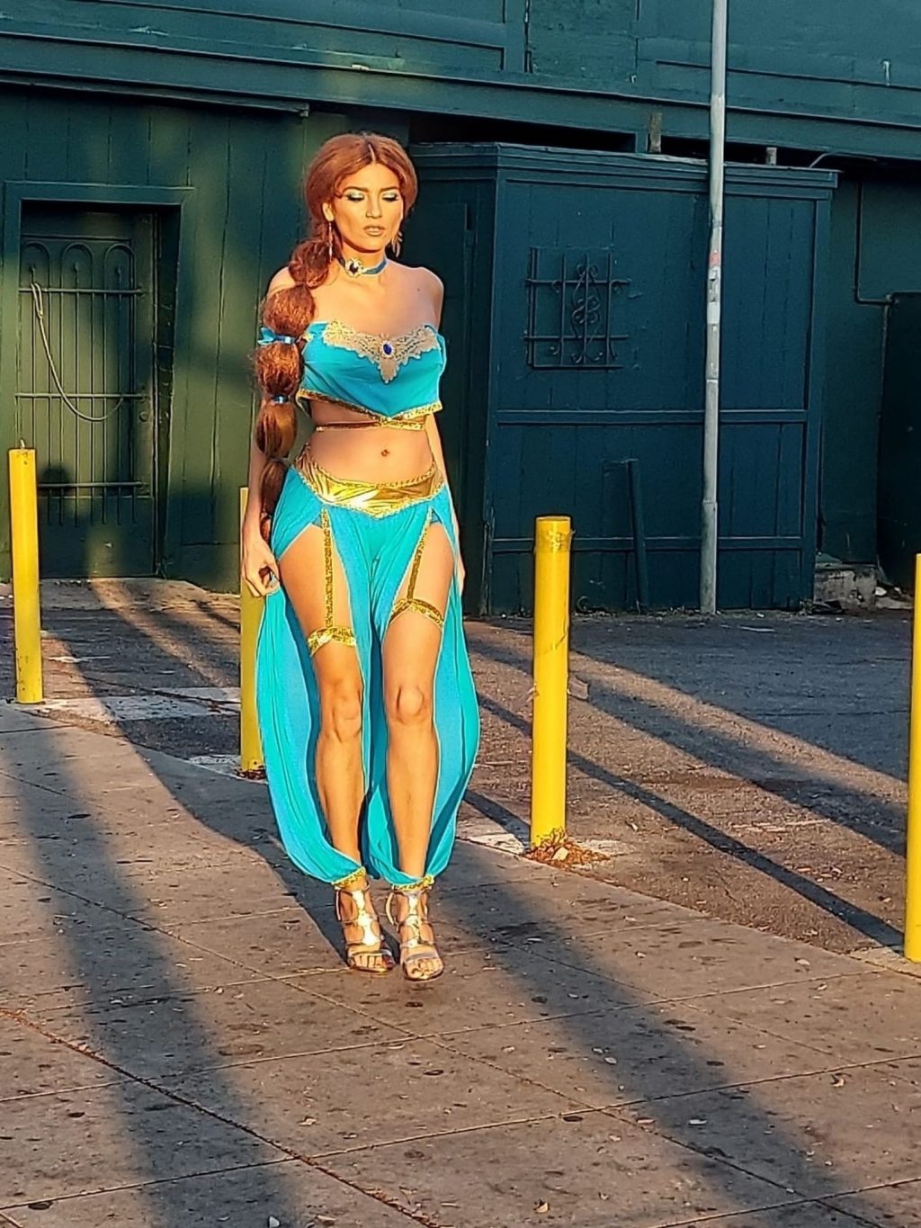 Blanca Blanco enfile un autre costume en tant que Princesse Jasmine d’Aladdin pour Halloween à West Hollywood, le 31/10/2020.