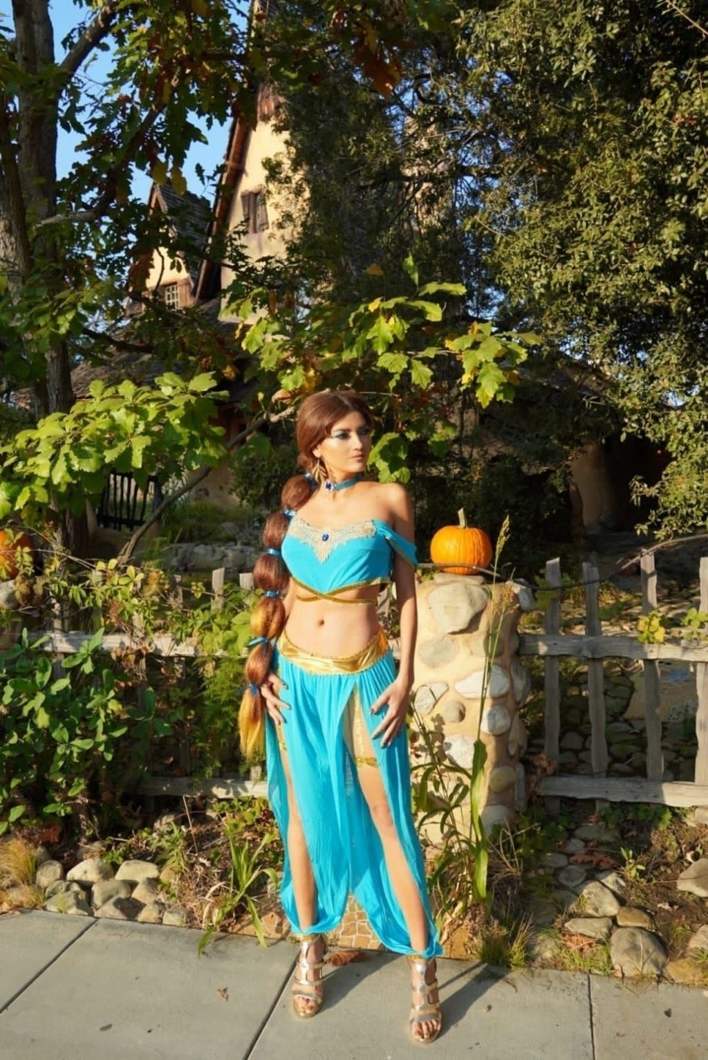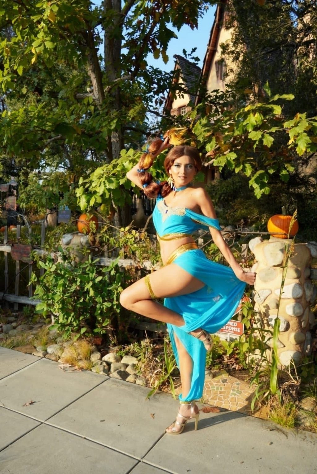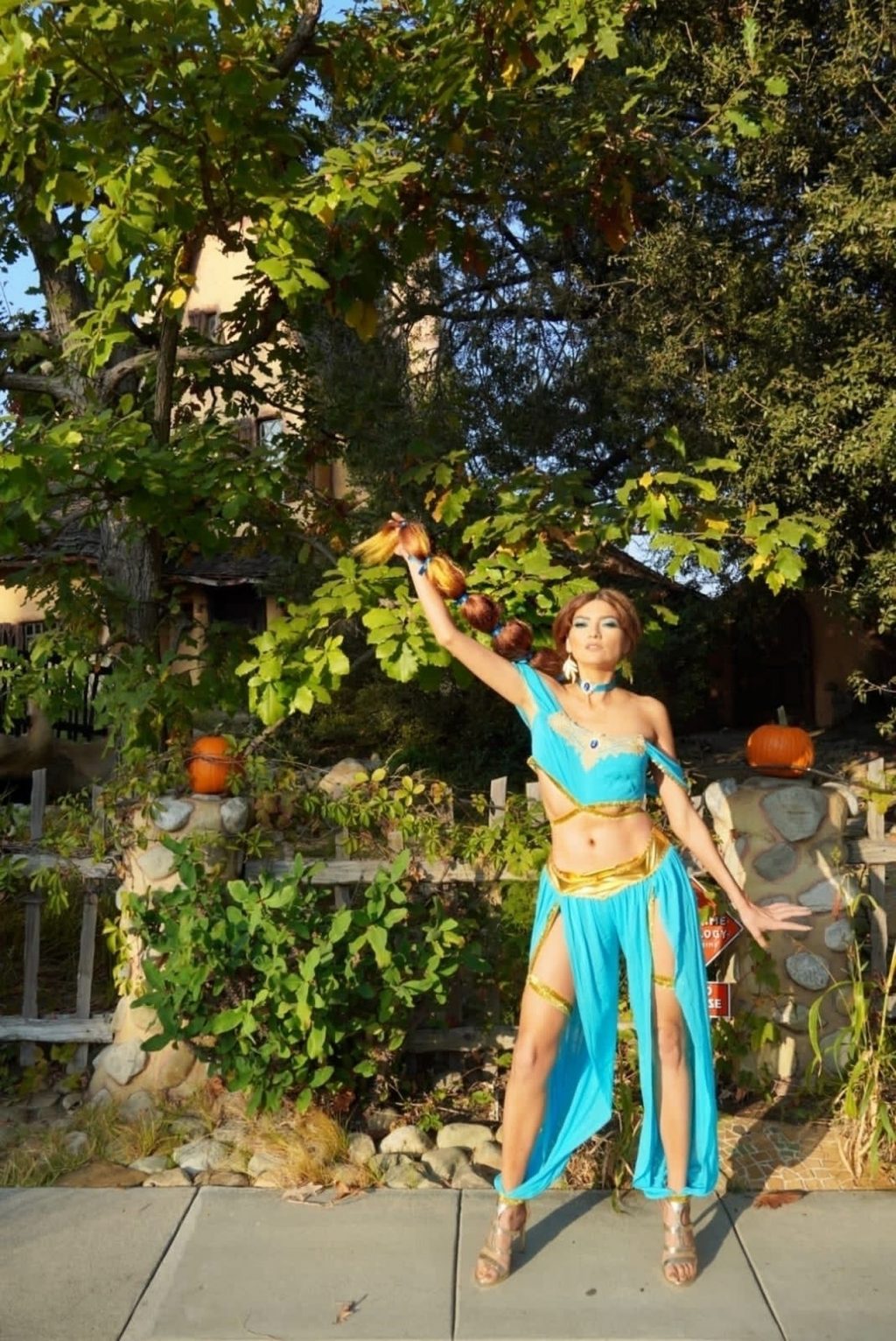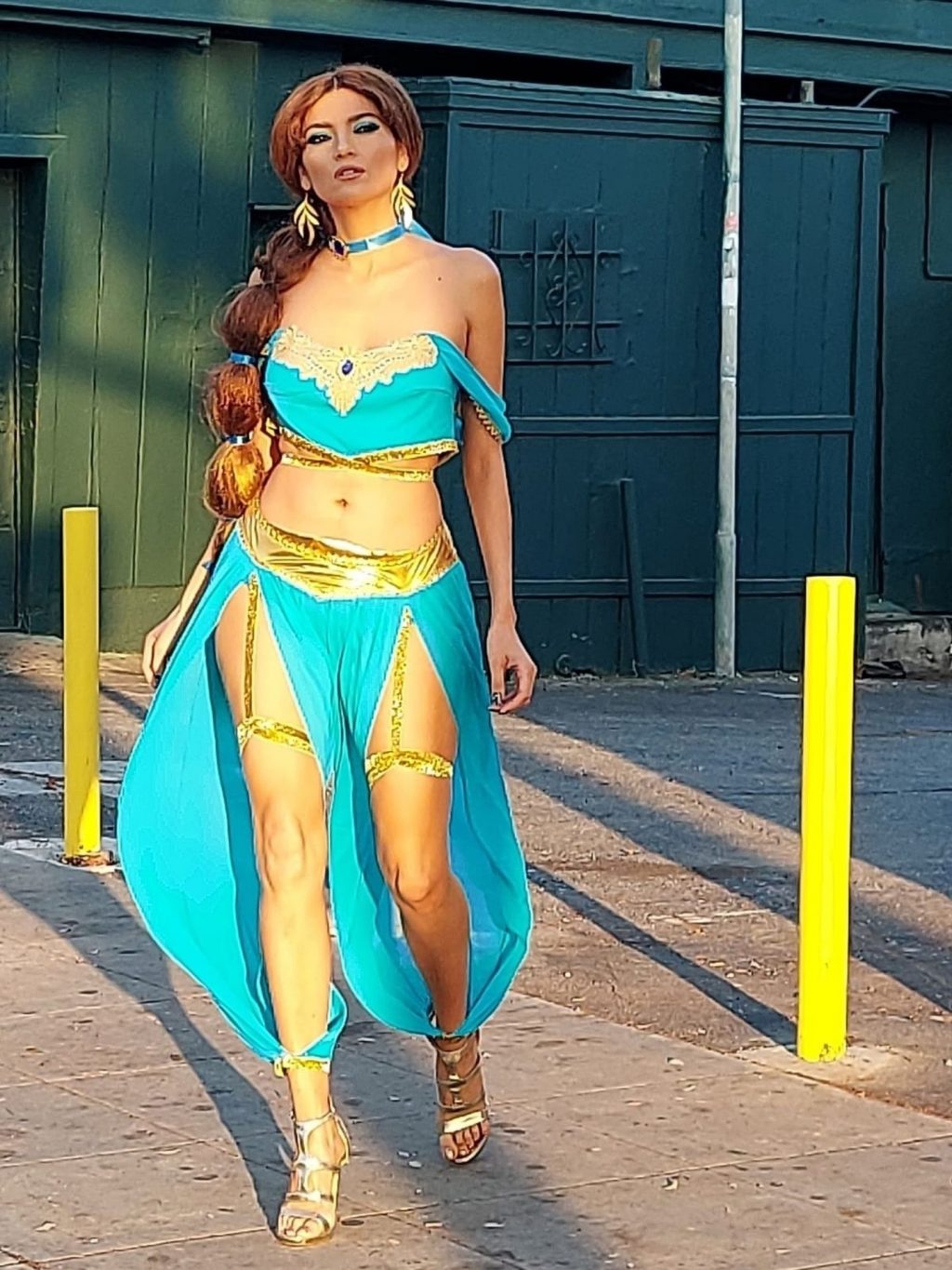 Blanca Blanco enfile un autre costume en tant que Princesse Jasmine d’Aladdin pour Halloween à West Hollywood, le 31/10/2020.