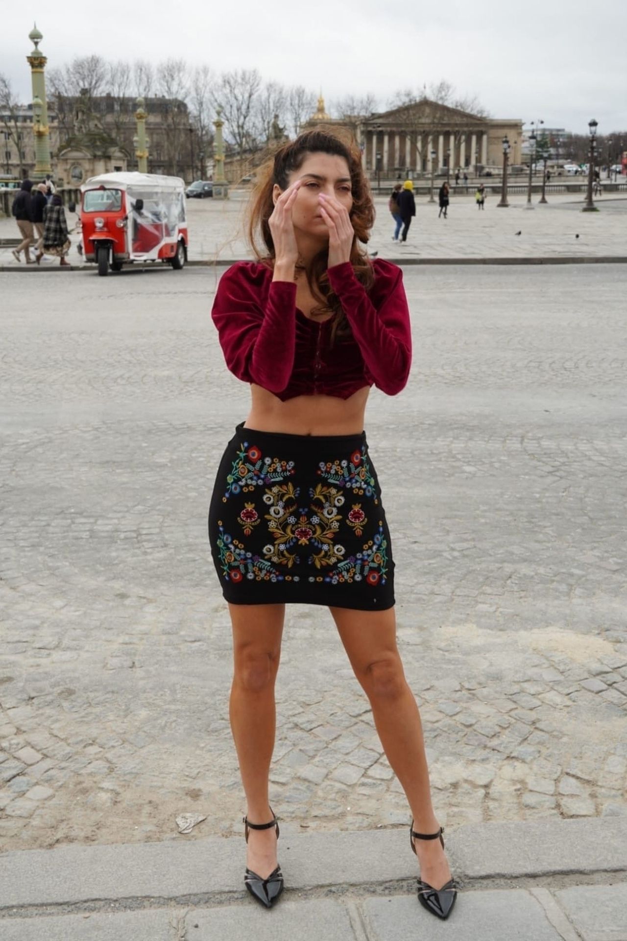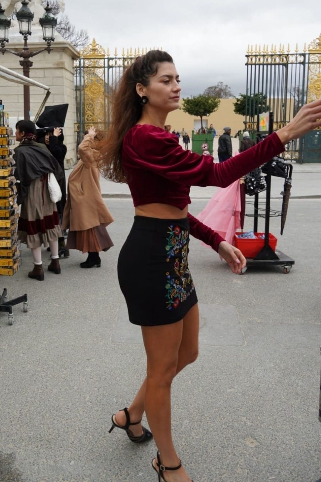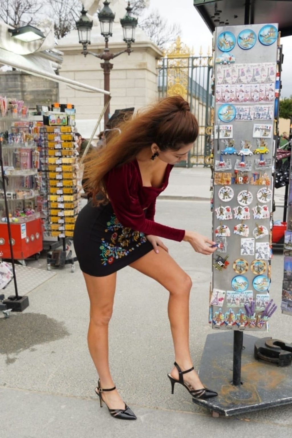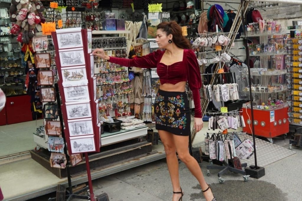 L’actrice Blanca Blanco fait du tourisme et achète des souvenirs pendant la semaine de la mode à Paris, le 25/02/2020.