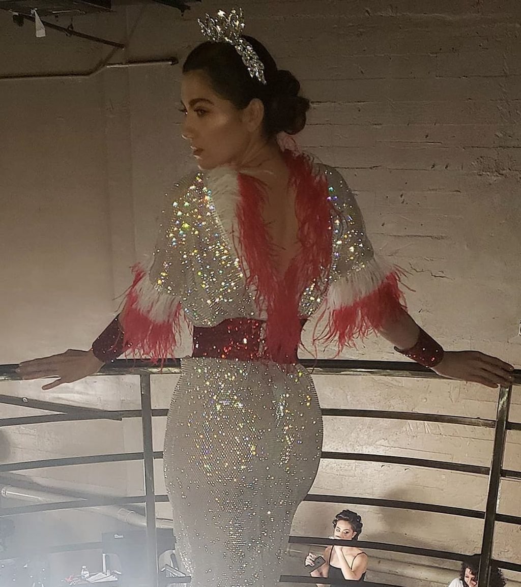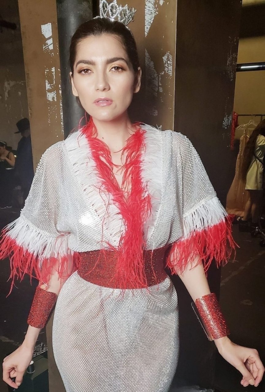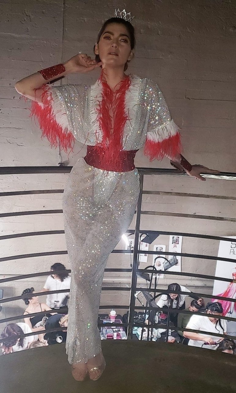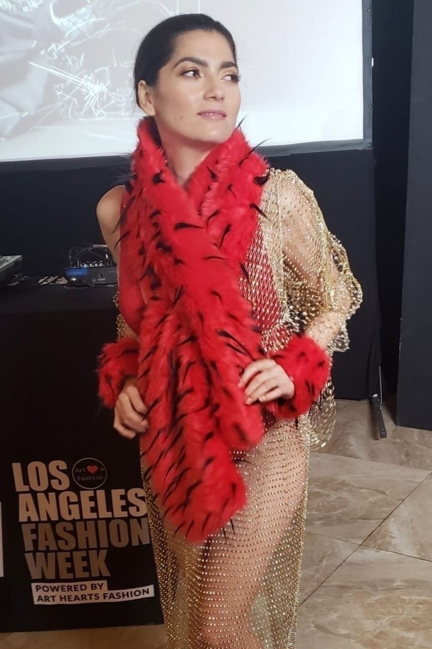 L’actrice Blanca Blanco pose en lingerie transparente lors du défilé de mode de Los Angeles, 24/03/2019.