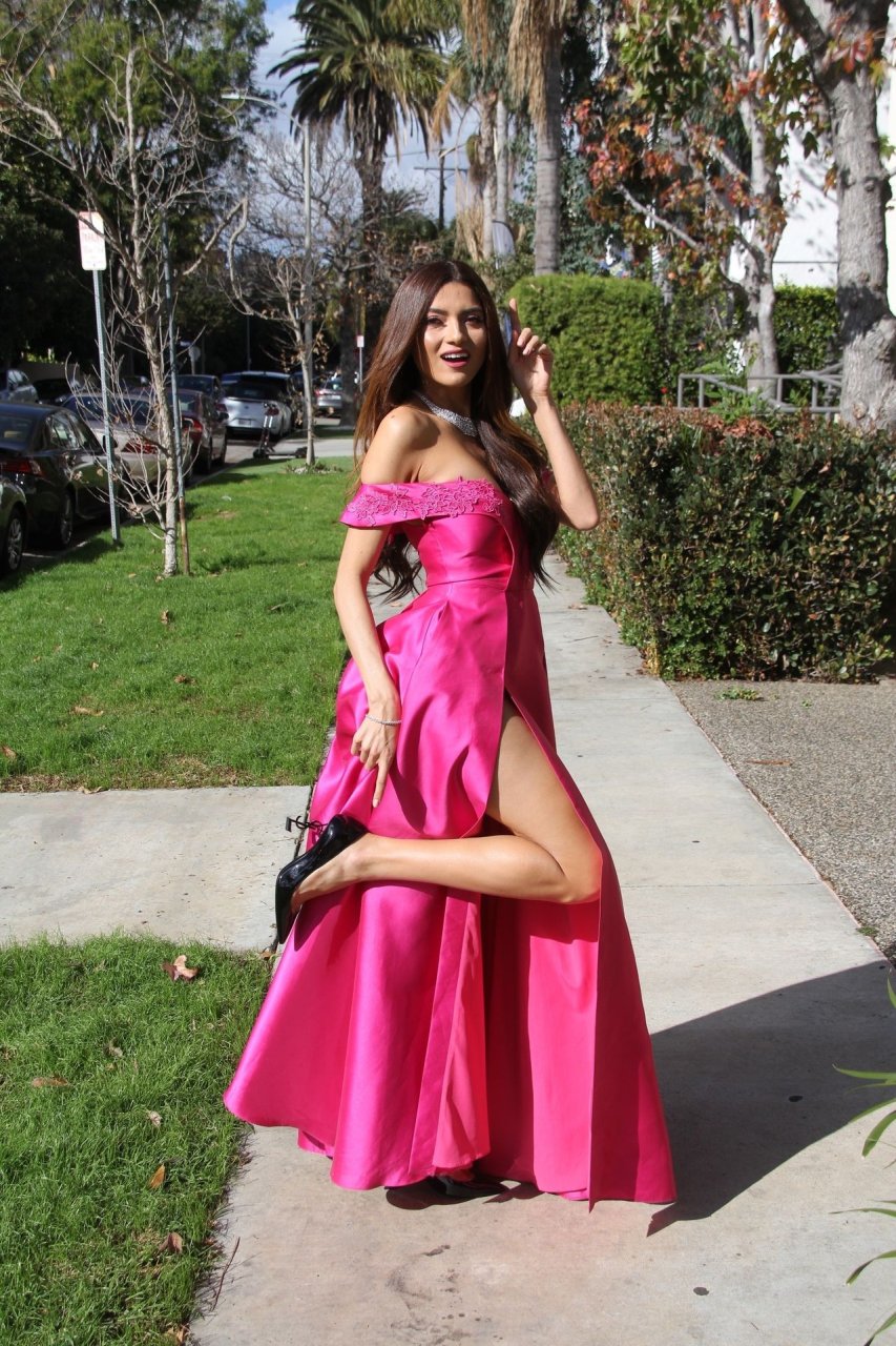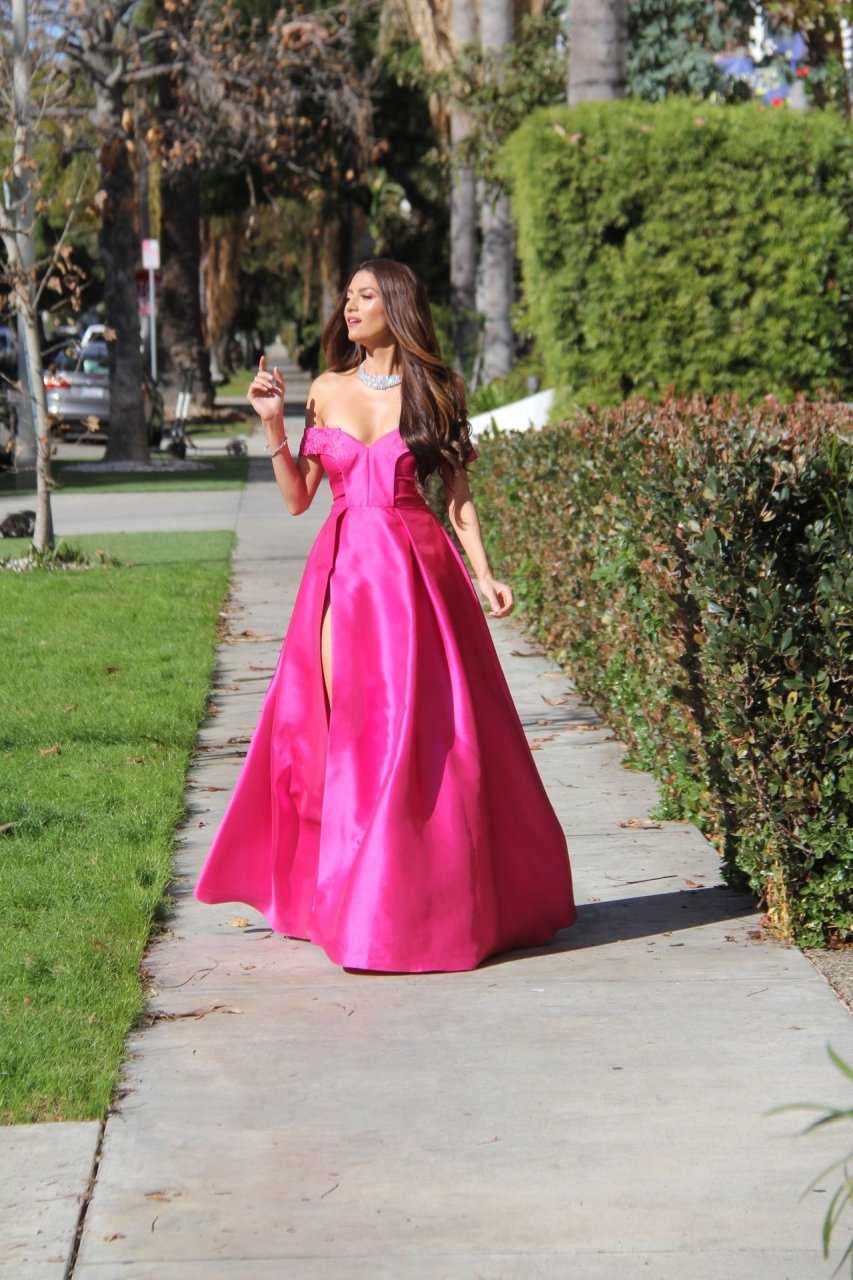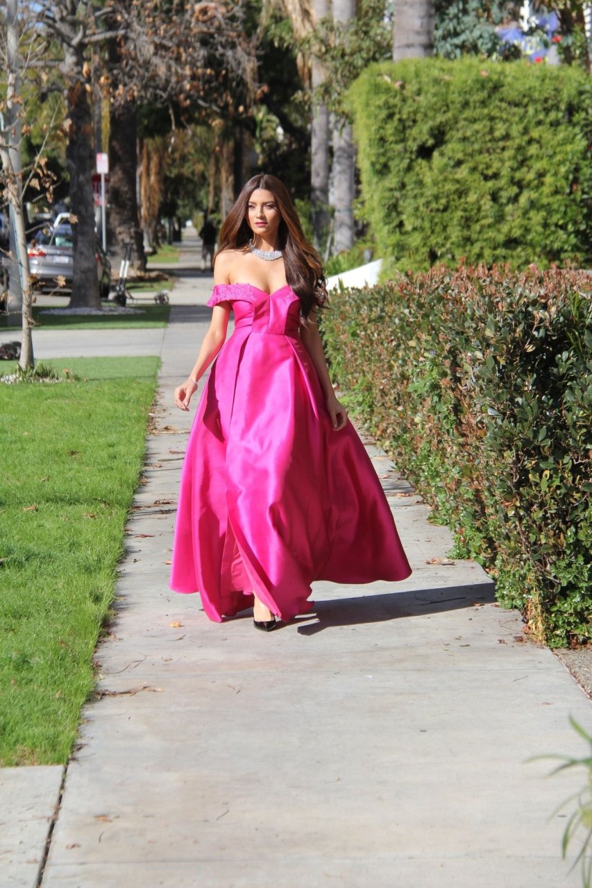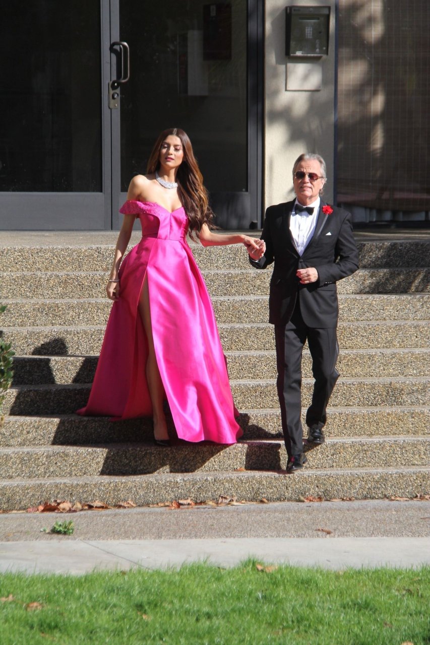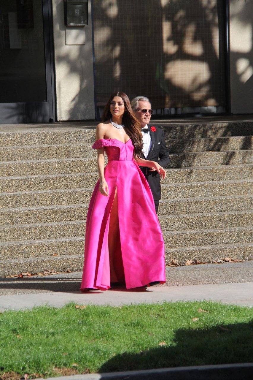 L’actrice Blanca Blanco et son partenaire John Savage présentent leur tenue des Golden Globes alors qu’ils se rendent à la cérémonie de remise des prix à West Hollywood, le 01/06/2019. Blanca défile dans une robe rose vif élégante mais sexy et John s’habille avec un costume classique noir et blanc avec un nœud papillon.