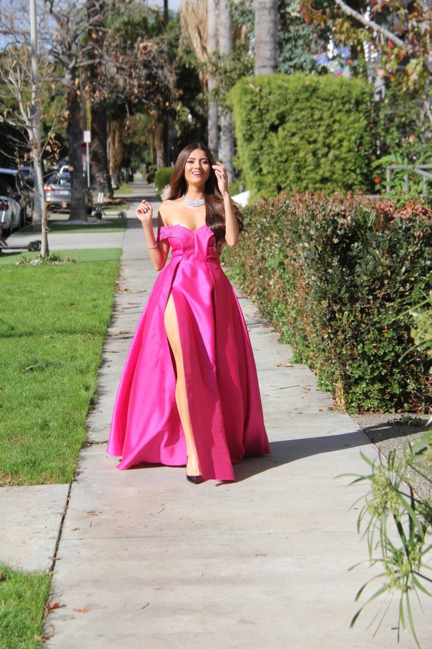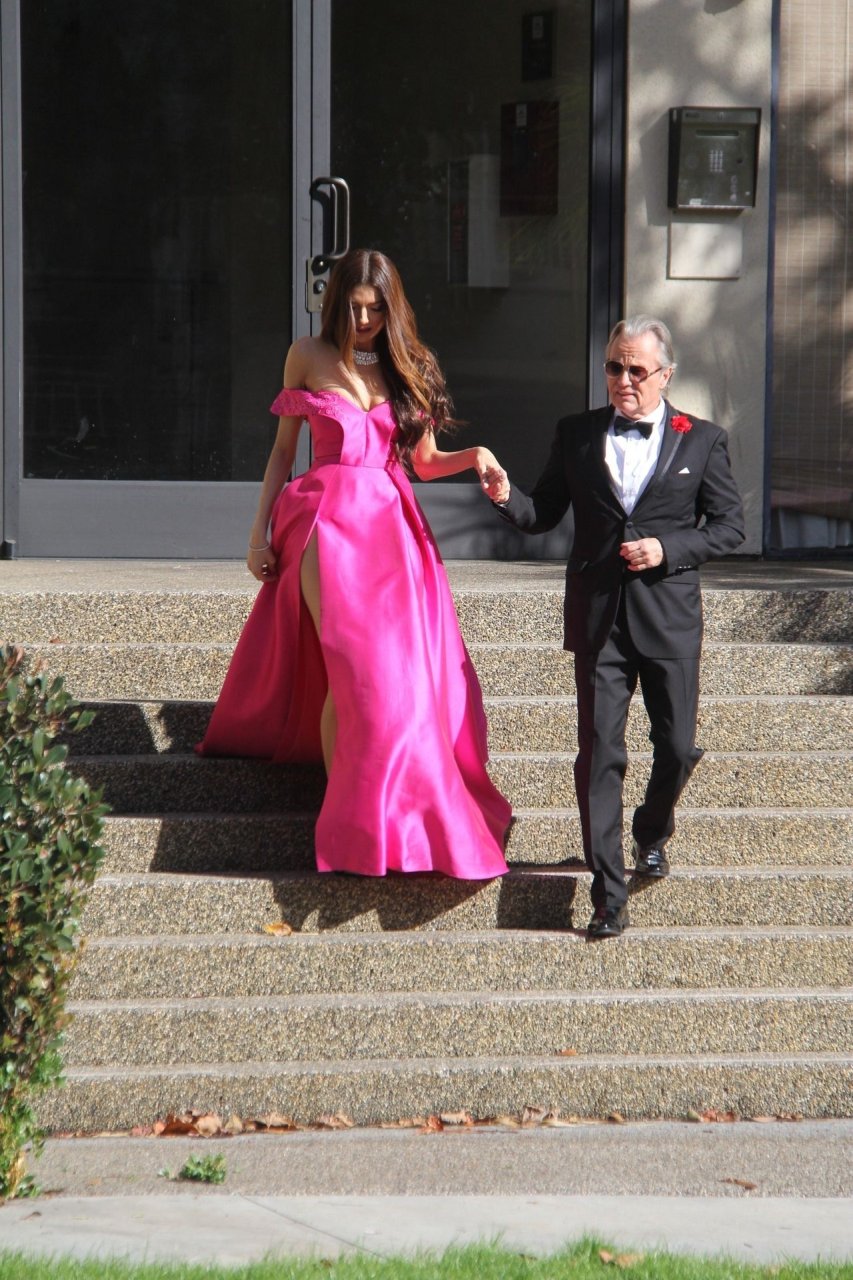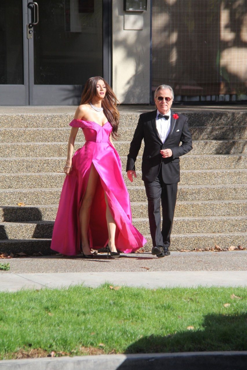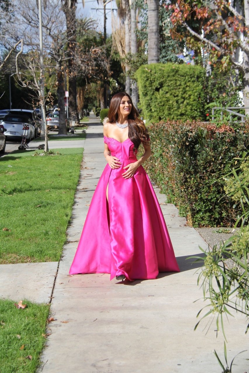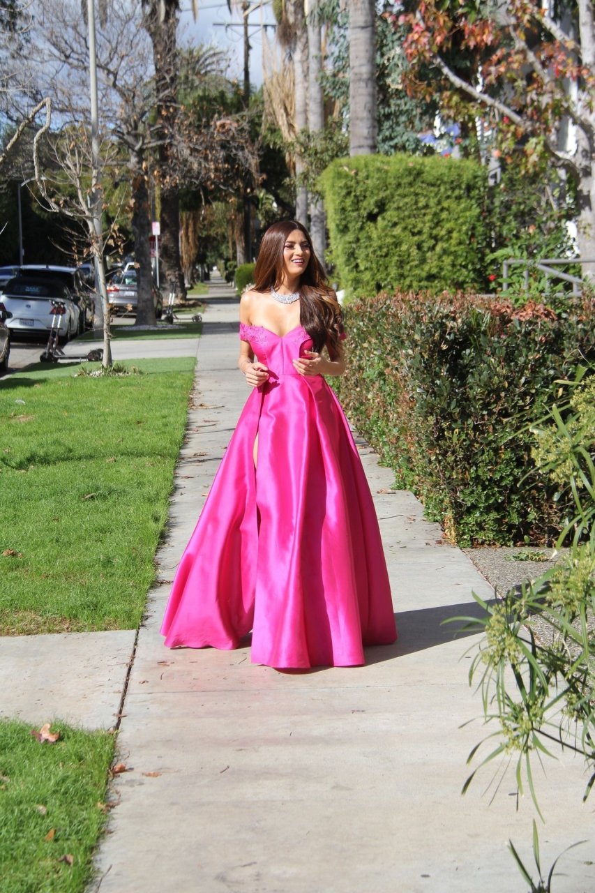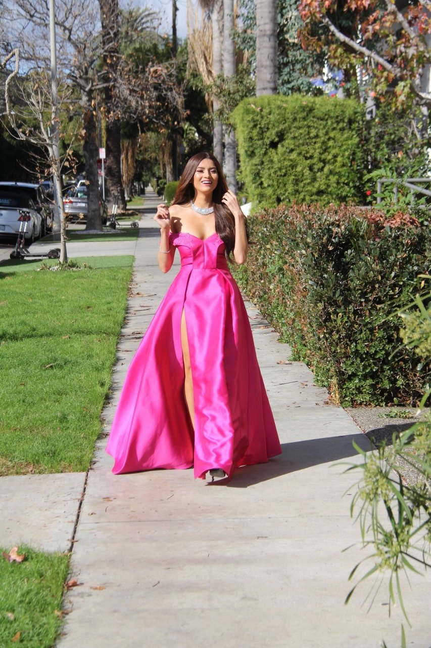 L’actrice Blanca Blanco et son partenaire John Savage présentent leur tenue des Golden Globes alors qu’ils se rendent à la cérémonie de remise des prix à West Hollywood, le 01/06/2019. Blanca défile dans une robe rose vif élégante mais sexy et John s’habille avec un costume classique noir et blanc avec un nœud papillon.