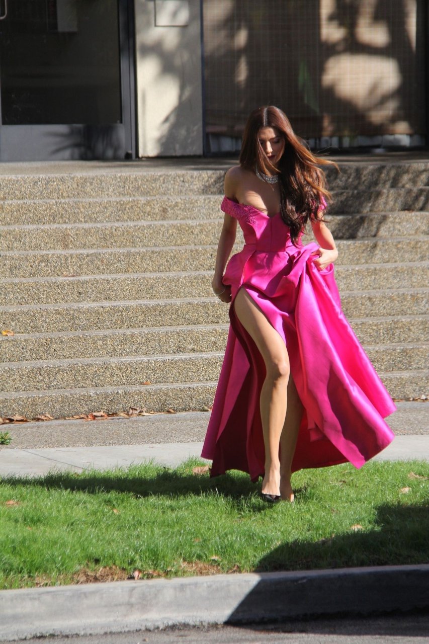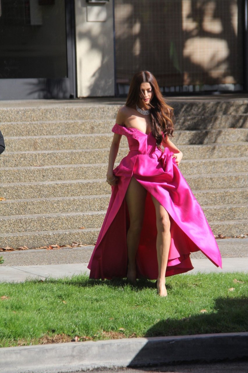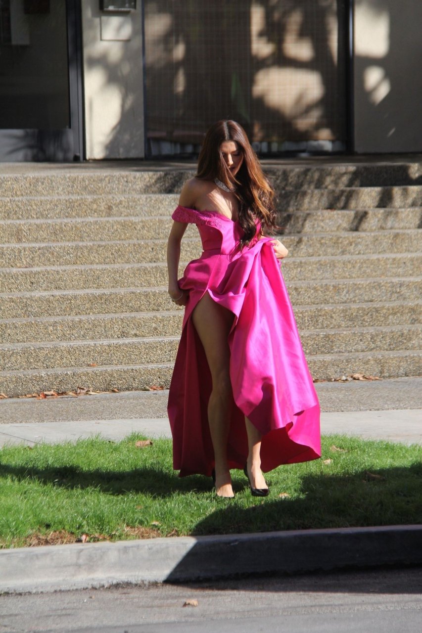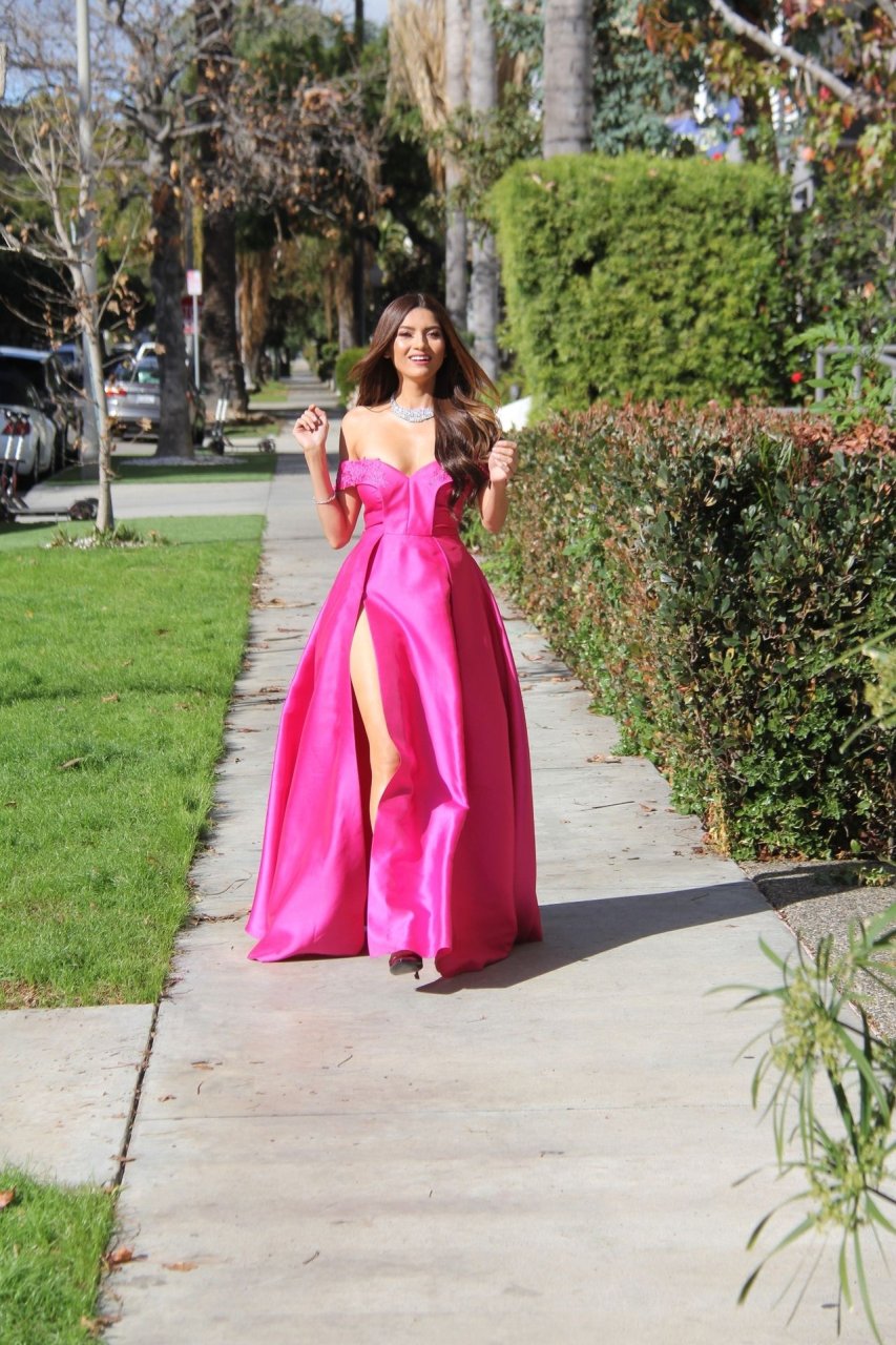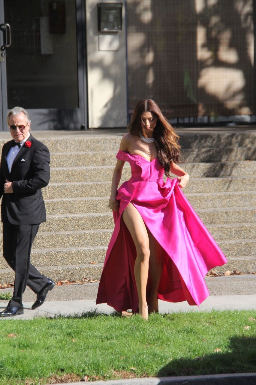 L’actrice Blanca Blanco et son partenaire John Savage présentent leur tenue des Golden Globes alors qu’ils se rendent à la cérémonie de remise des prix à West Hollywood, le 01/06/2019. Blanca défile dans une robe rose vif élégante mais sexy et John s’habille avec un costume classique noir et blanc avec un nœud papillon.