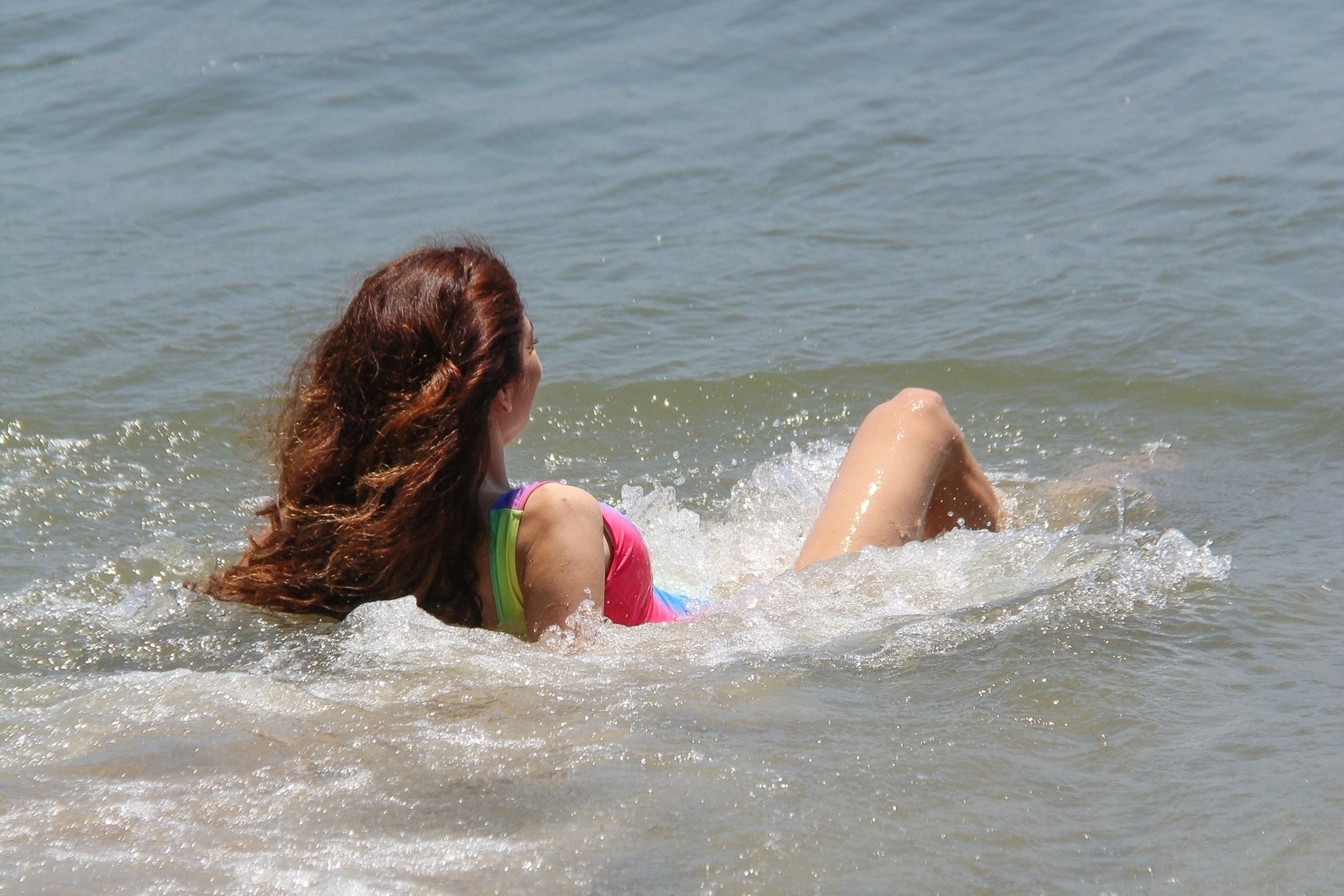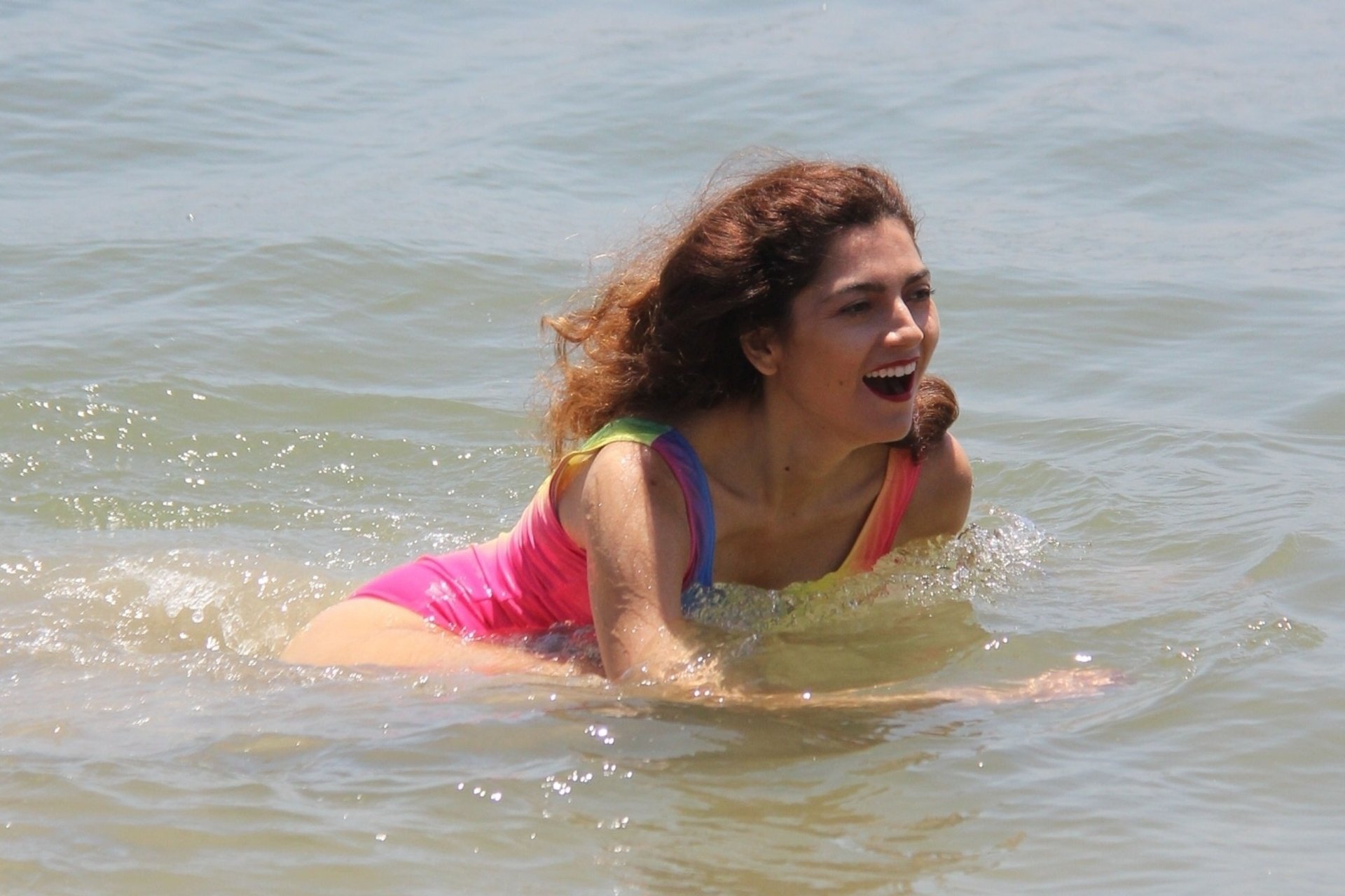 Blanca Blanco a été vue en train de s’éclabousser à Paradise Cove à Malibu, portant un maillot de bain une pièce rayé arc-en-ciel, 23/07/2018.