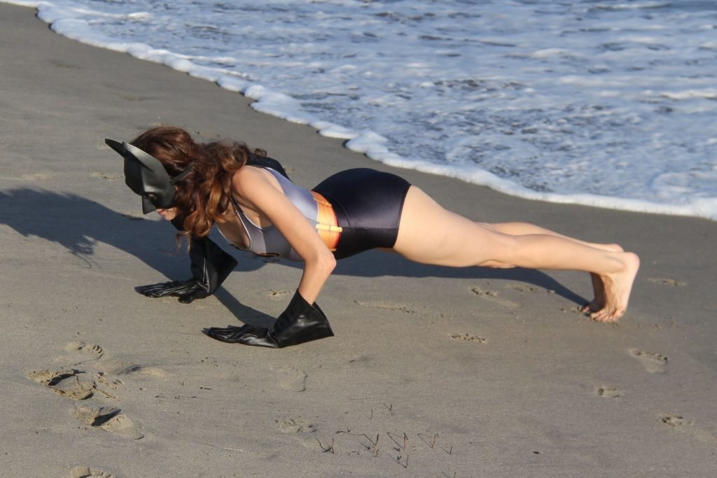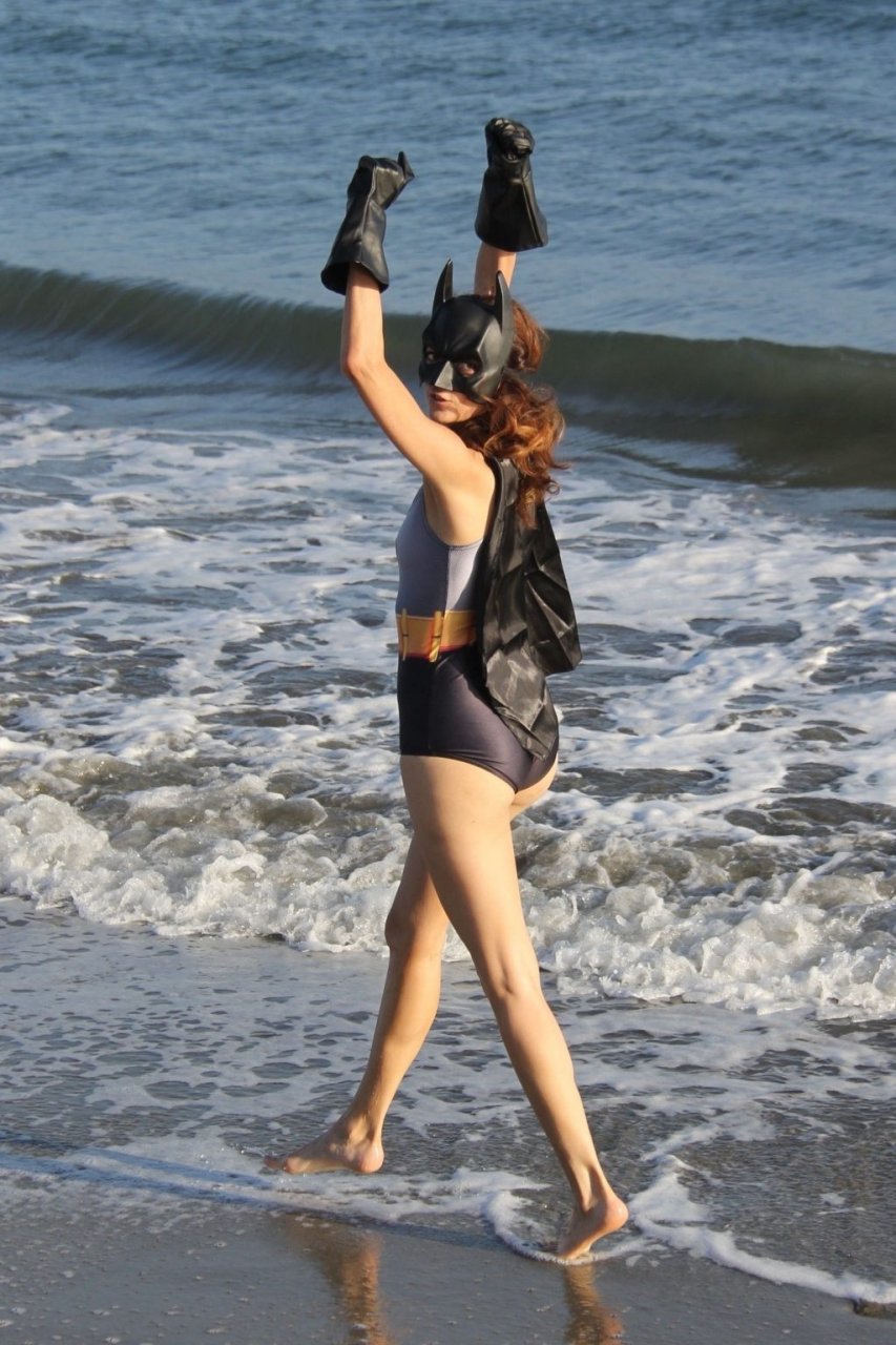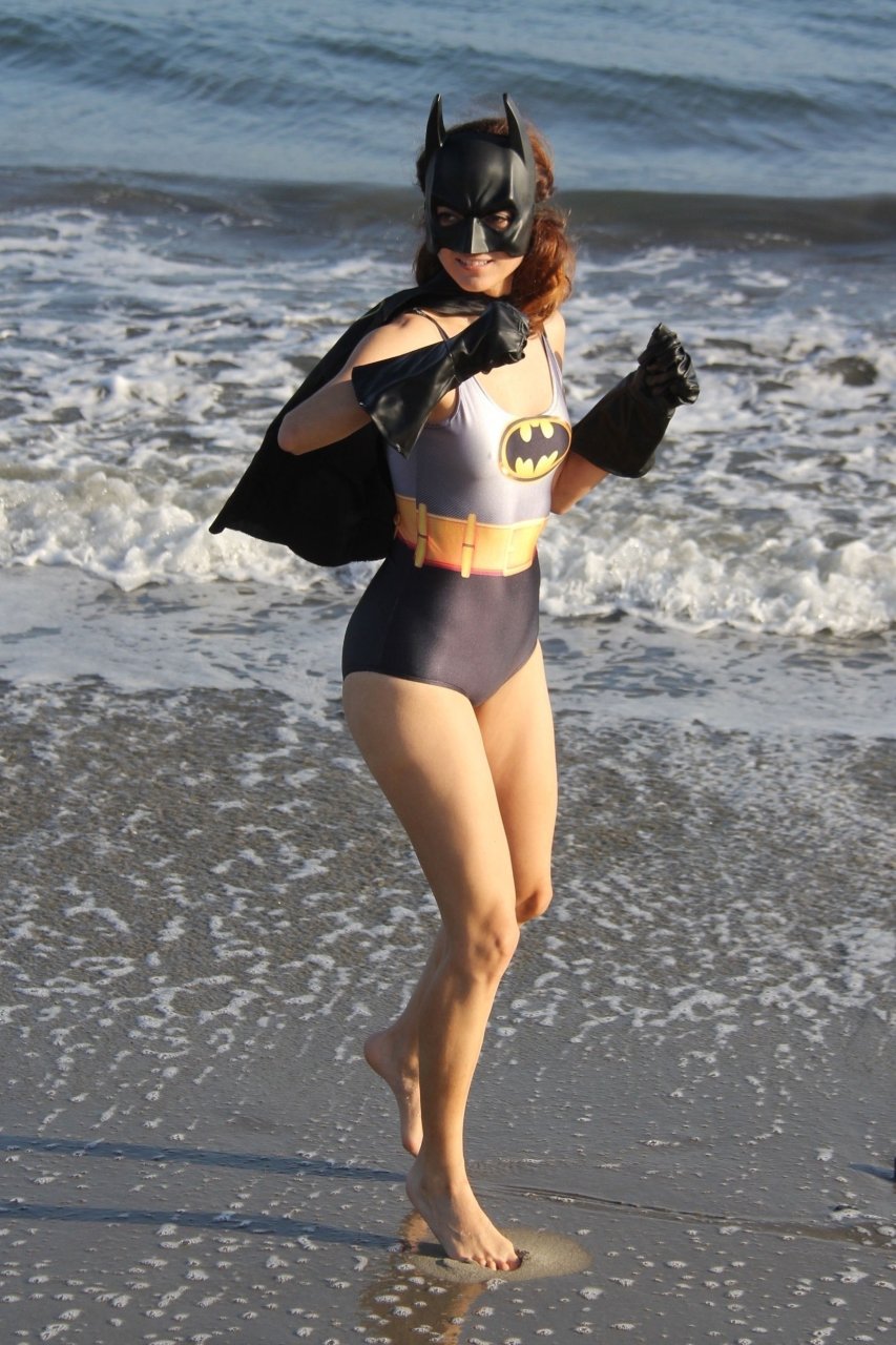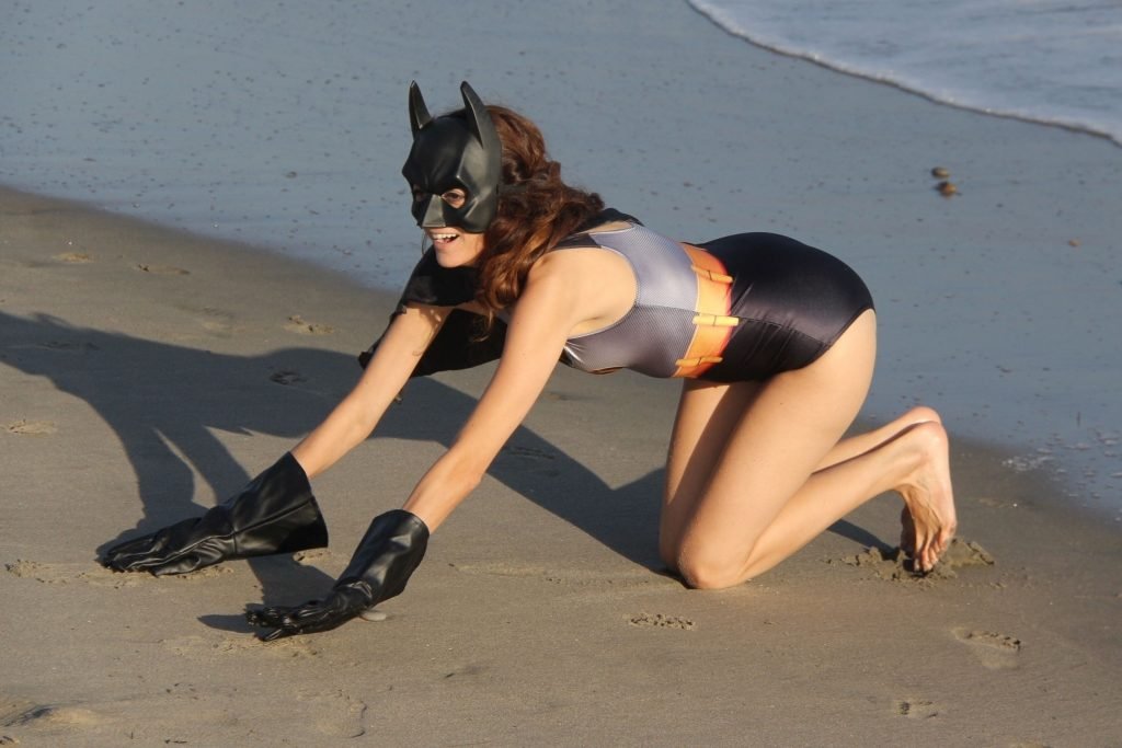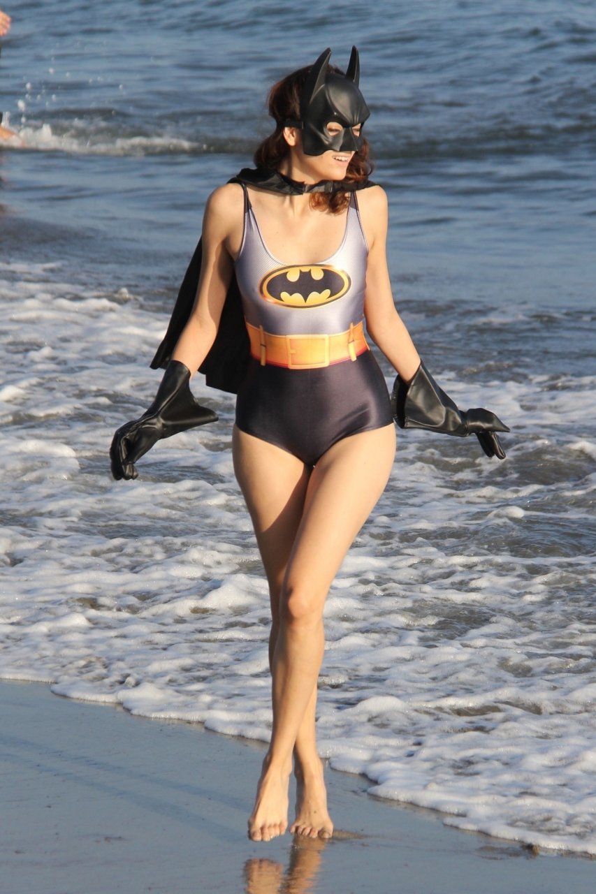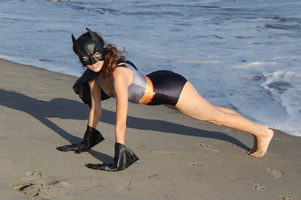 L’actrice Blanca Blanco se met dans l’esprit d’Halloween en posant en Batwoman sur la plage de Malibu, le 30/10/2018.