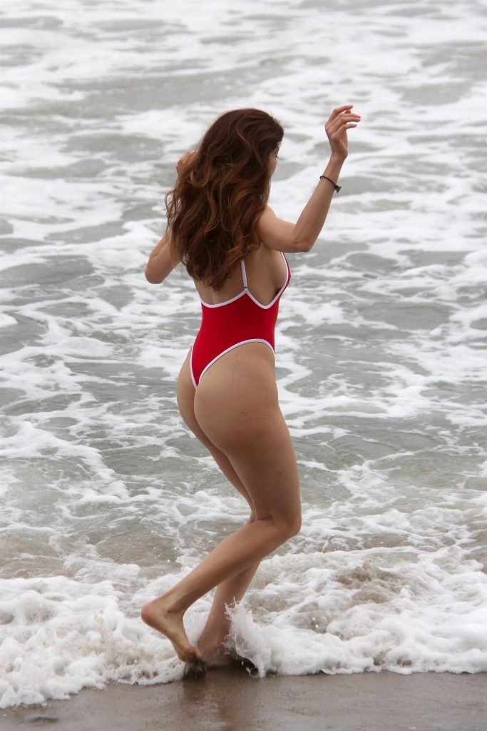 L’actrice Blanca Blanco est éblouissante dans un maillot de bain string rouge mettant en valeur sa silhouette tout en posant sur la plage de Malibu, 24/06/2018.