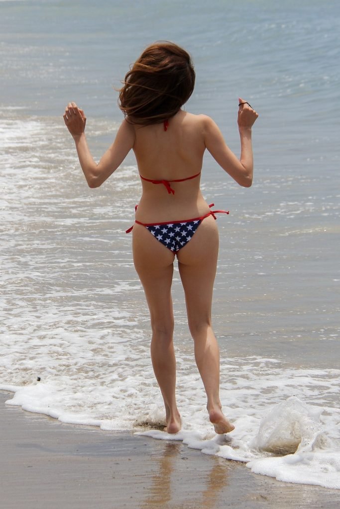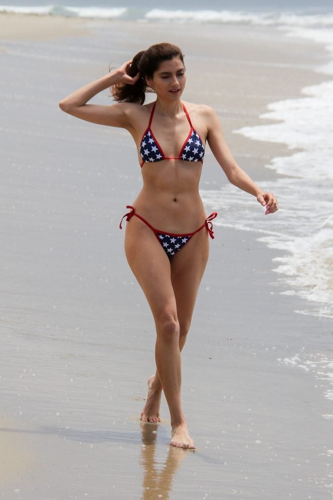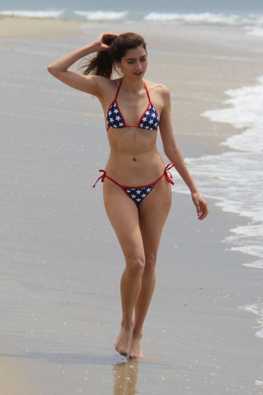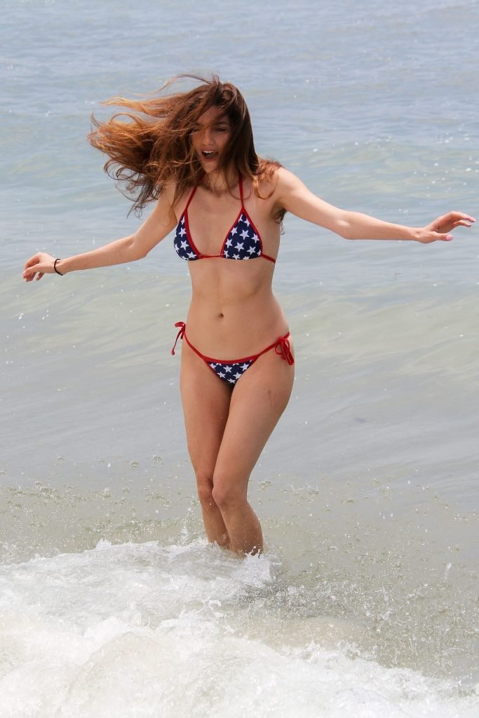 L’actrice Blanca Blanco célèbre le Jour de l’Indépendance à Malibu, portant un bikini étoilé alors qu’elle gambade sur les rives de l’océan, 07/04/2018.