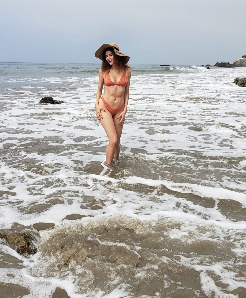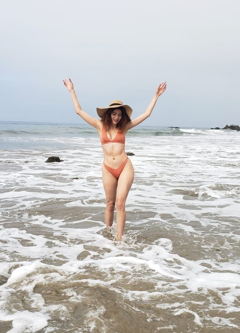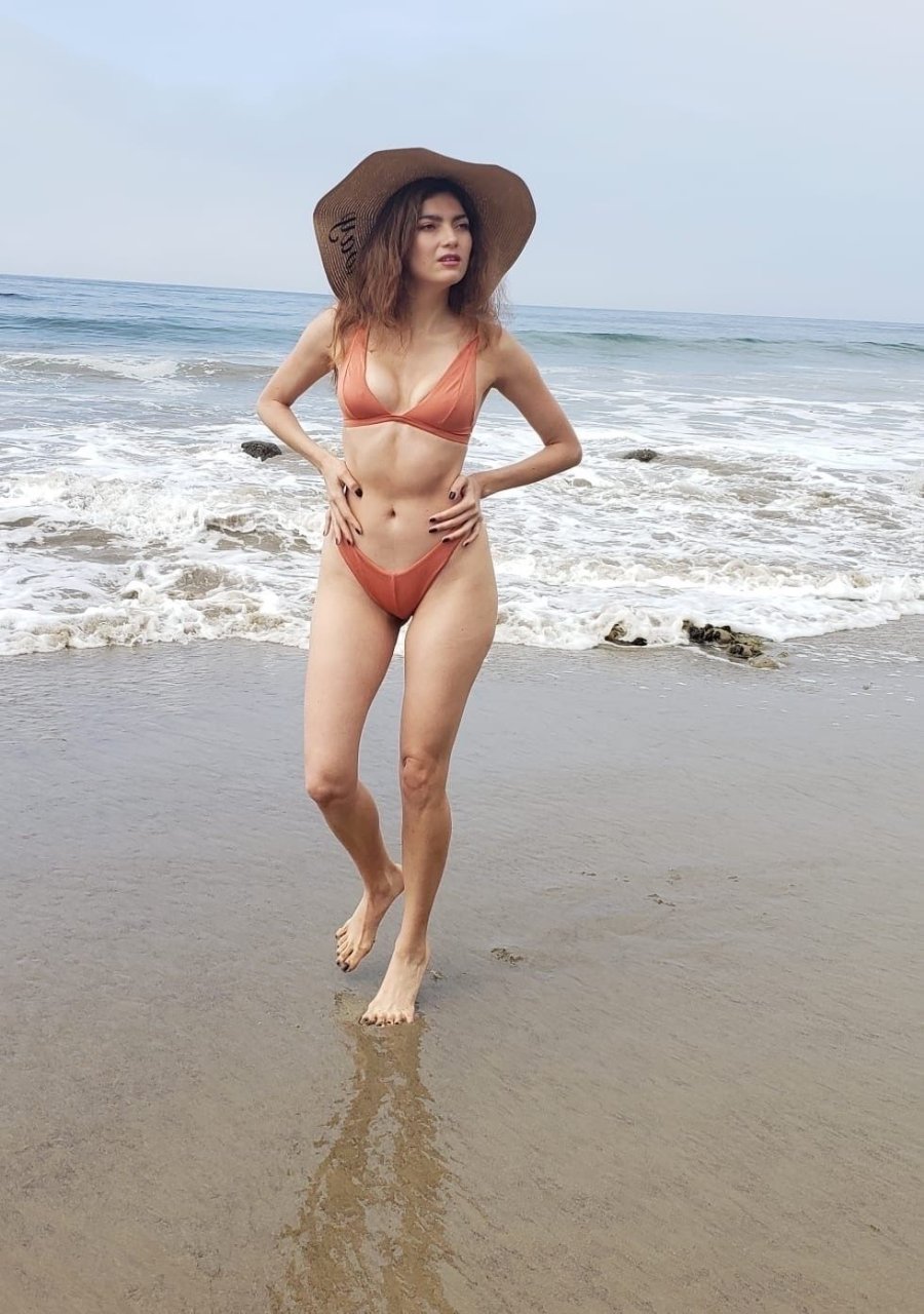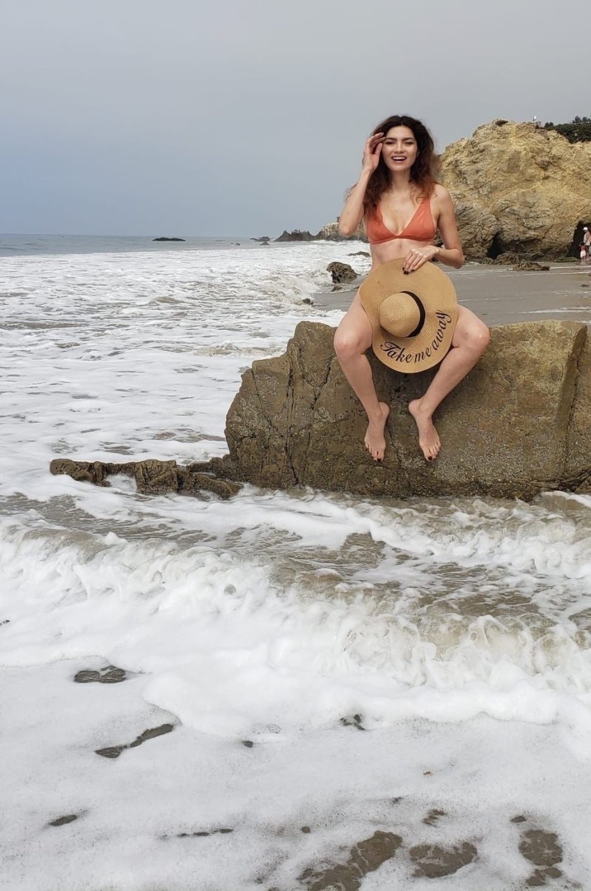 L’actrice Blanca Blanco pose en bikini à Matador Beach, 03/08/2019.