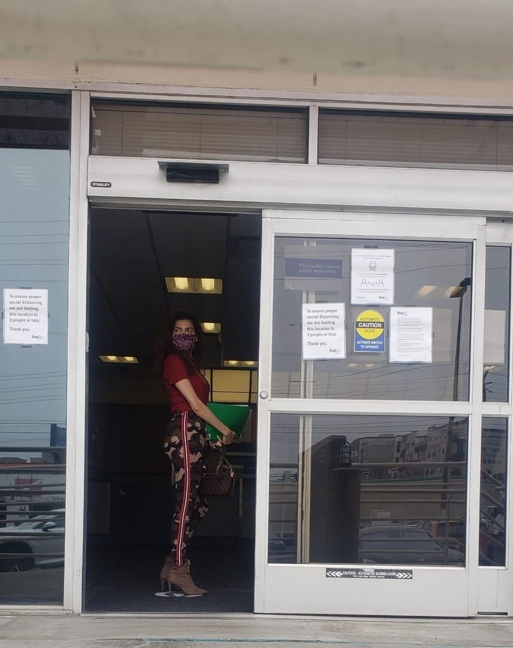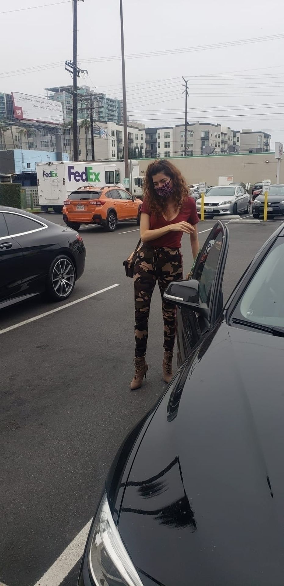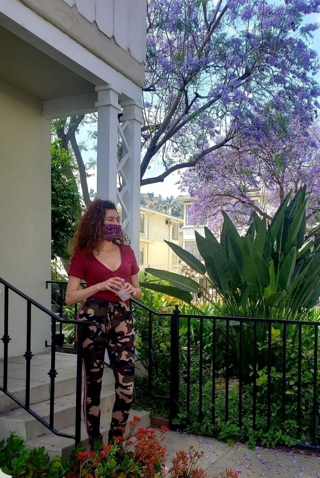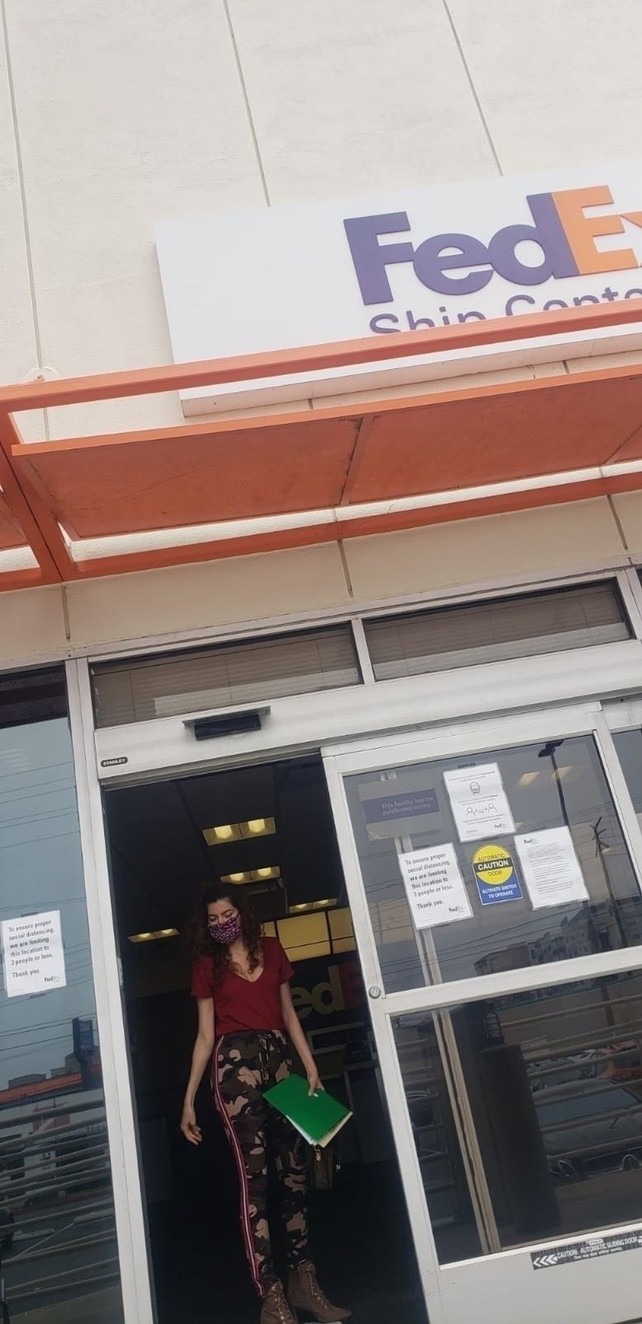 Blanca Blanco se rend chez FedEx à Los Angeles, 30/05/2020. L’actrice montre son décolleté dans la rue.