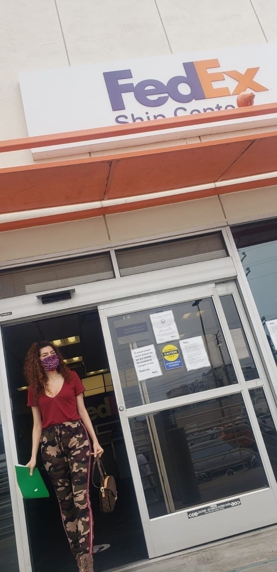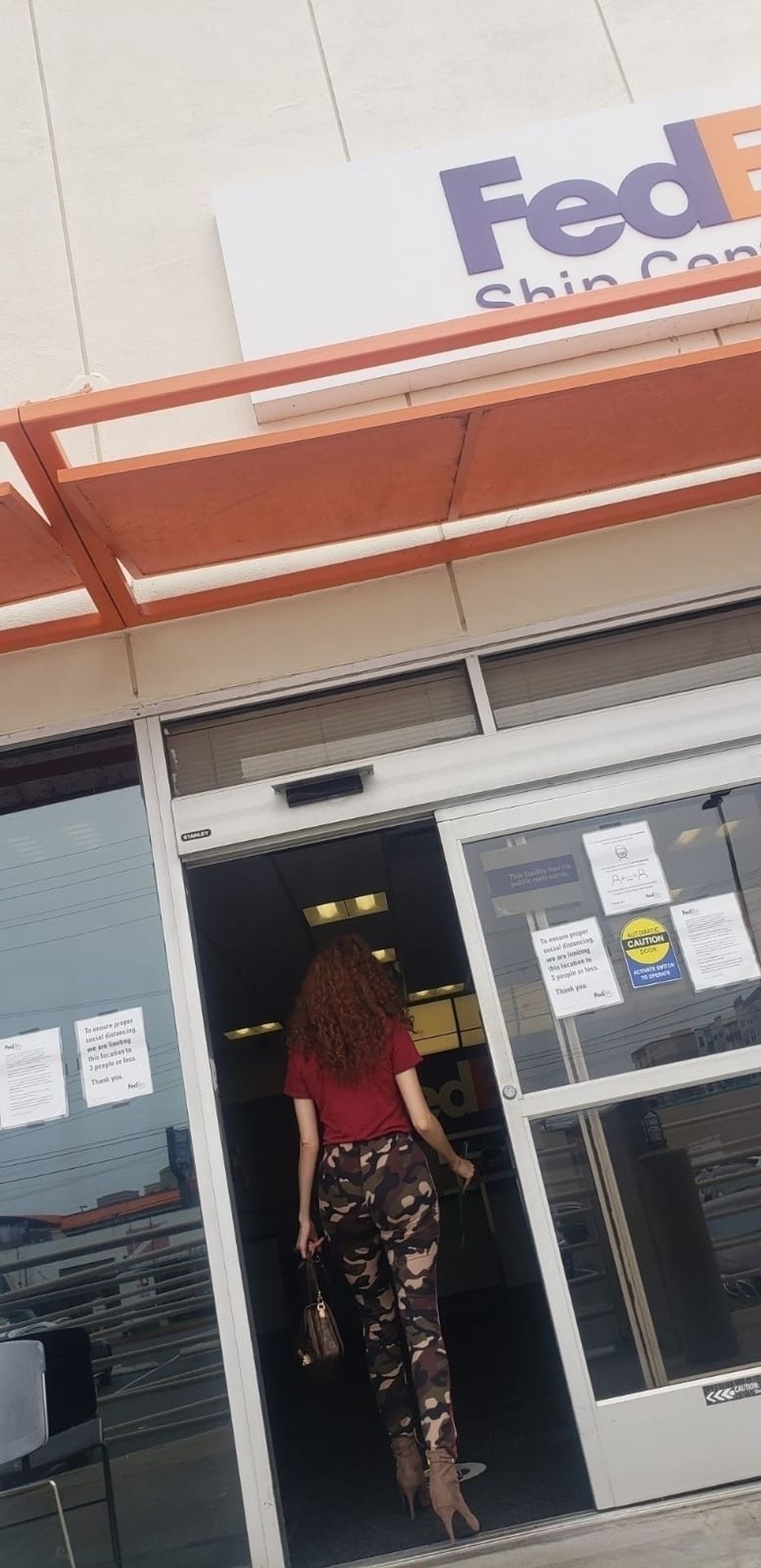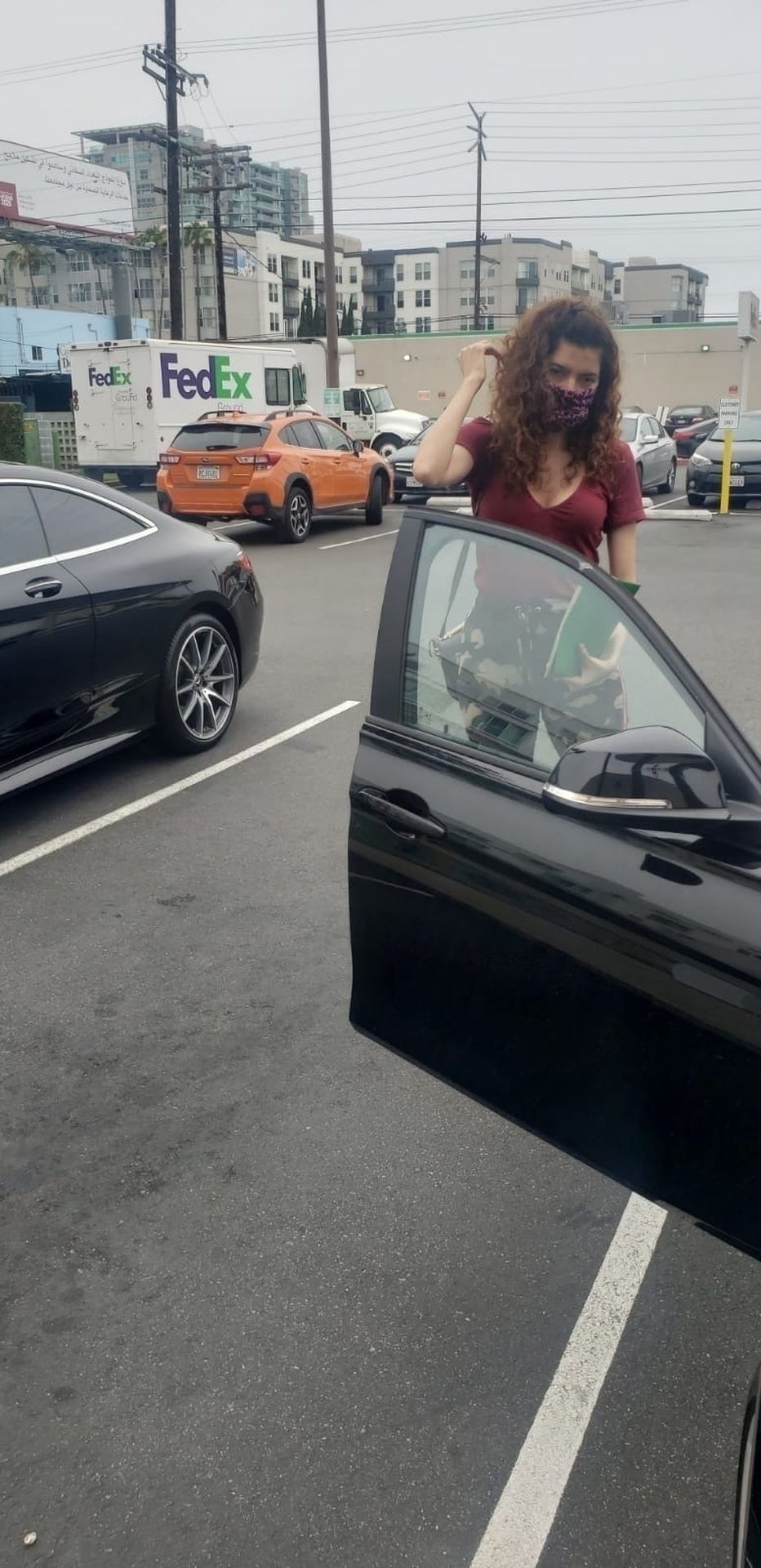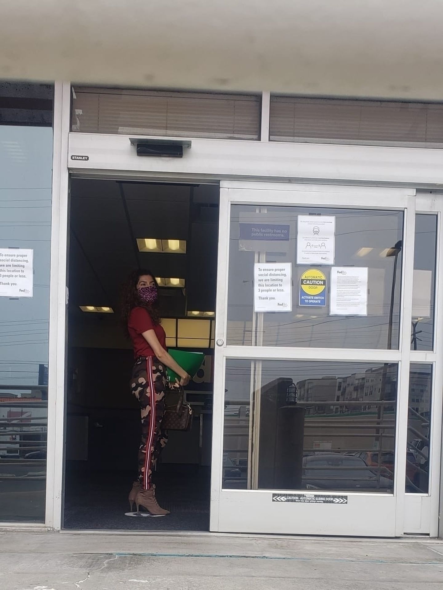 Blanca Blanco se rend chez FedEx à Los Angeles, 30/05/2020. L’actrice montre son décolleté dans la rue.