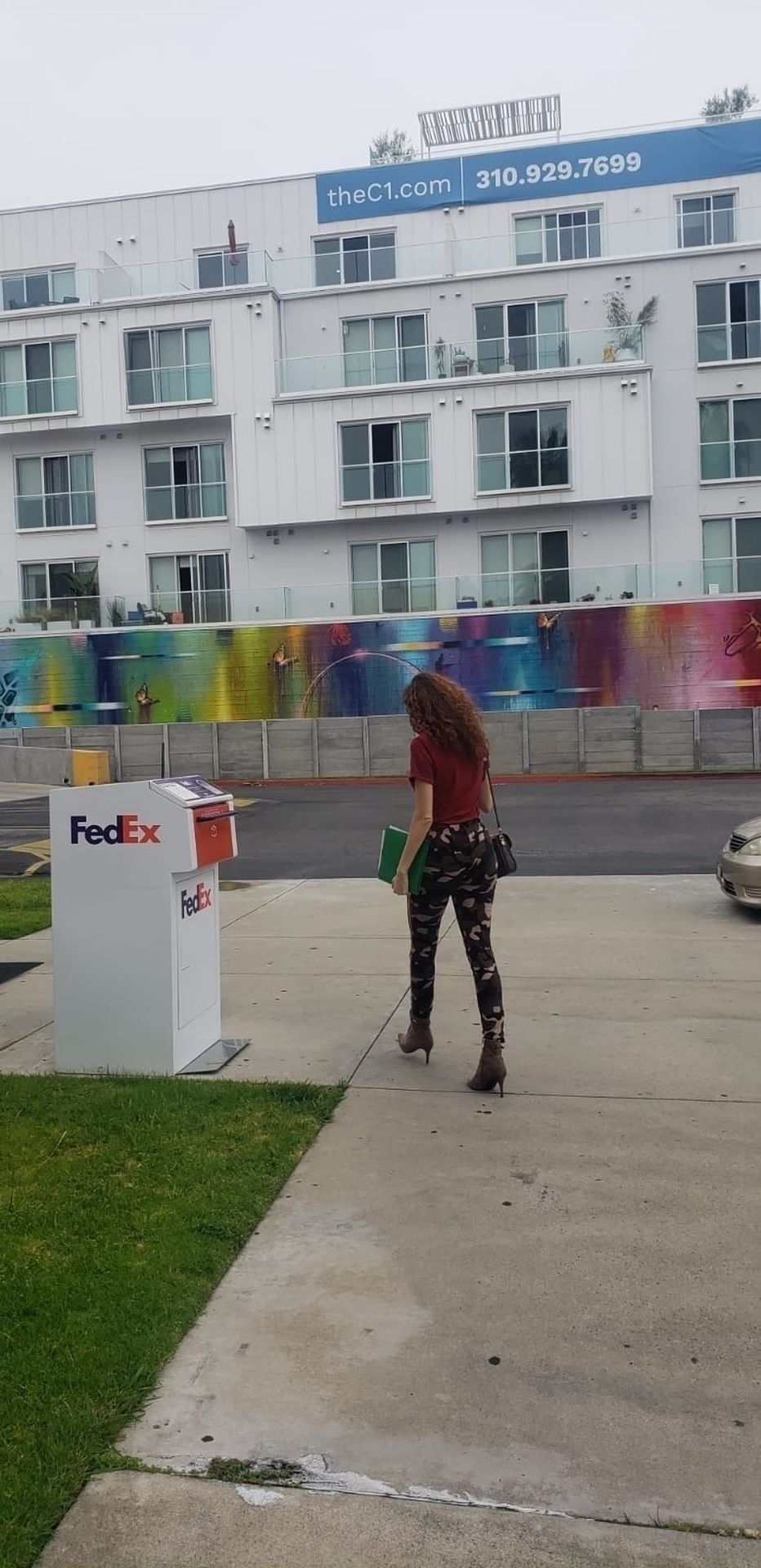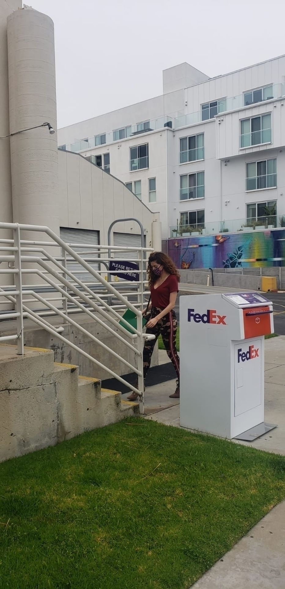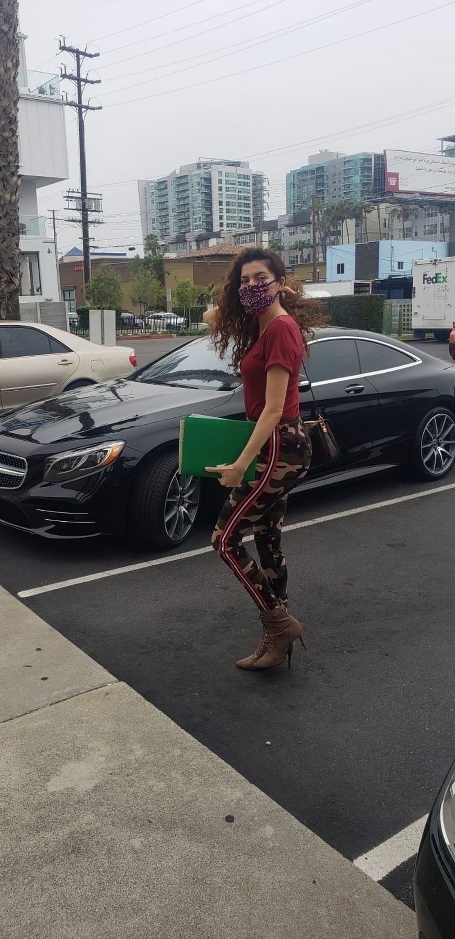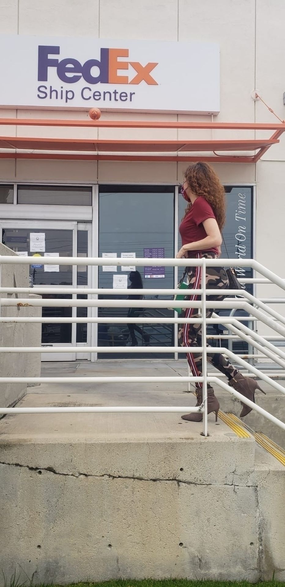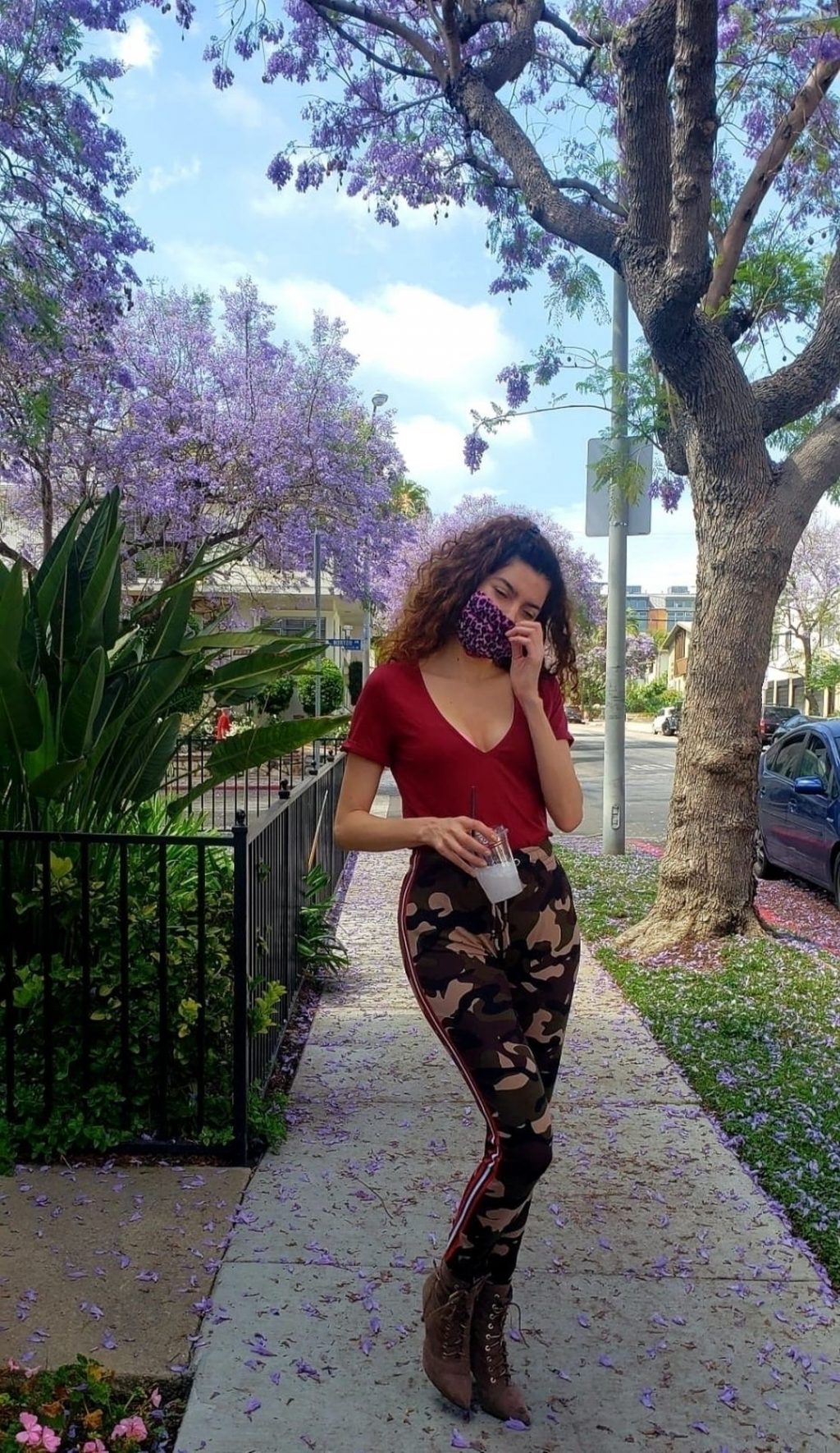 Blanca Blanco se rend chez FedEx à Los Angeles, 30/05/2020. L’actrice montre son décolleté dans la rue.