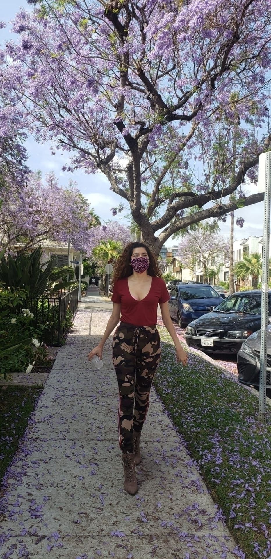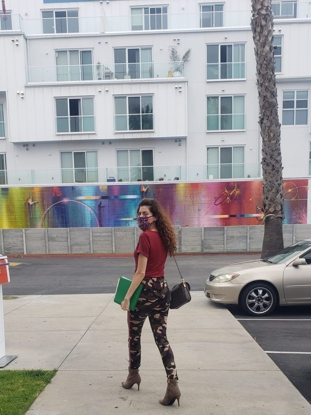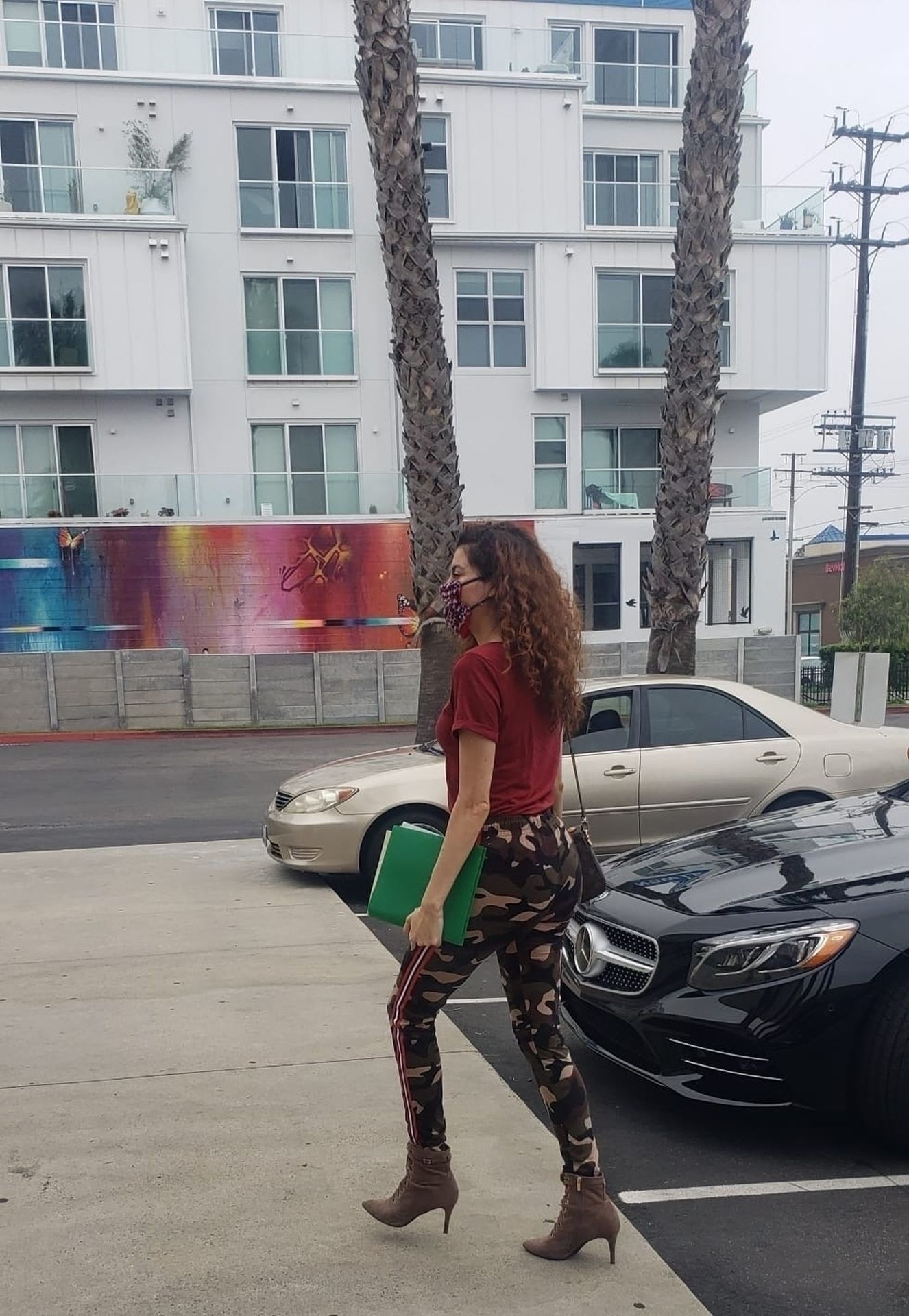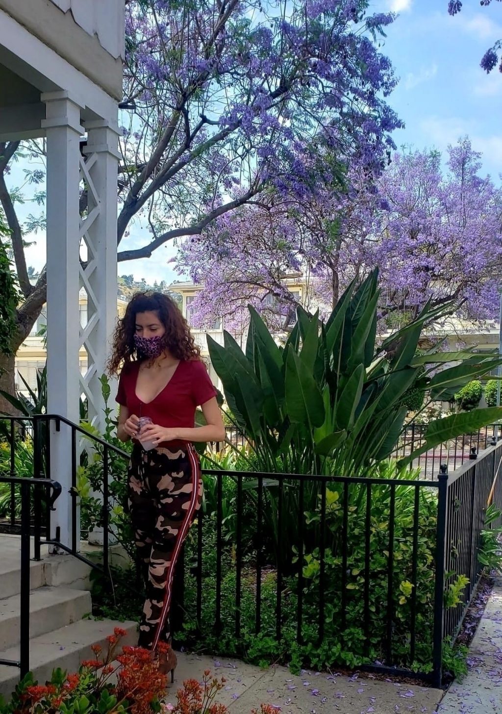 Blanca Blanco se rend chez FedEx à Los Angeles, 30/05/2020. L’actrice montre son décolleté dans la rue.
