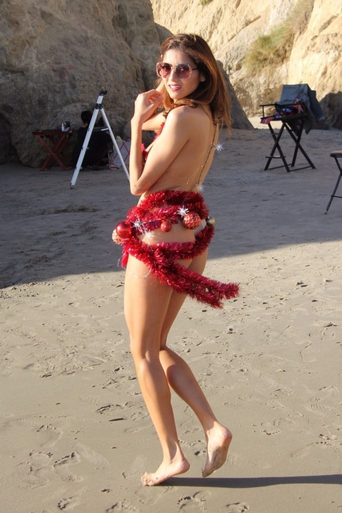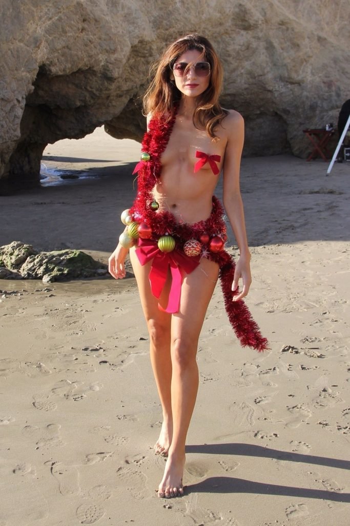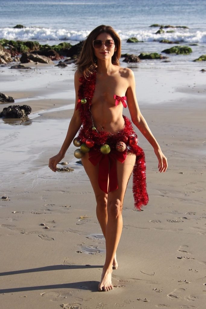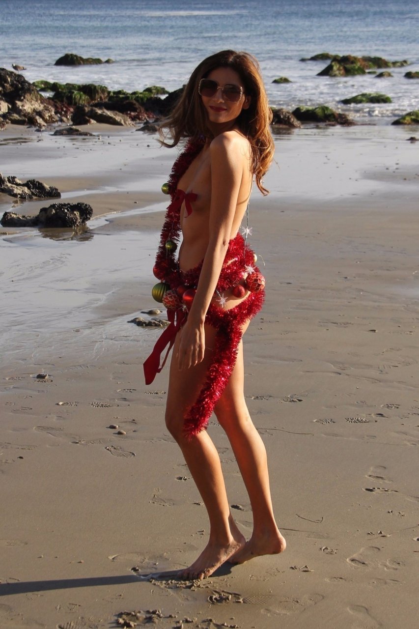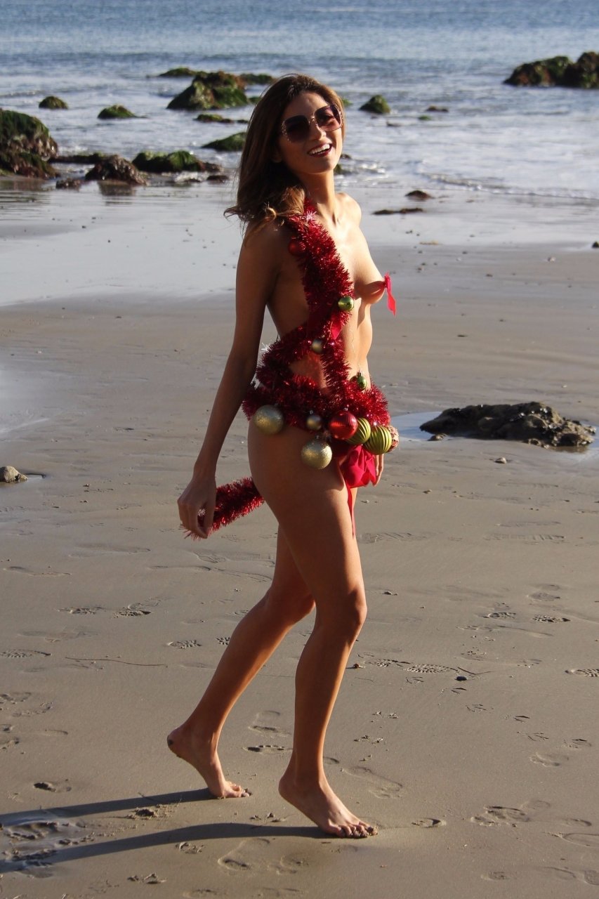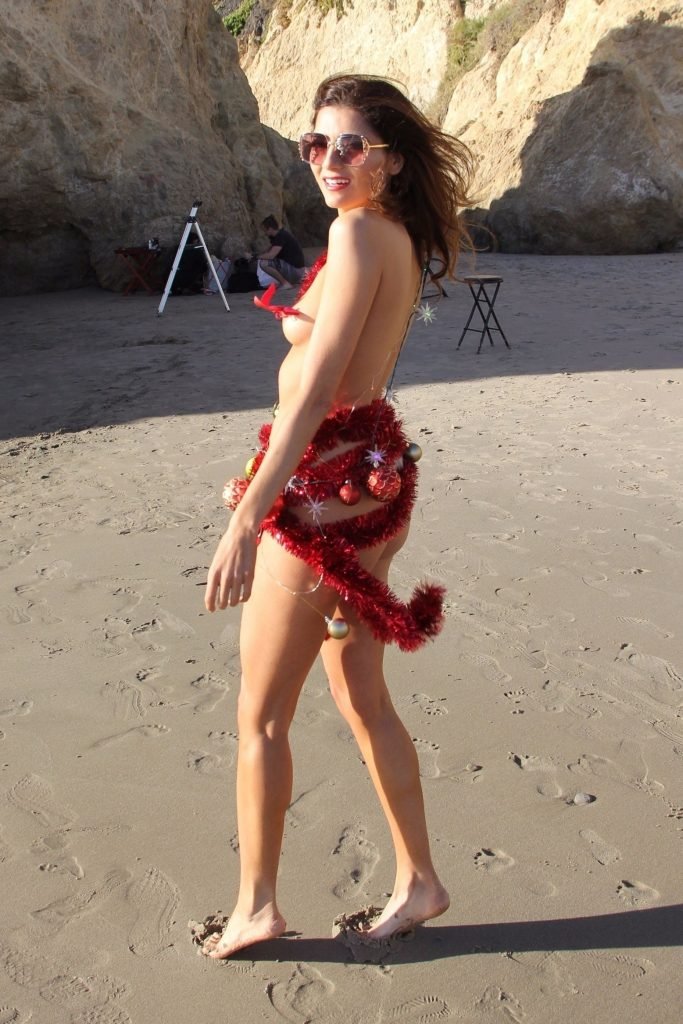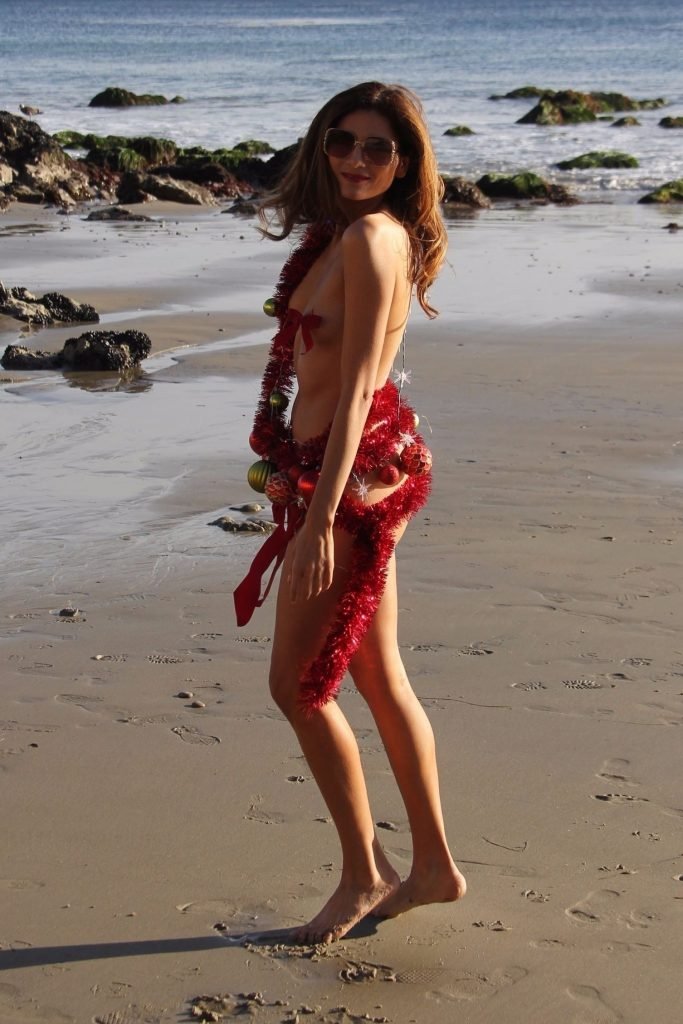 Blanca Blanco affiche son esprit de Noël dans une tenue presque inexistante sur la plage, 12/04/2017. Blanca Blanco est une actrice américaine (The Dog of Christmas). Âge : 36.
