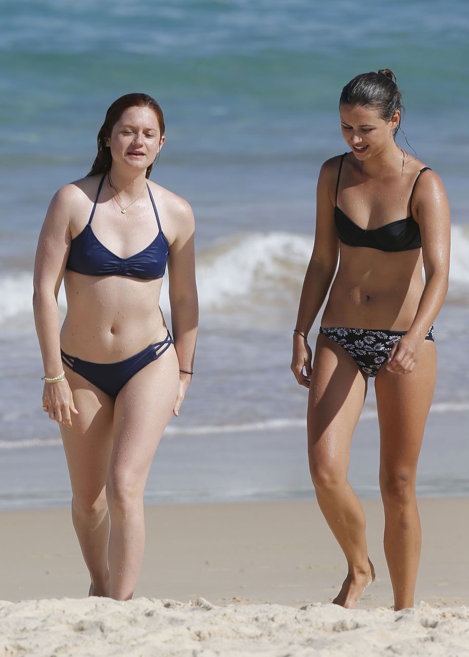 Bonnie Wright portant un bikini sur la plage à Sydney, 12/04/2016. Bikini mouillé, petits tétons durs ! Bonnie Wright est une actrice et mannequin anglaise. Âge : 25 ans (17 février 1991).