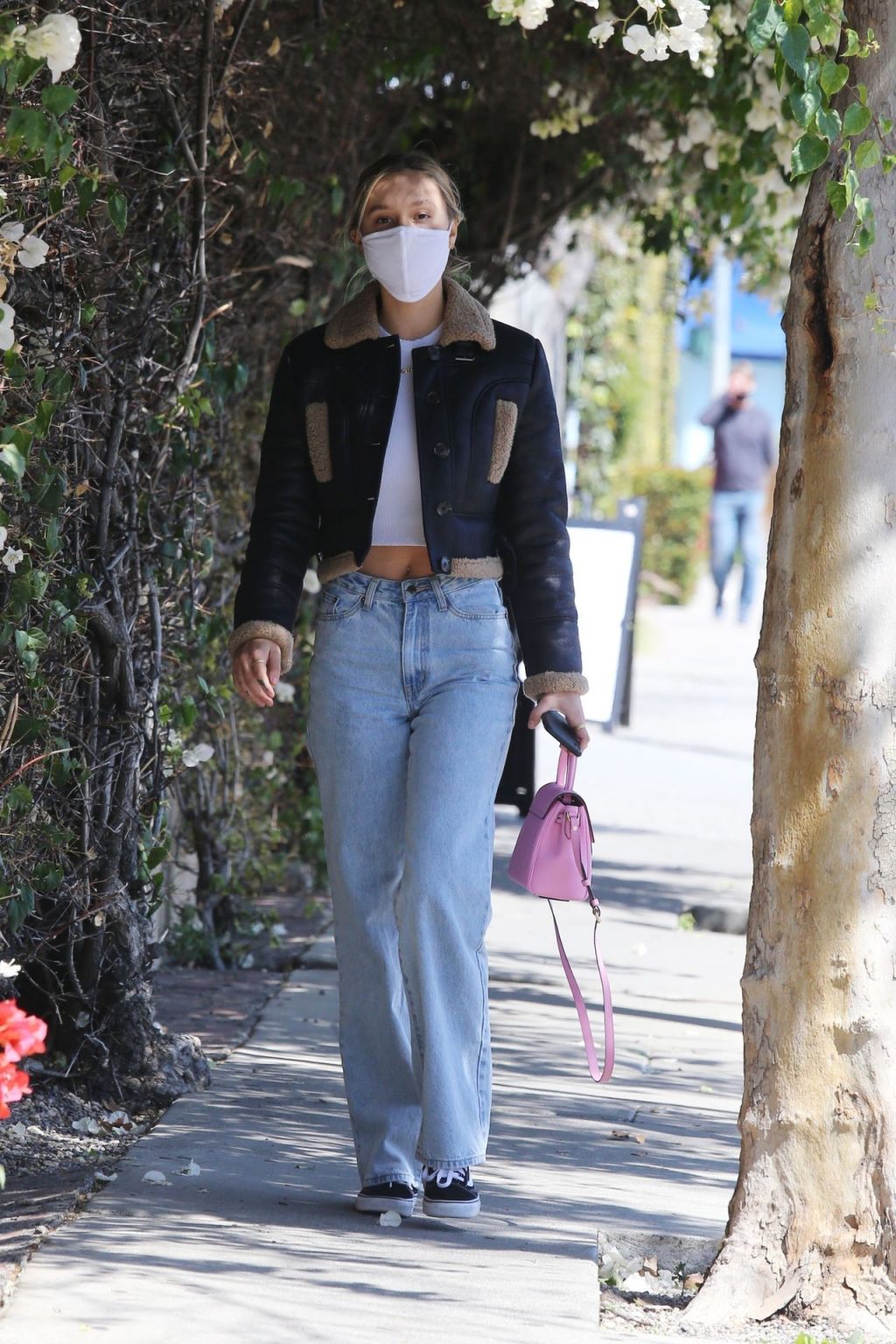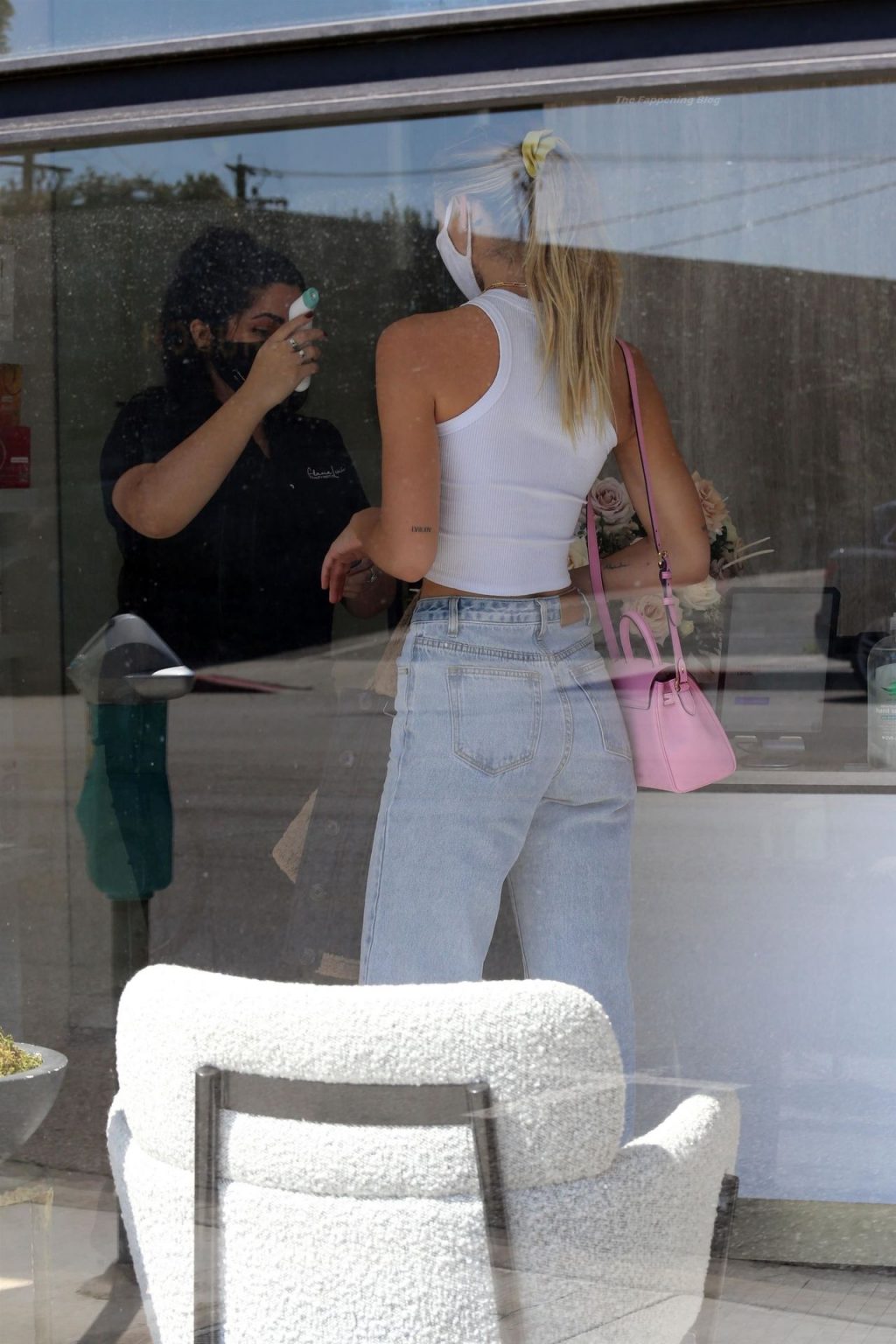 Alexis Ren de bonne humeur alors qu’elle se rend dans un salon mardi après-midi. Le mannequin Instagram se fait prendre la température en entrant.