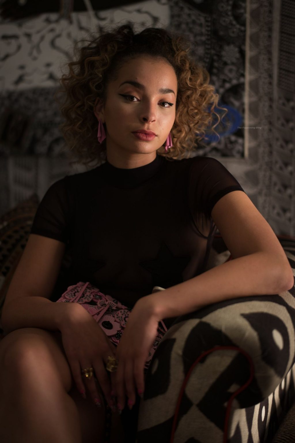 La star de The Fappening Ella Eyre est photographiée assistant à une projection spéciale de Girls Trip à l’hôtel Soho à Londres, le 25/06/2017. La chanteuse exhibe sa poitrine, portant un haut transparent avec des étoiles sur ses seins.