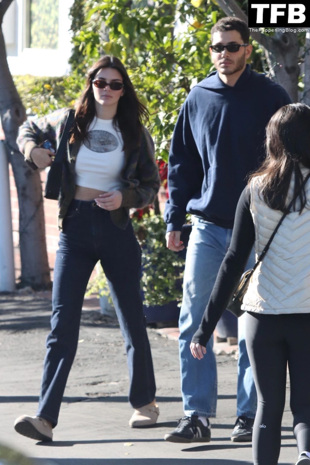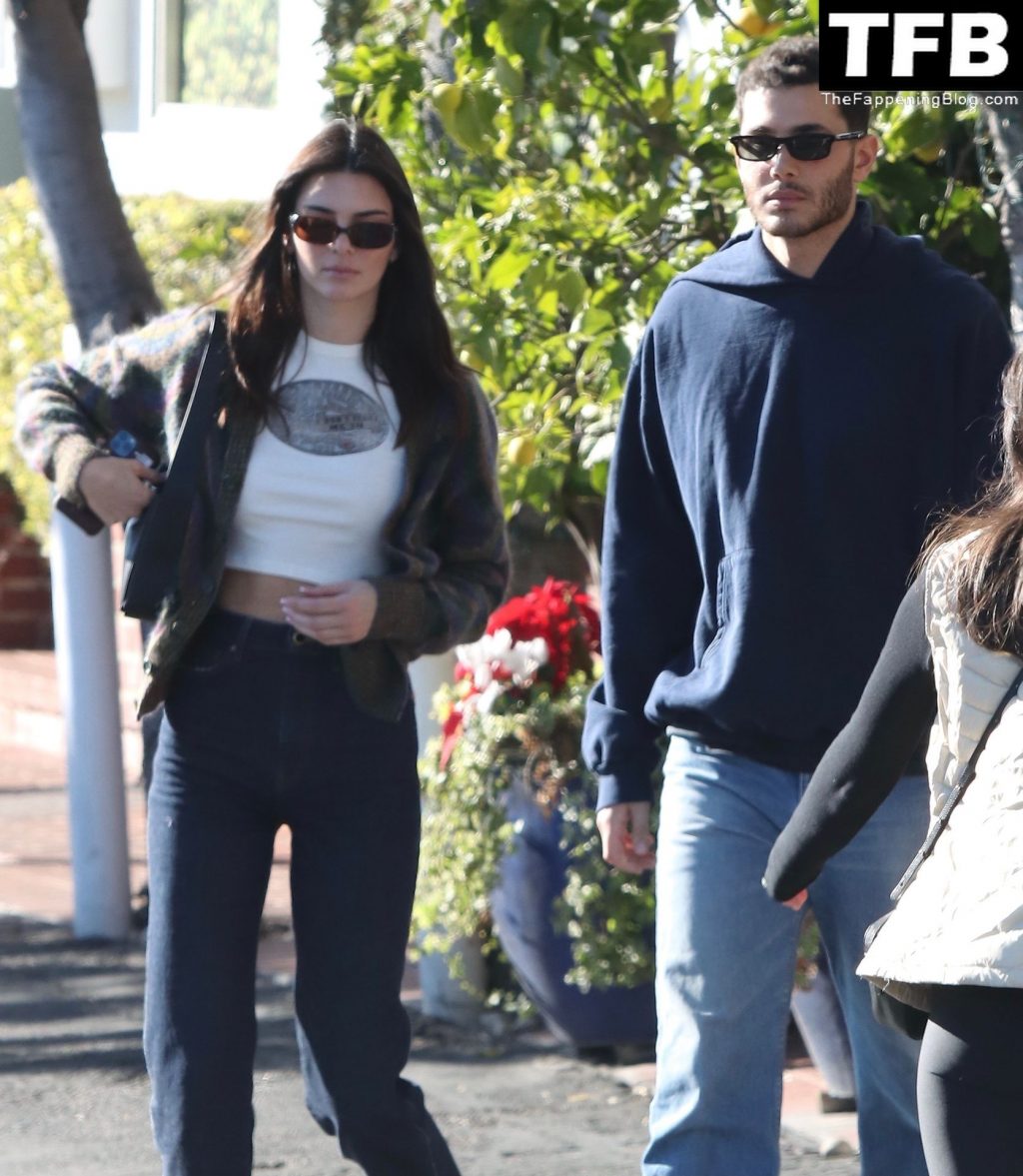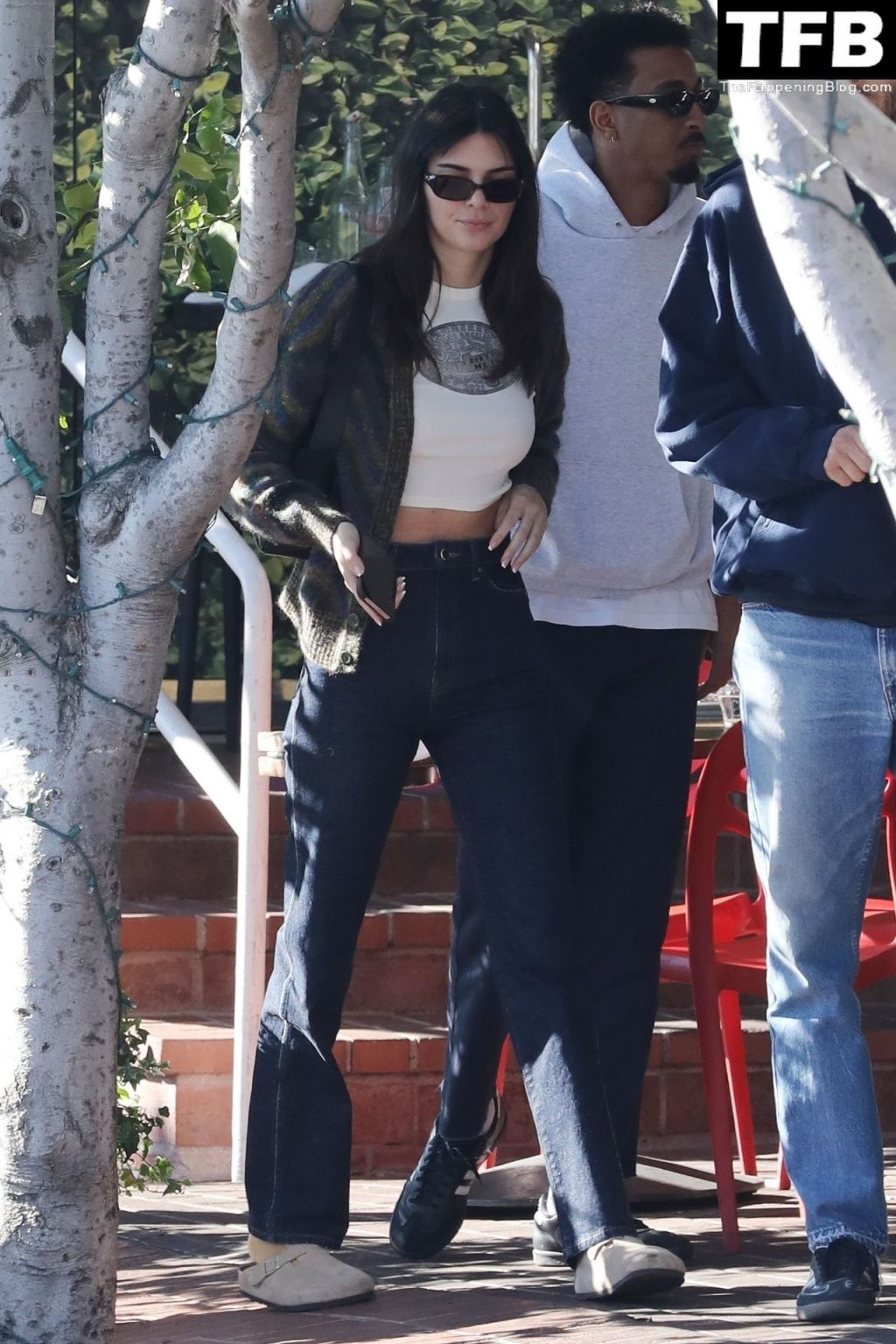 La supermodèle Kendall Jenner affiche son ventre ferme dans un crop top après un déjeuner avec Fai Khadra et une autre amie au Mauro’s Cafe à Fred Segal West Hollywood, le 05/02/2022.