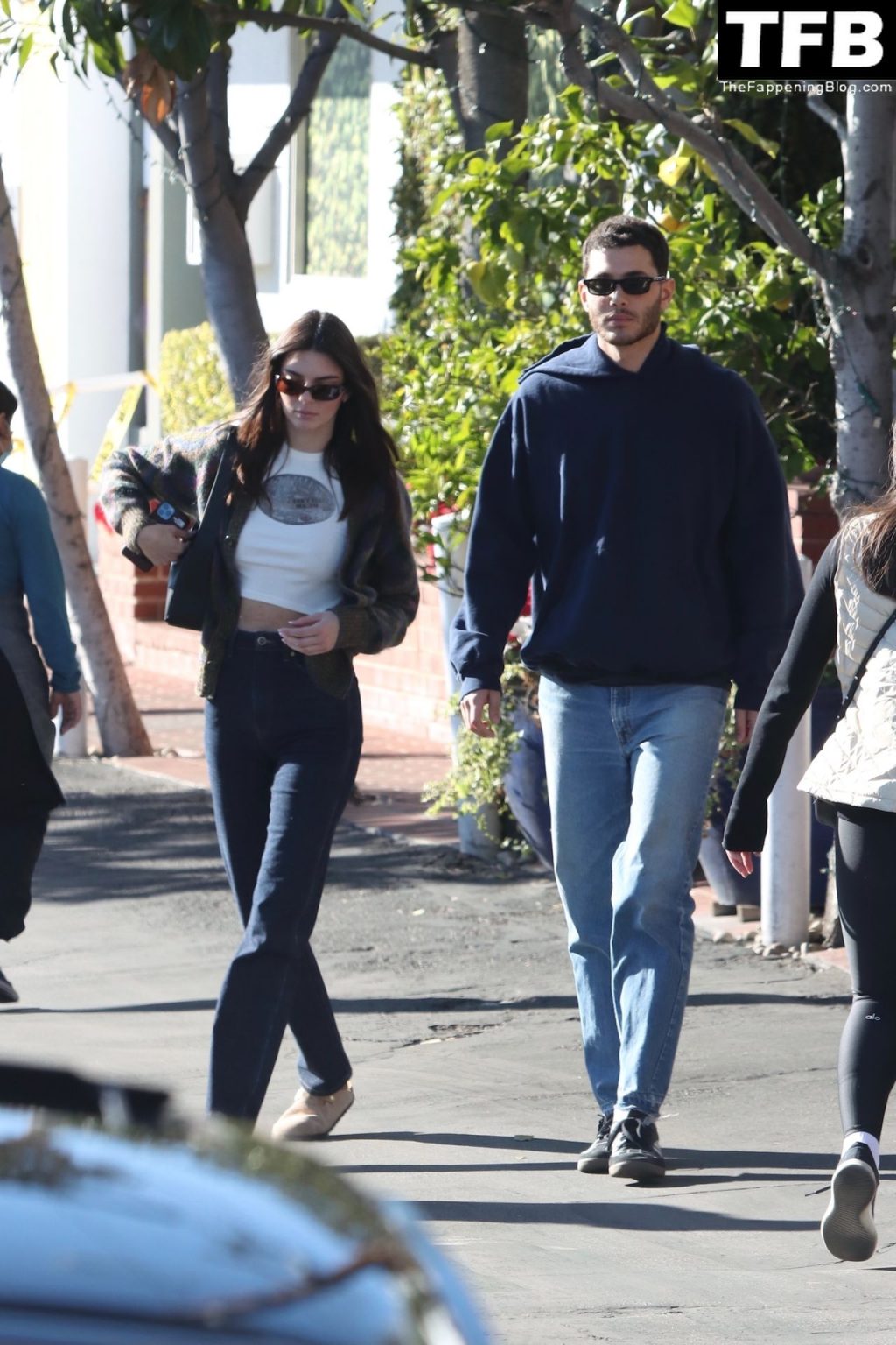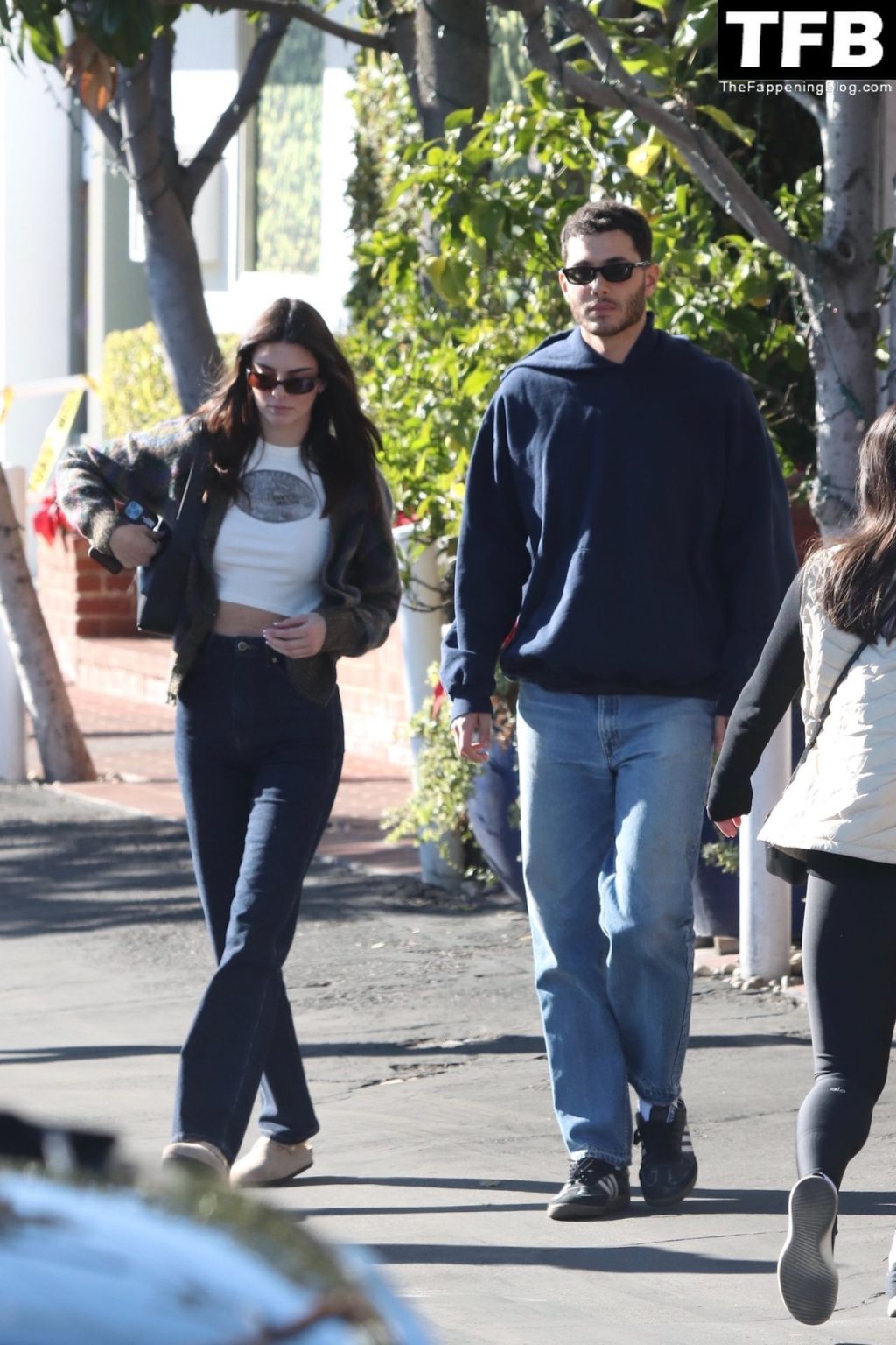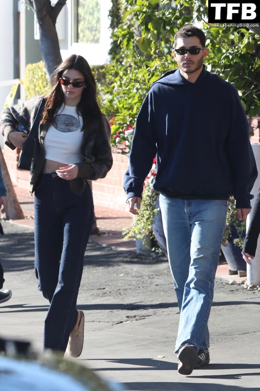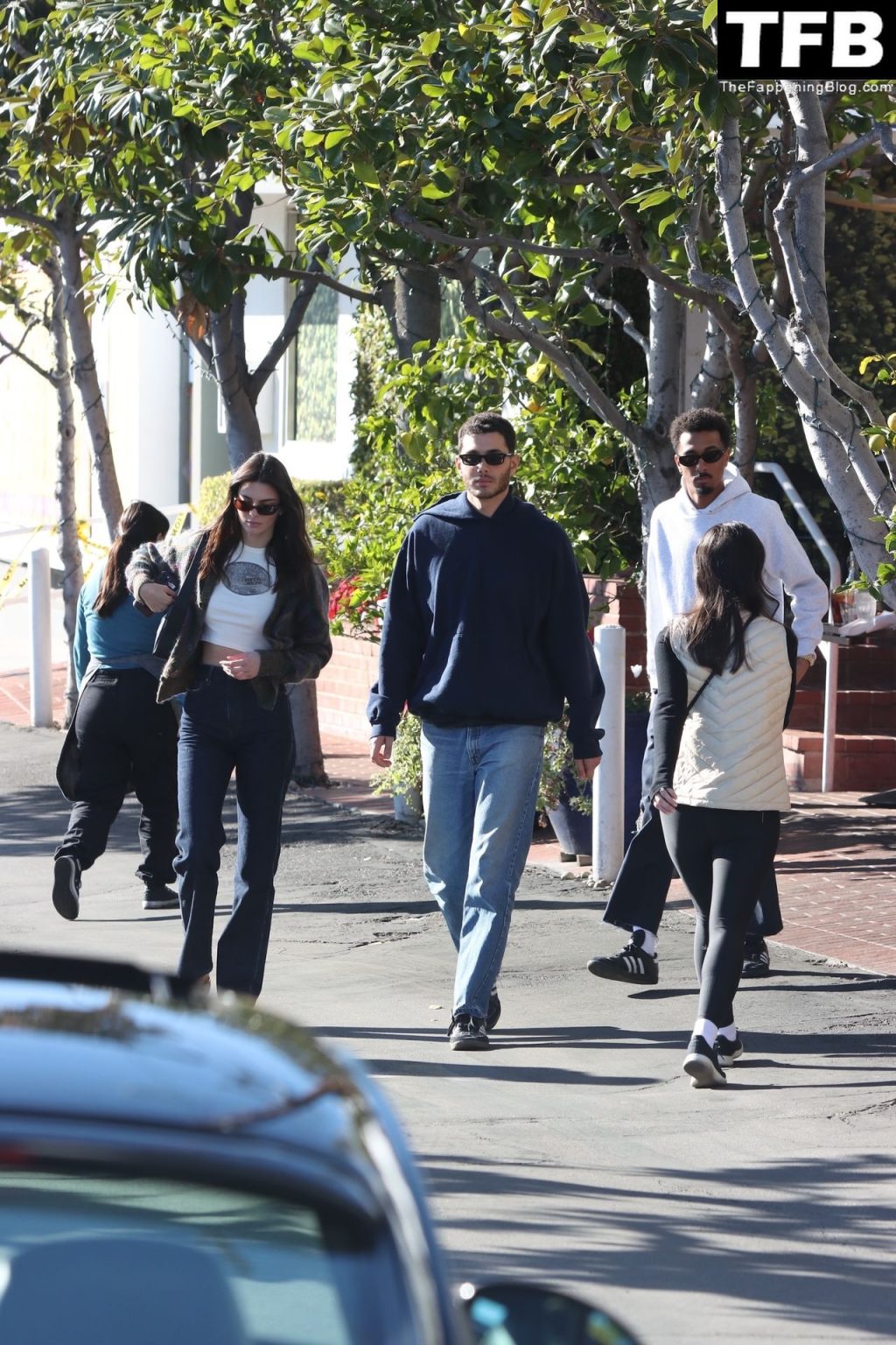La supermodèle Kendall Jenner affiche son ventre ferme dans un crop top après un déjeuner avec Fai Khadra et une autre amie au Mauro’s Cafe à Fred Segal West Hollywood, le 05/02/2022.