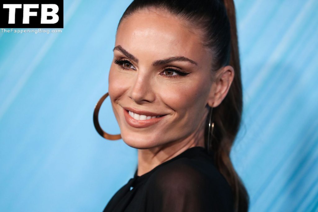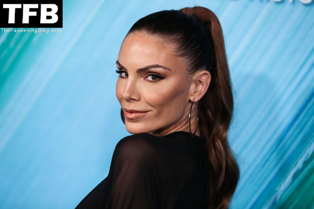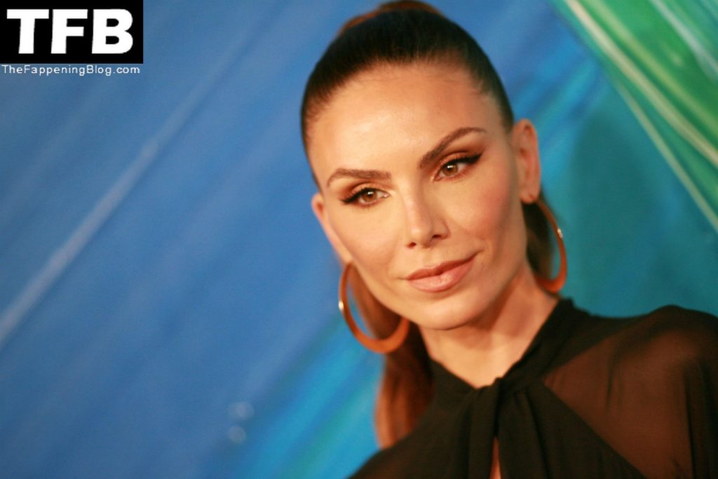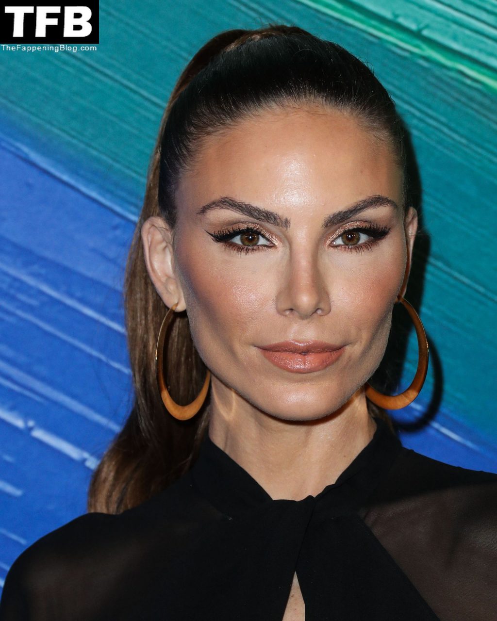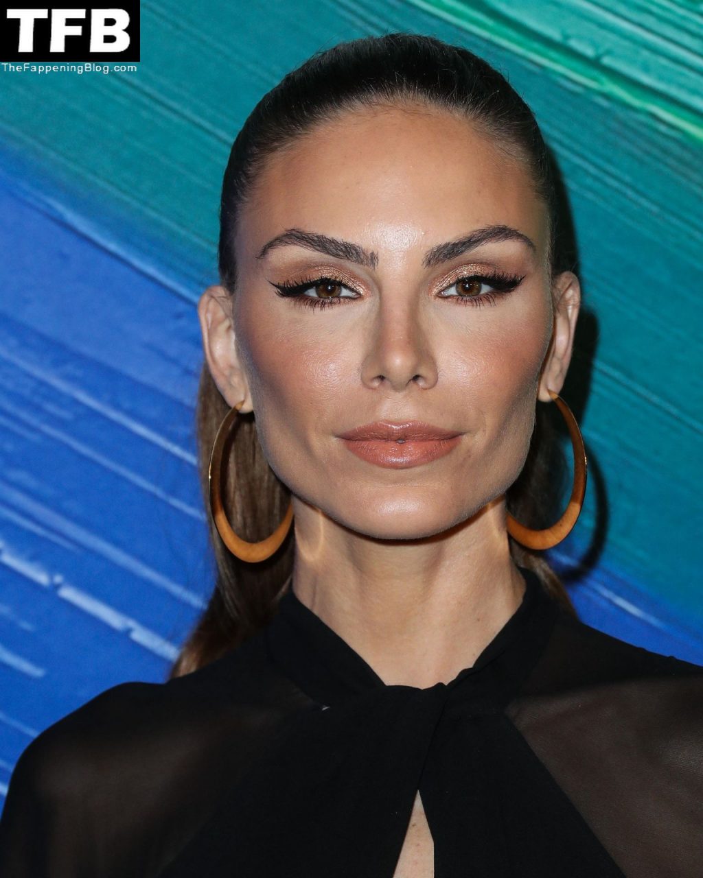 L’actrice Nina Senicar pose dans une robe noire transparente au gala amfAR Los Angeles 2021 honorant TikTok et Jeremy Scott, qui s’est tenu au Pacific Design Center à West Hollywood, le 11/04/2021.