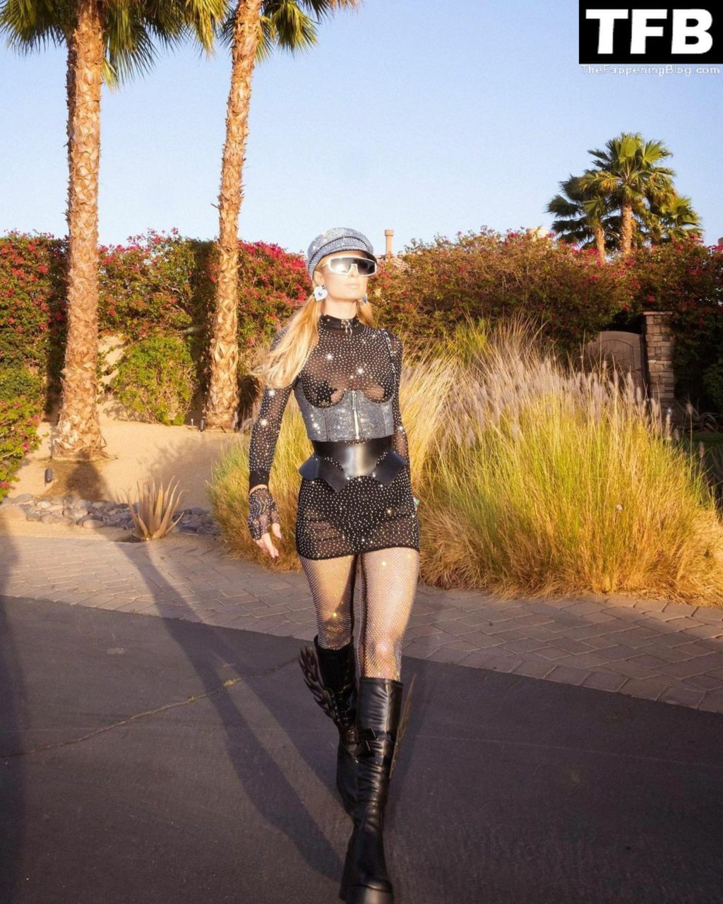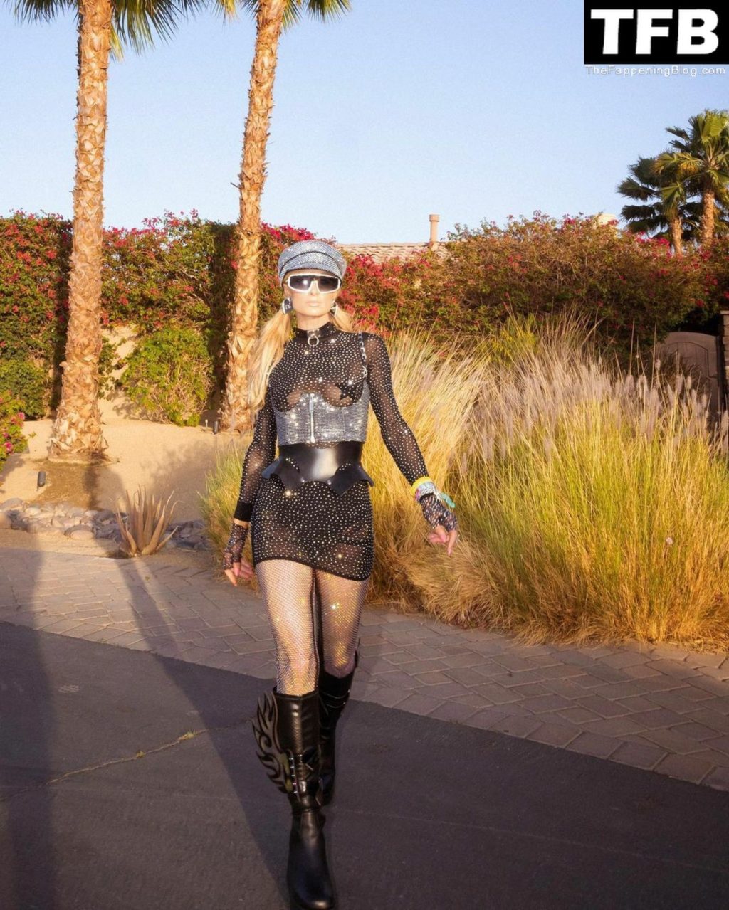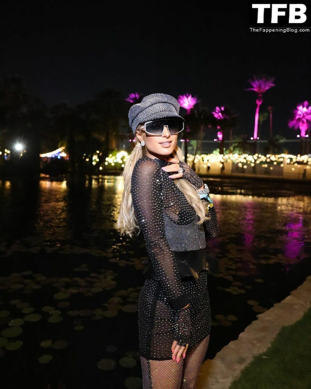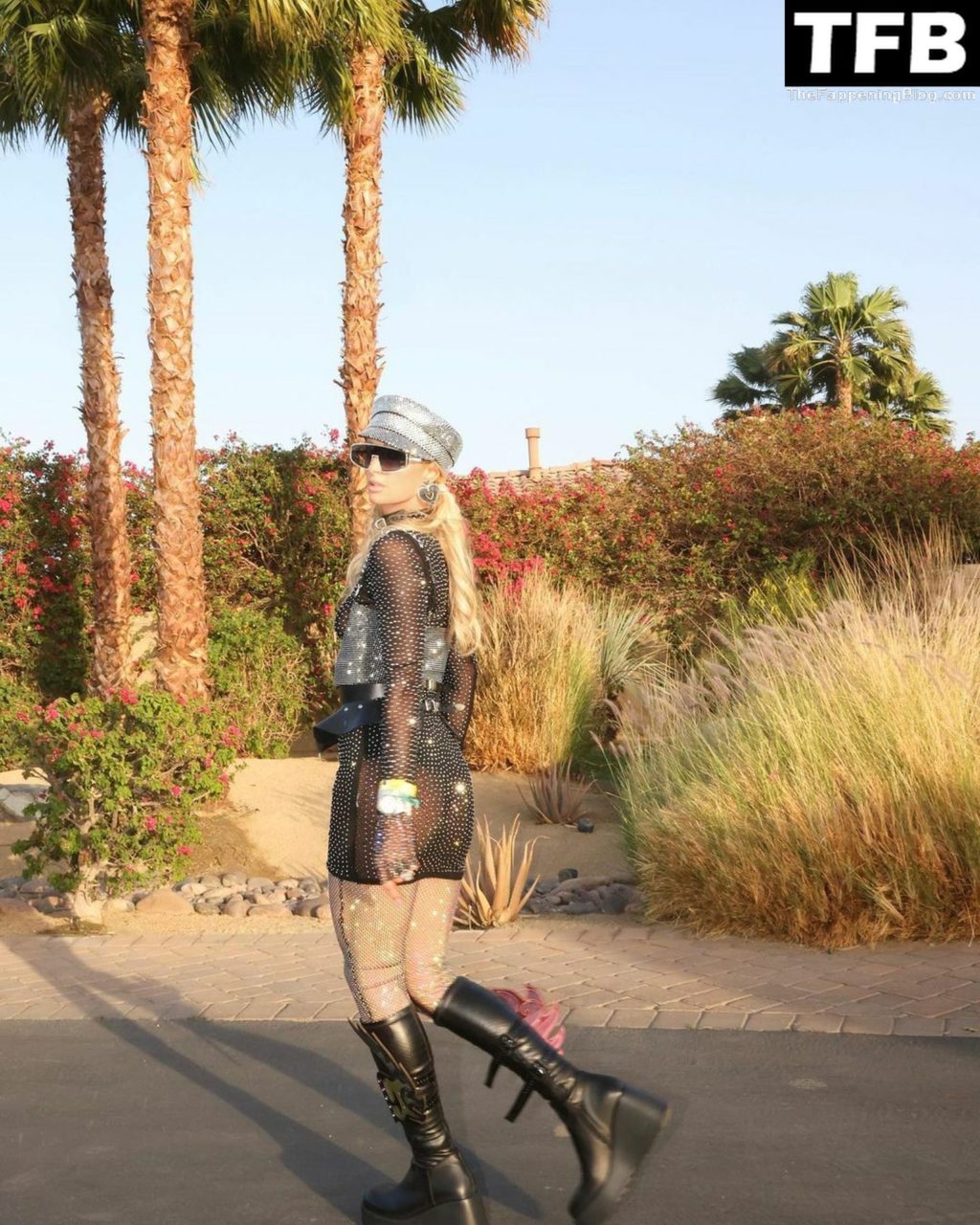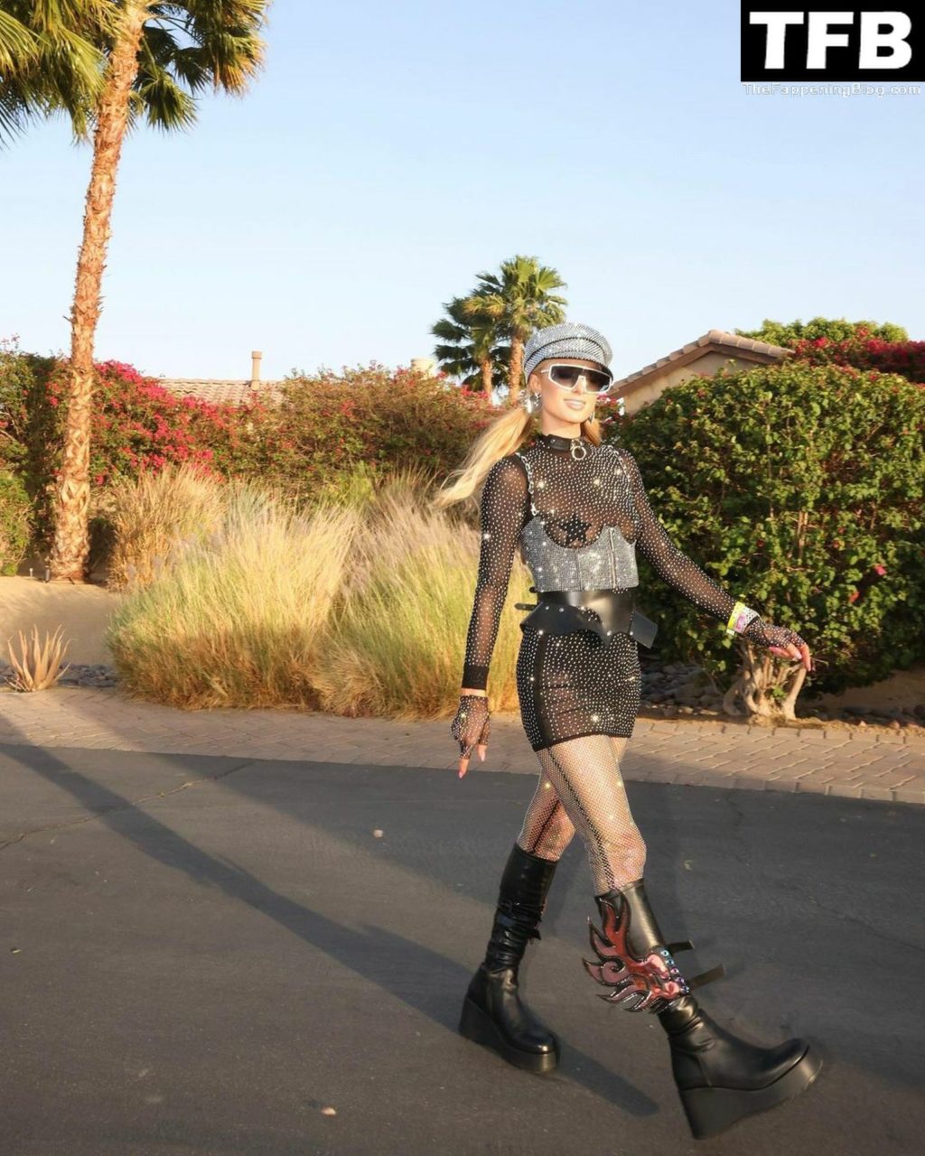 La star du Fappening Paris Hilton et son équipe arrivent à la fête Neon Carnival pendant Coachella et la mondaine est entièrement vêtue pour l’occasion, portant un pull arc-en-ciel associé à une robe scintillante – Indio, 17/04/2022.
