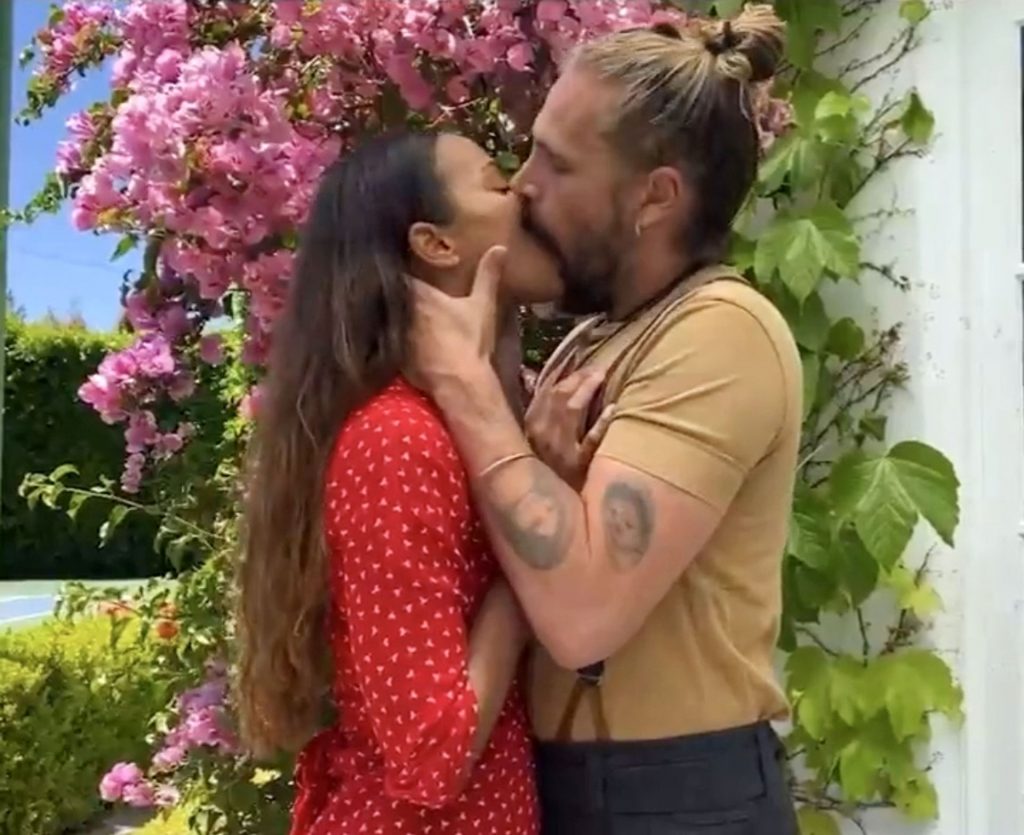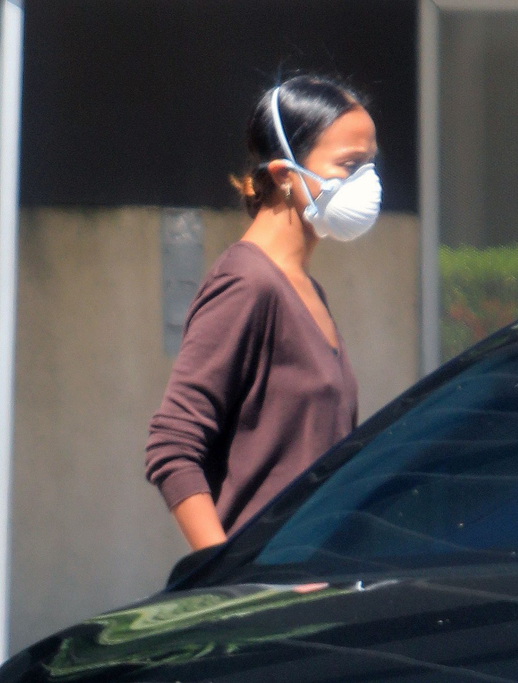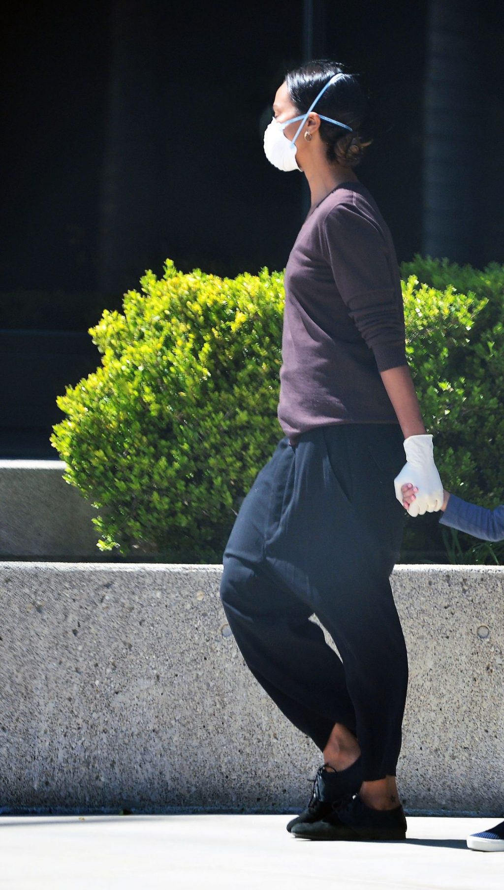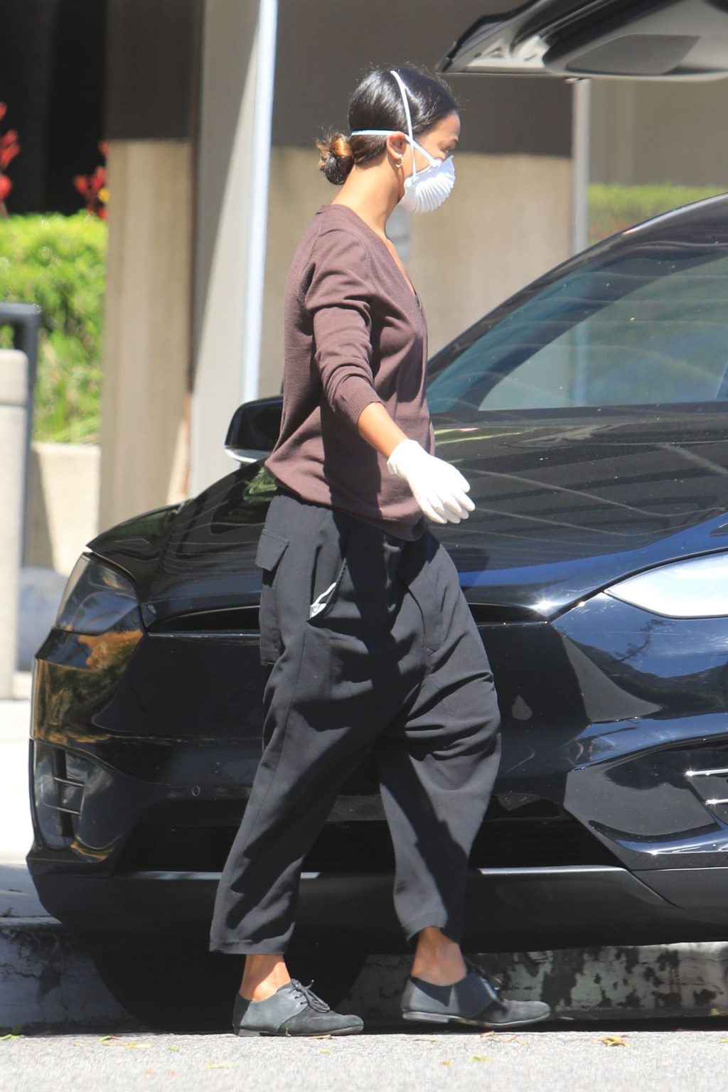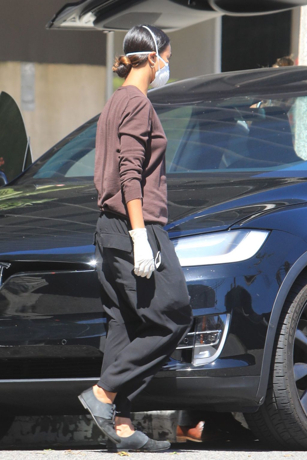 Zoe Saldana et Marco Perego sortent à Los Angeles, le 13/05/2020. L’actrice de 41 ans d'”Avatar” portait un masque facial, un pull bordeaux, un pantalon ample et des chaussures noires.