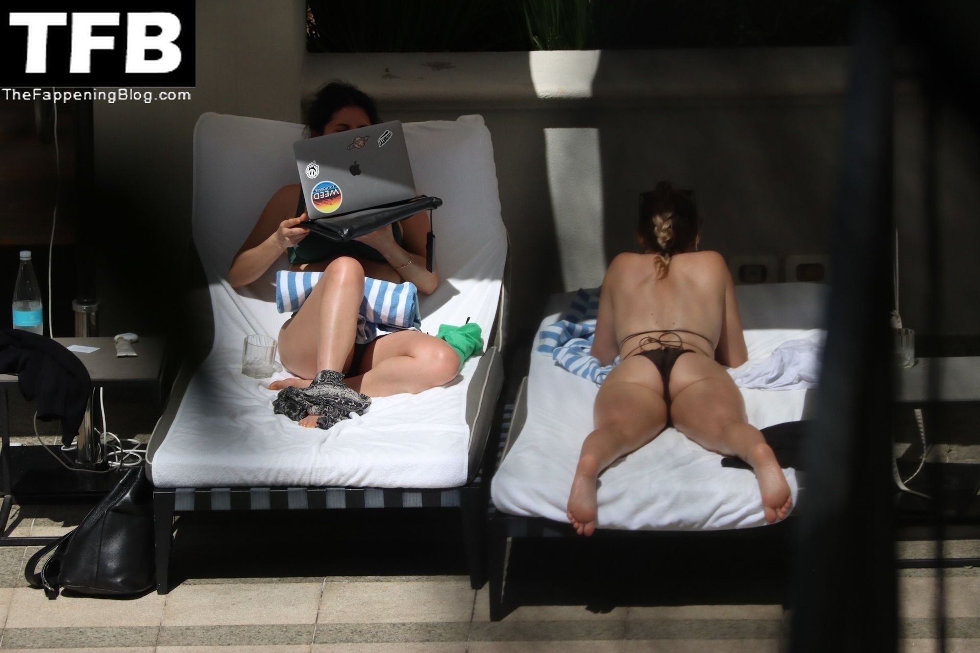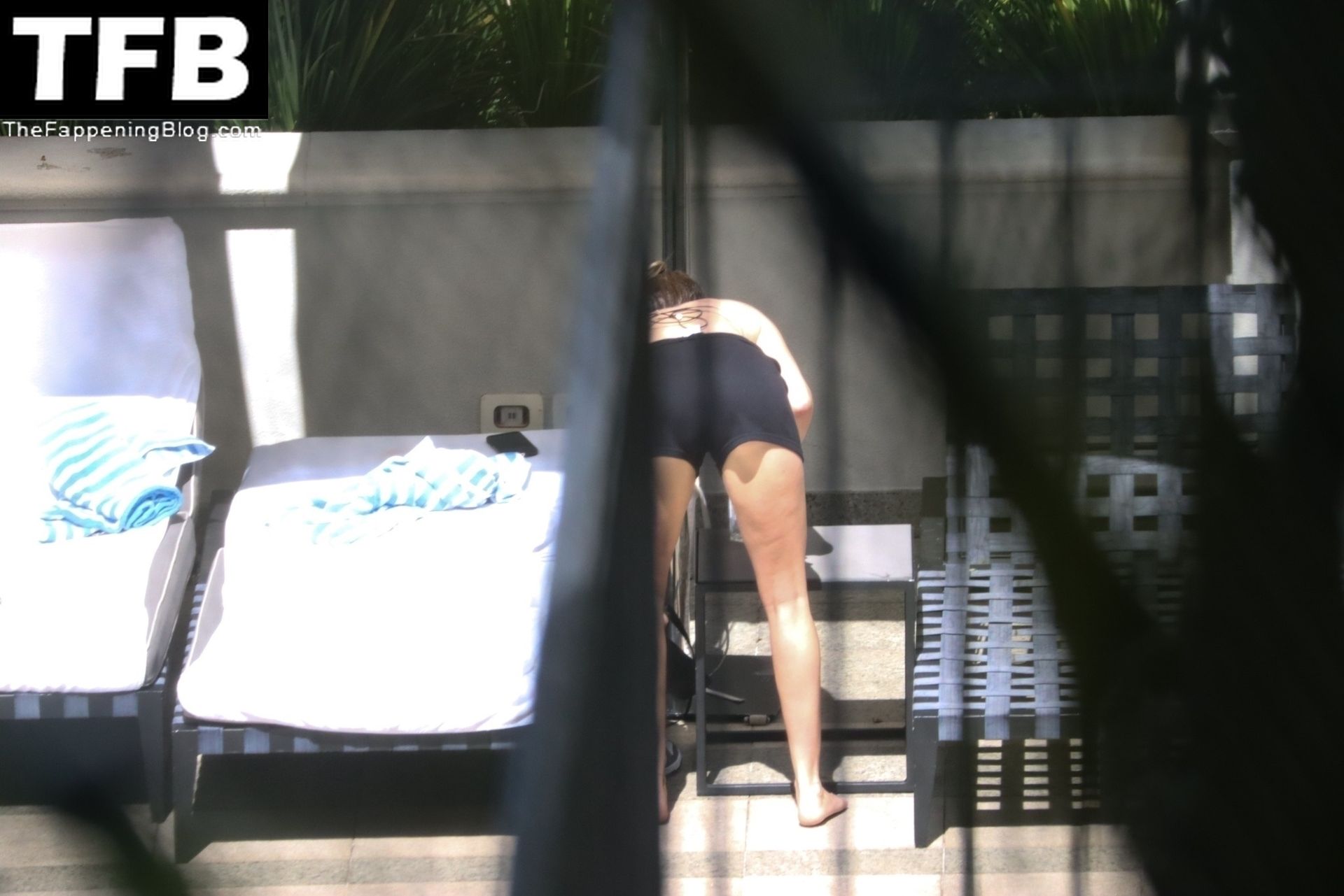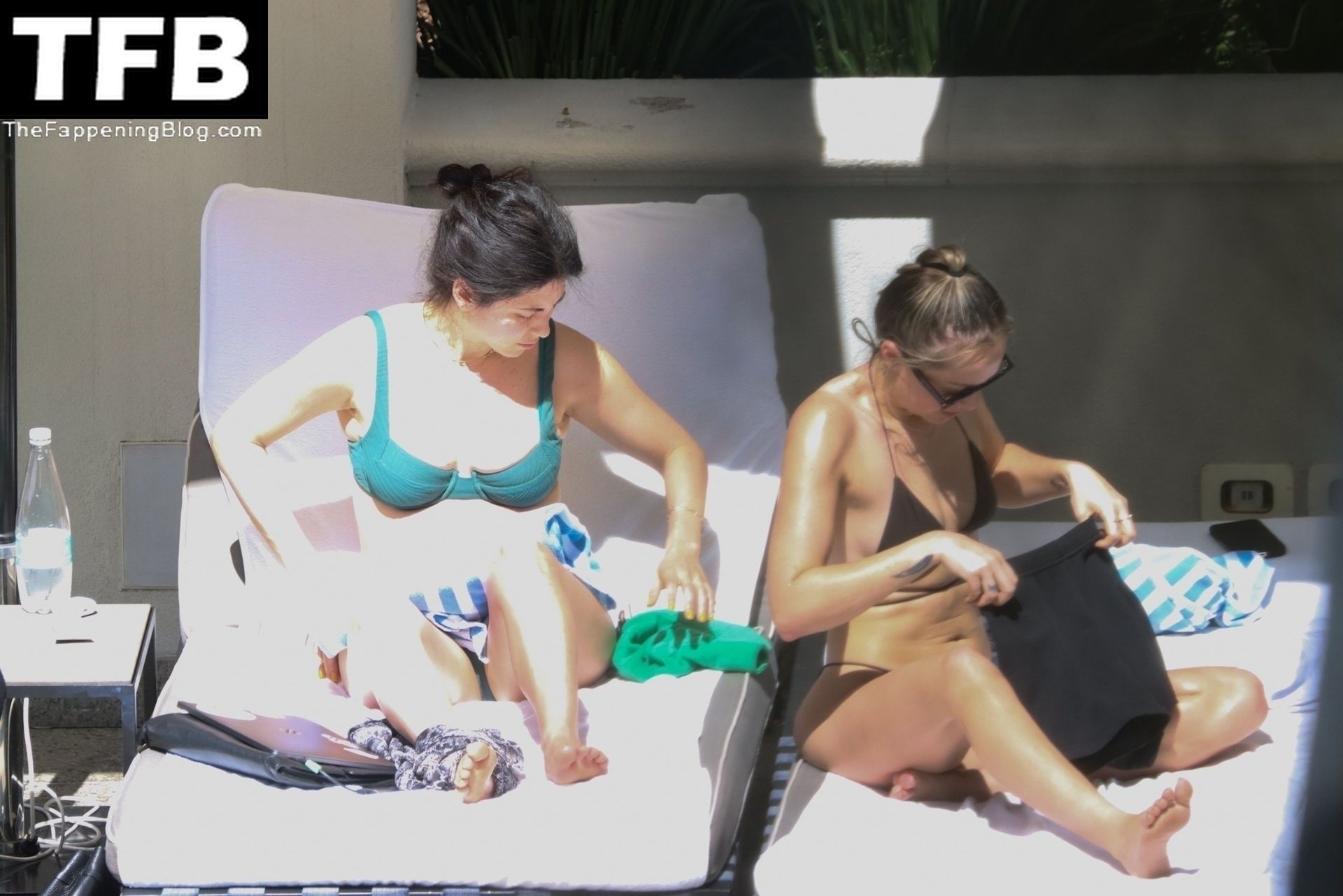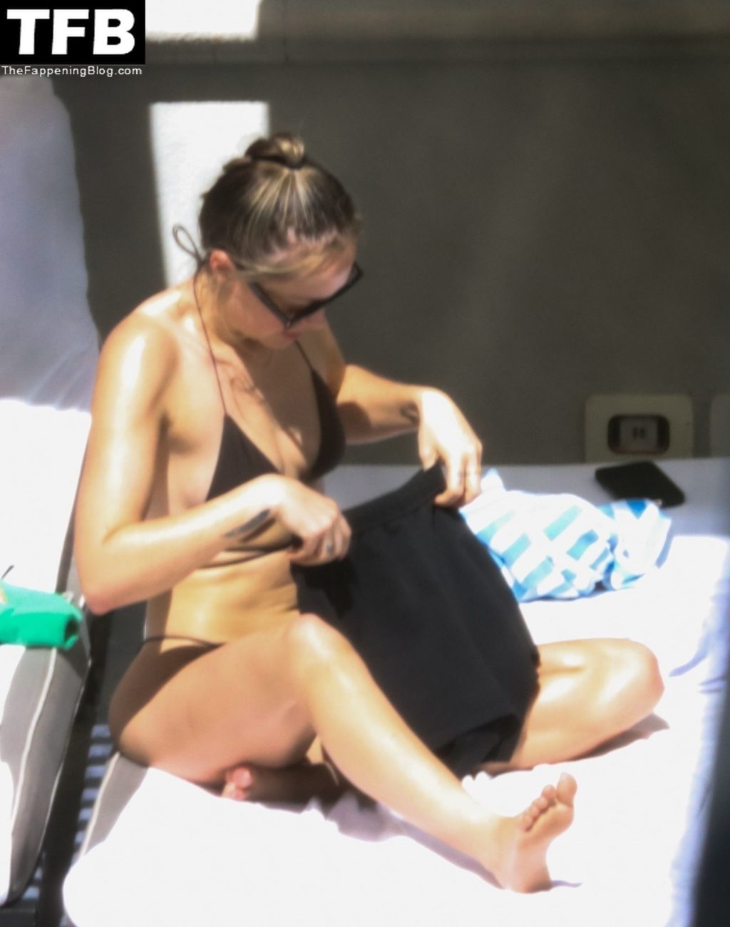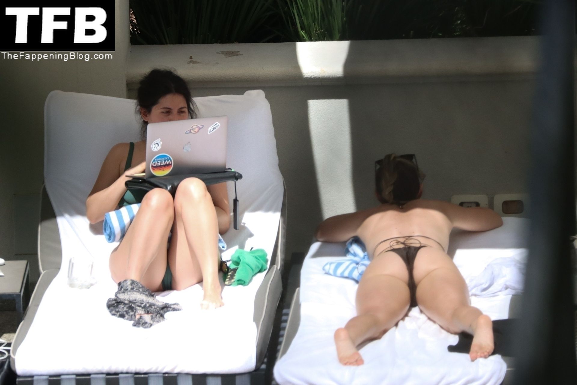 La sœur de Miley Cyrus, Brandi Cyrus, se détend au bord de la piscine de son hôtel avant sa performance à Lollapalooza à São Paulo, le 25/03/2022.