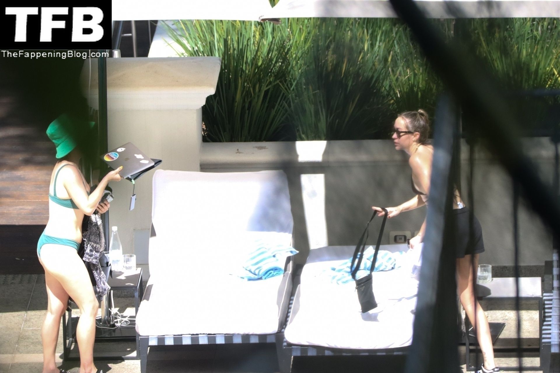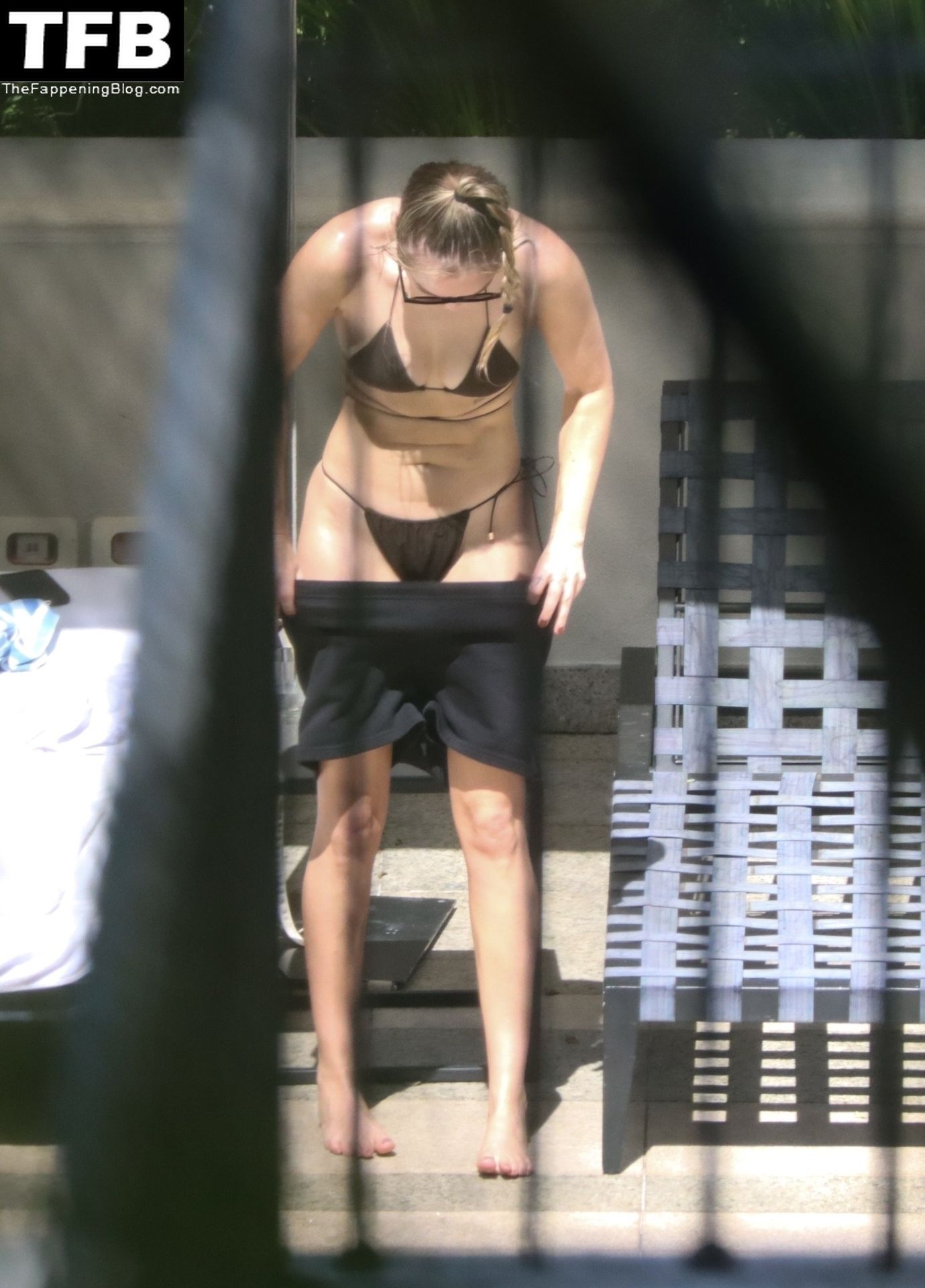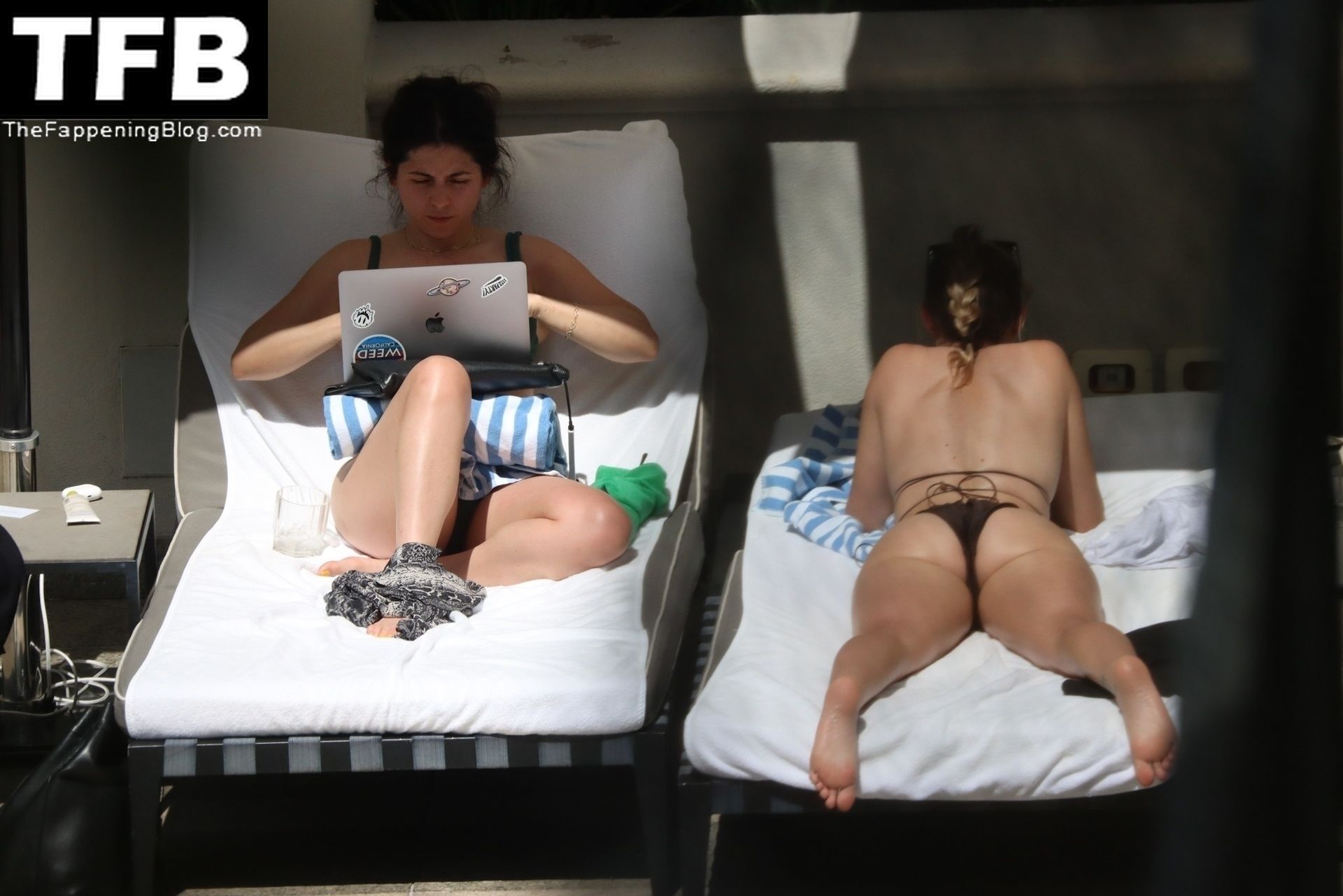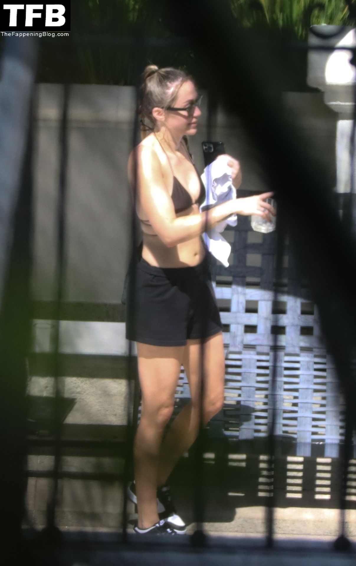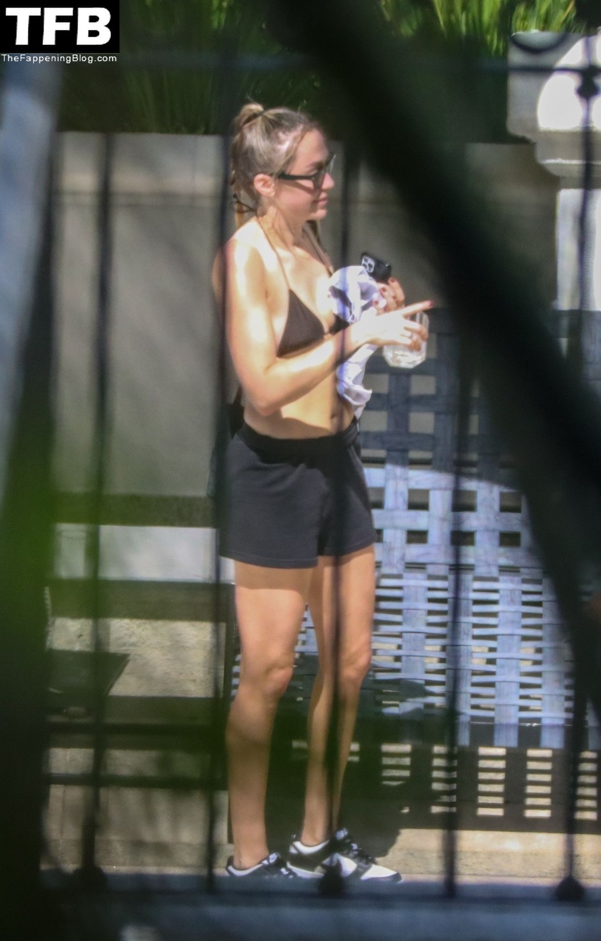 La sœur de Miley Cyrus, Brandi Cyrus, se détend au bord de la piscine de son hôtel avant sa performance à Lollapalooza à São Paulo, le 25/03/2022.