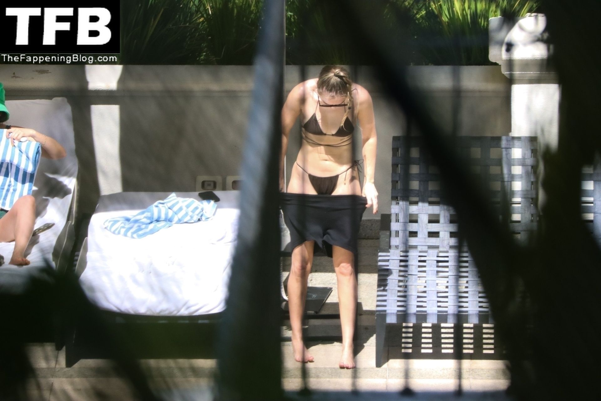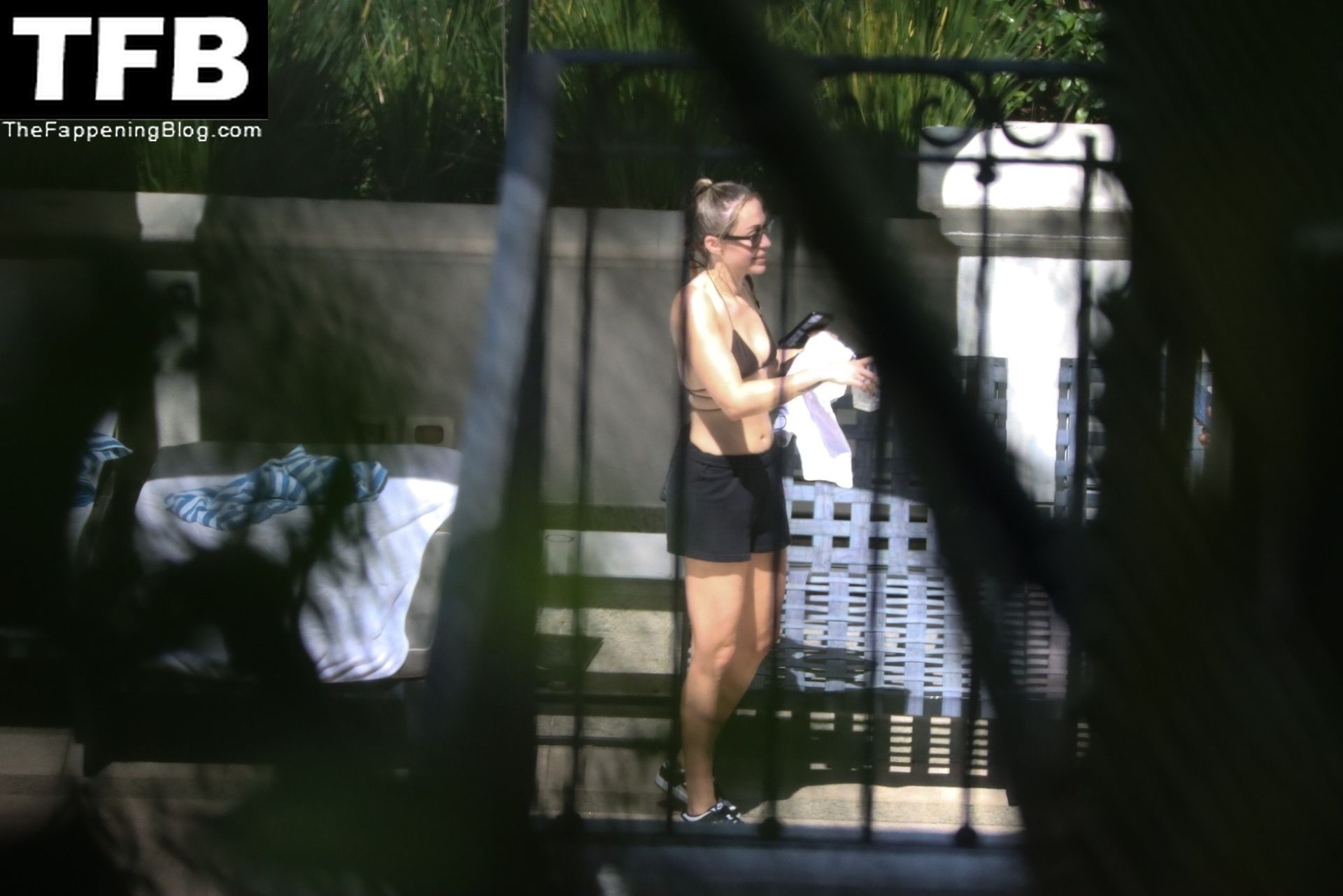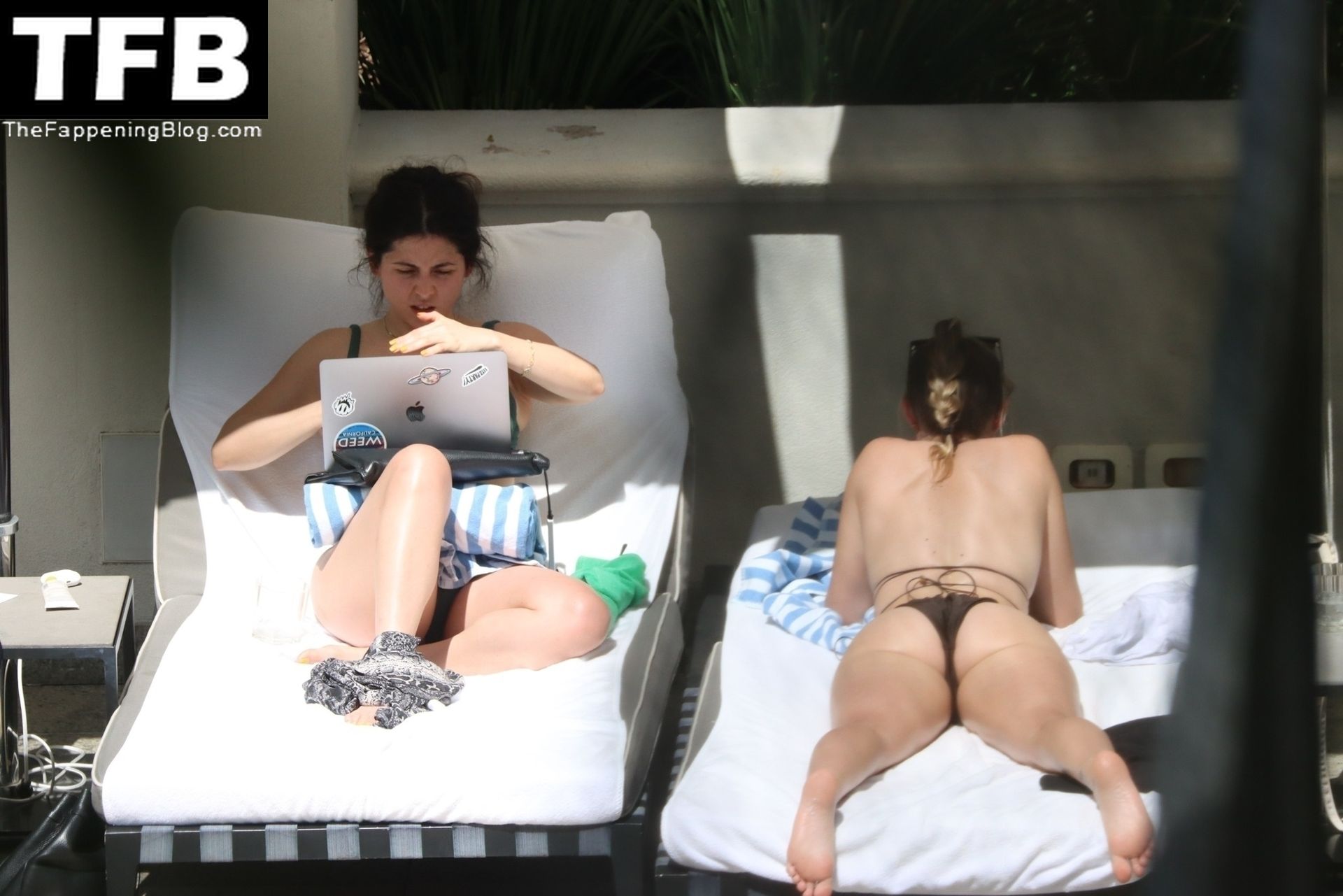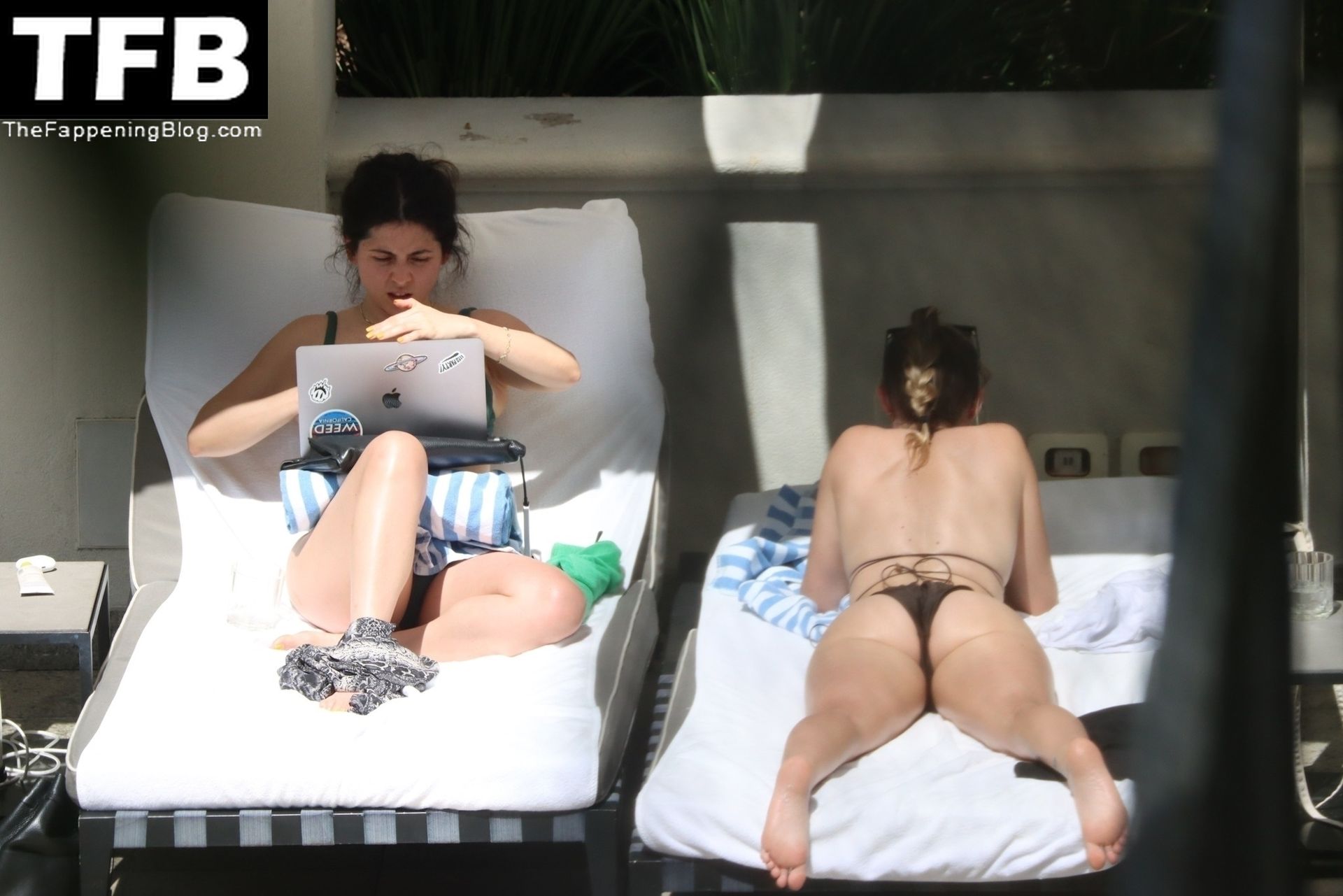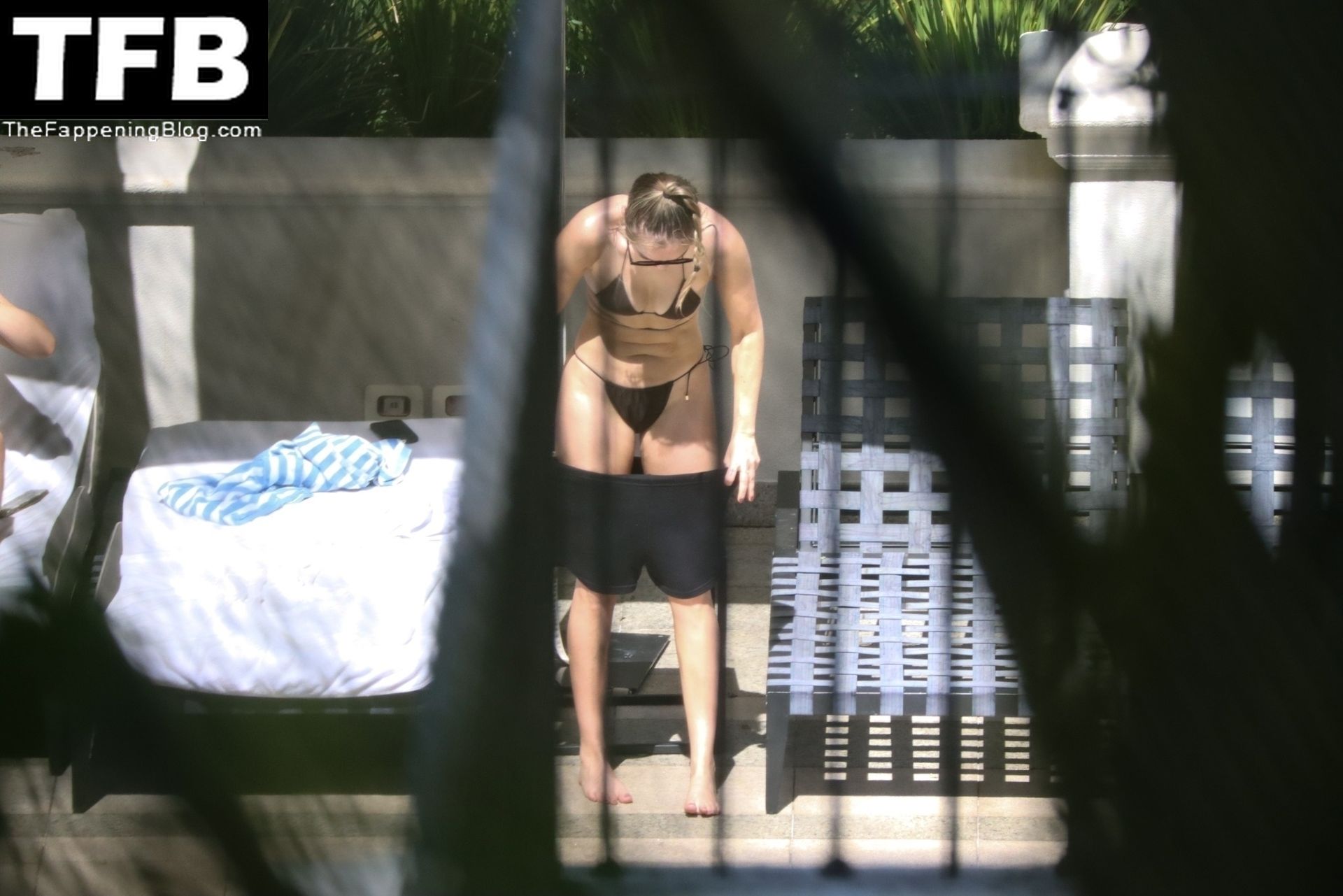 La sœur de Miley Cyrus, Brandi Cyrus, se détend au bord de la piscine de son hôtel avant sa performance à Lollapalooza à São Paulo, le 25/03/2022.