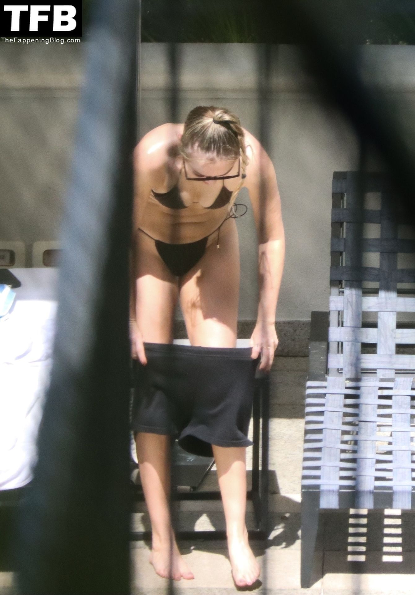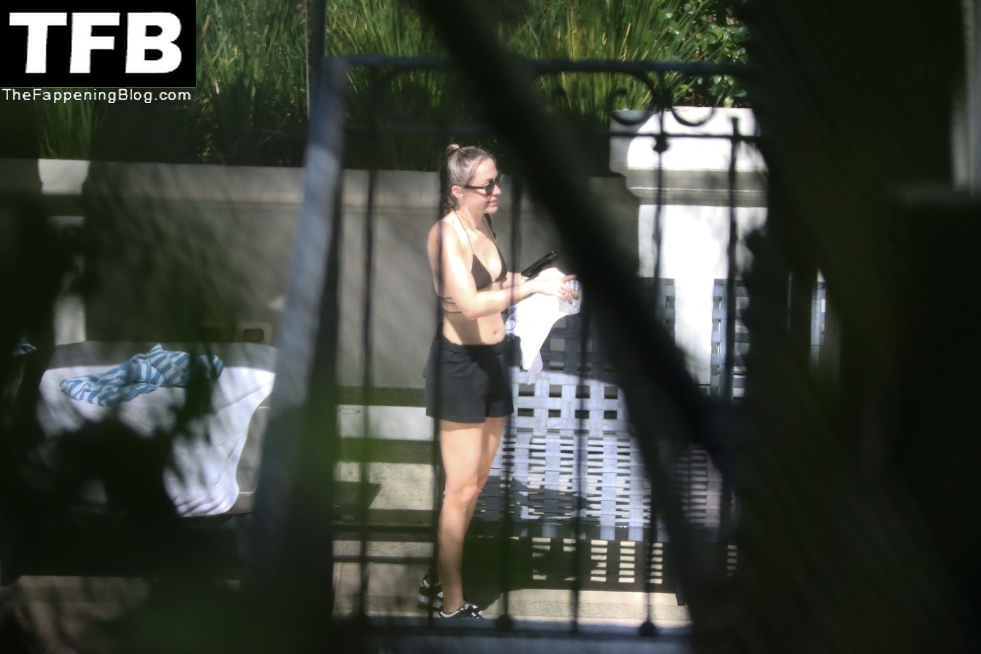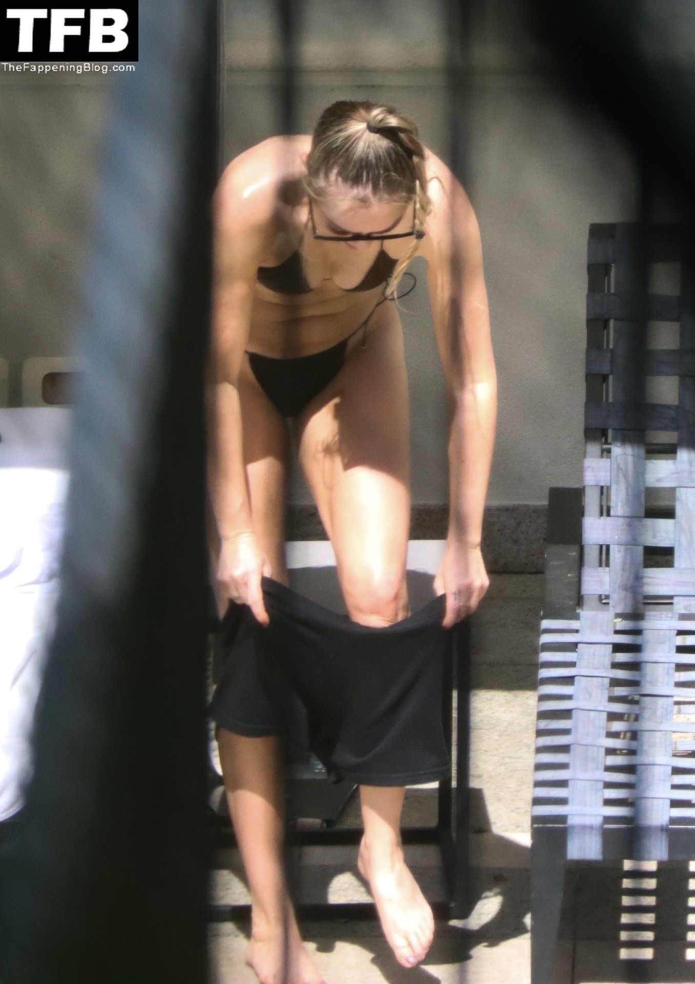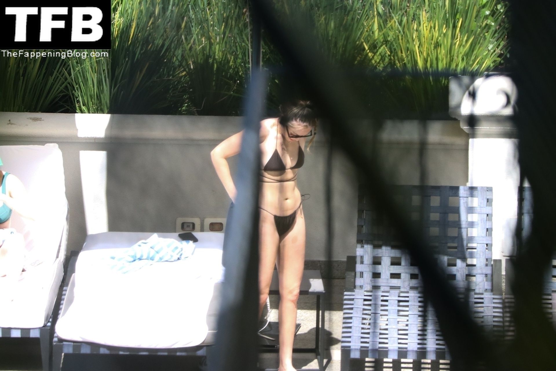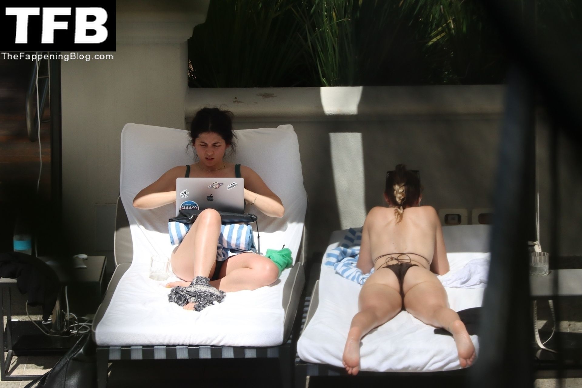 La sœur de Miley Cyrus, Brandi Cyrus, se détend au bord de la piscine de son hôtel avant sa performance à Lollapalooza à São Paulo, le 25/03/2022.