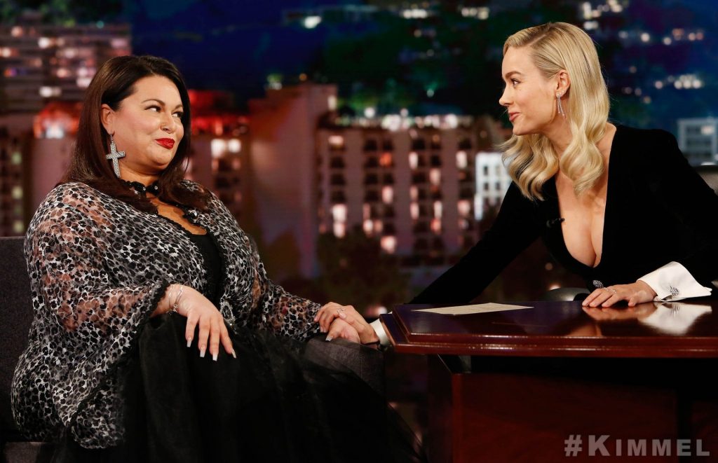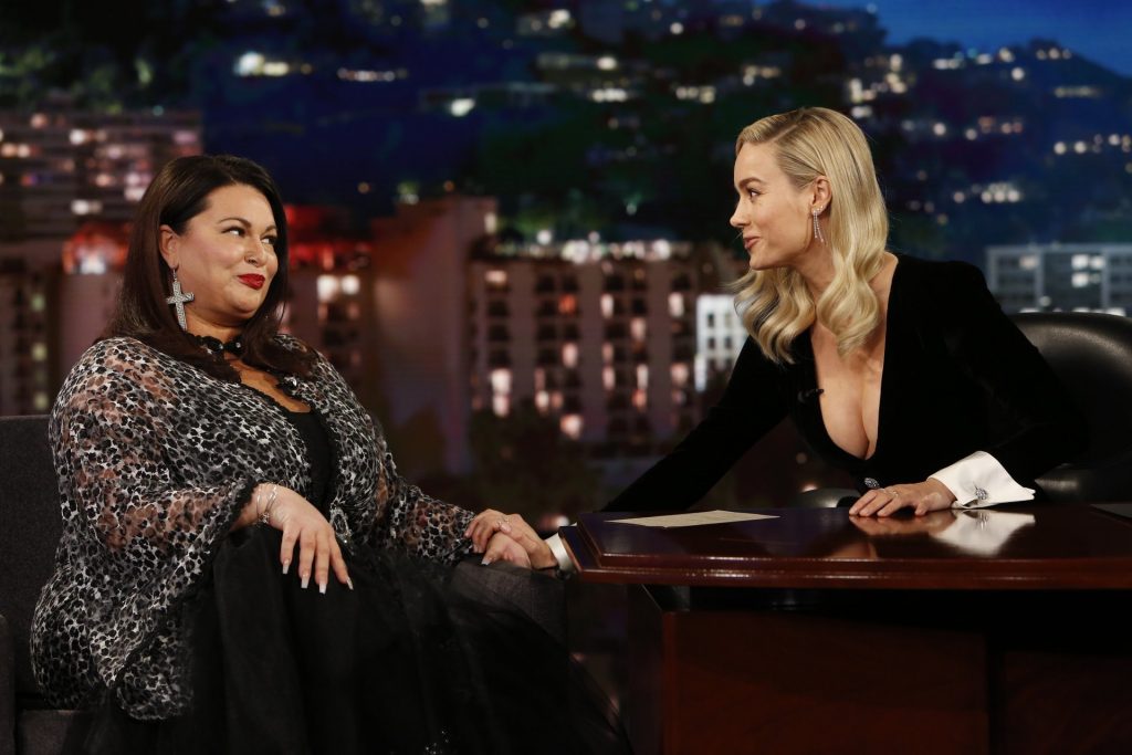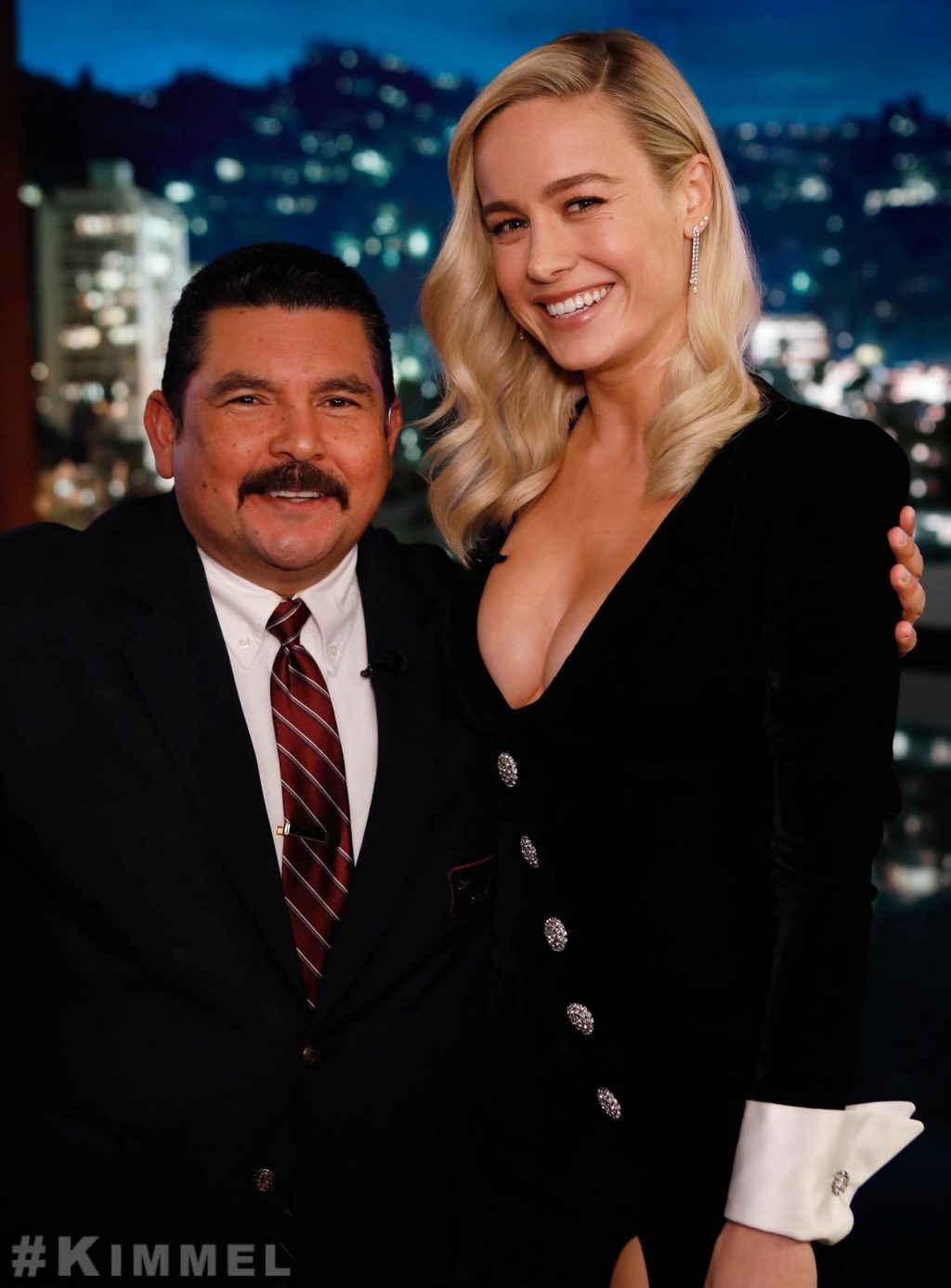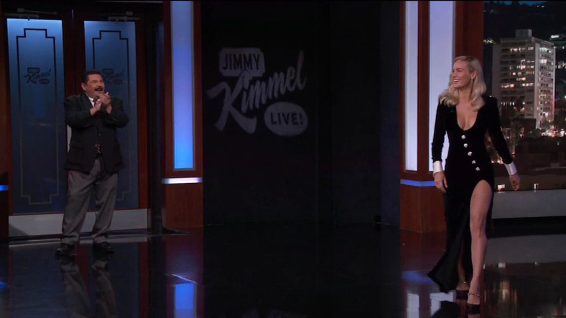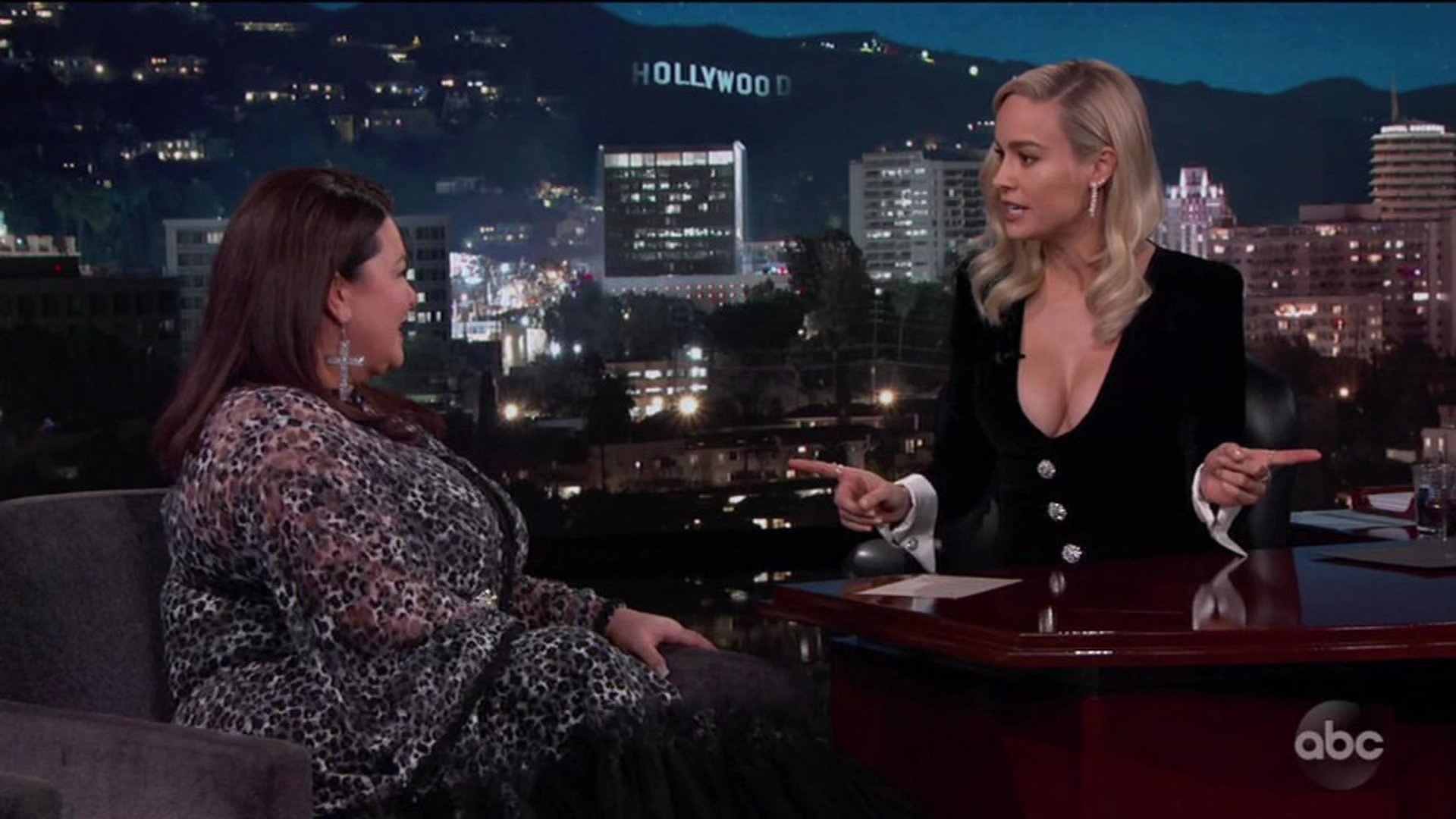 Brie Larson affiche sa poitrine époustouflante de 34D dans une robe incroyablement décolletée alors qu’elle assure l’animation de Jimmy Kimmel Live, le 19/11/2019. La star de Captain Marvel et du Fappening a évité de justesse un incident vestimentaire en animant le talk-show nocturne dans une robe noire éblouissante qui non seulement mettait en valeur sa poitrine mais comportait aussi une fente sexy jusqu’en haut de la cuisse.