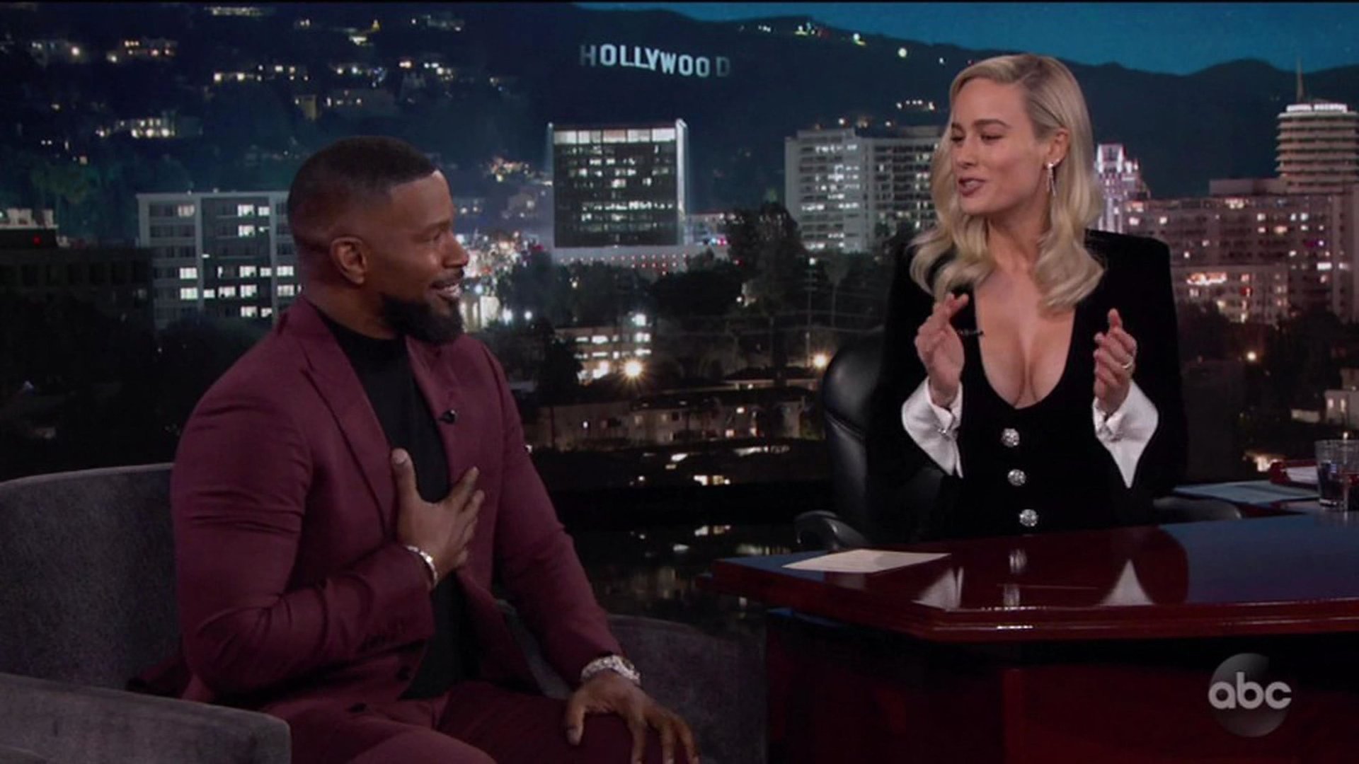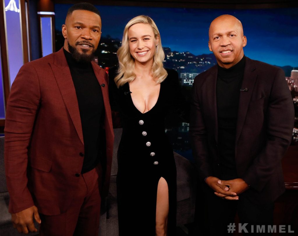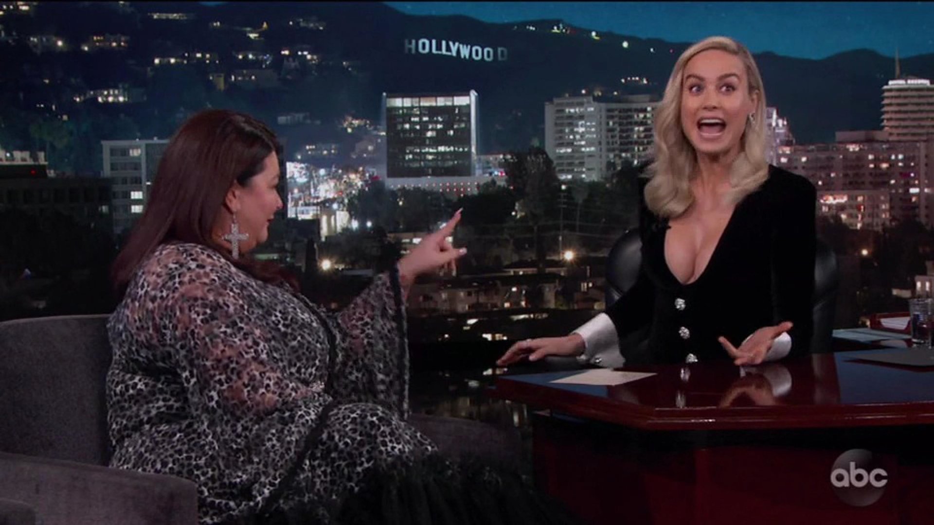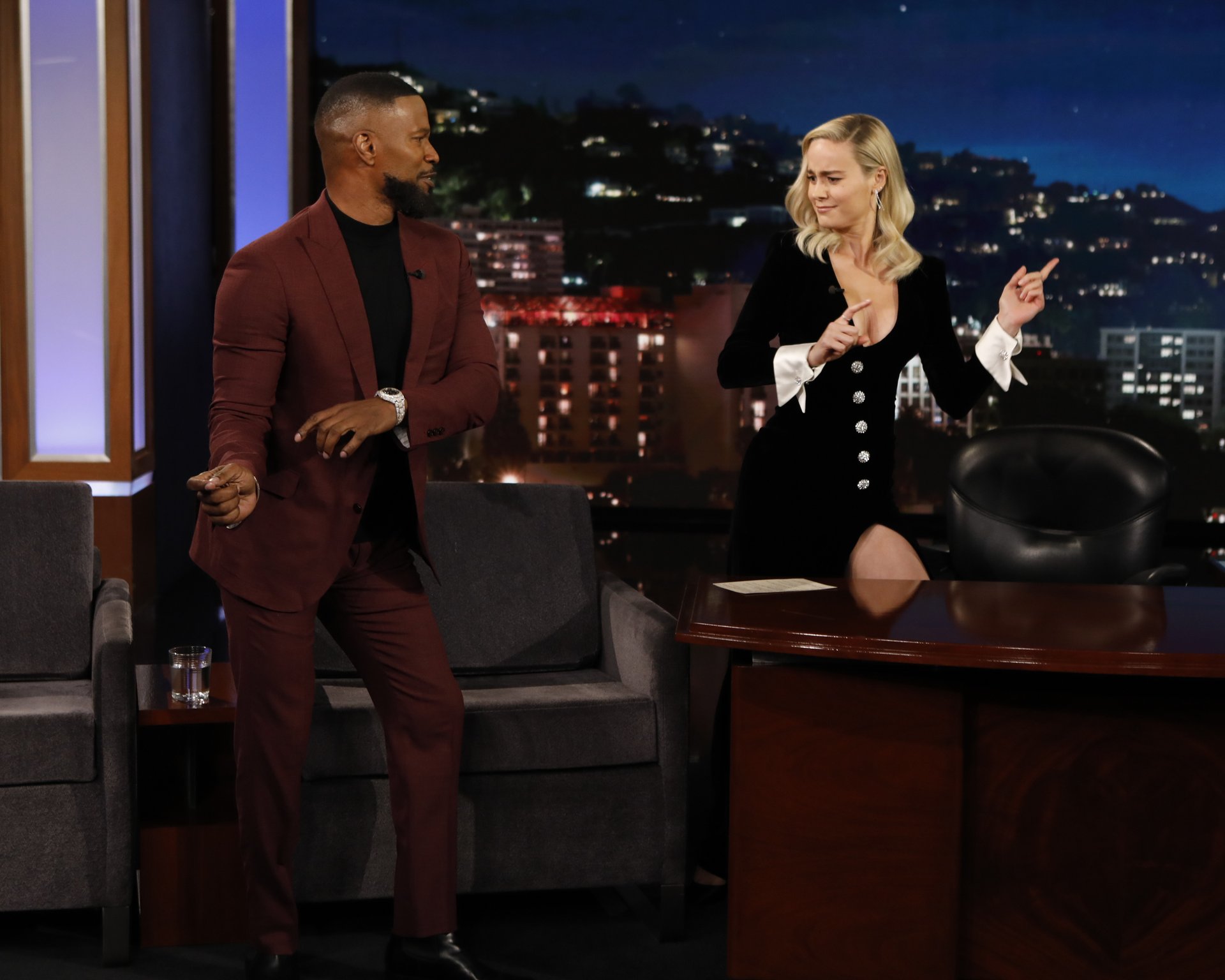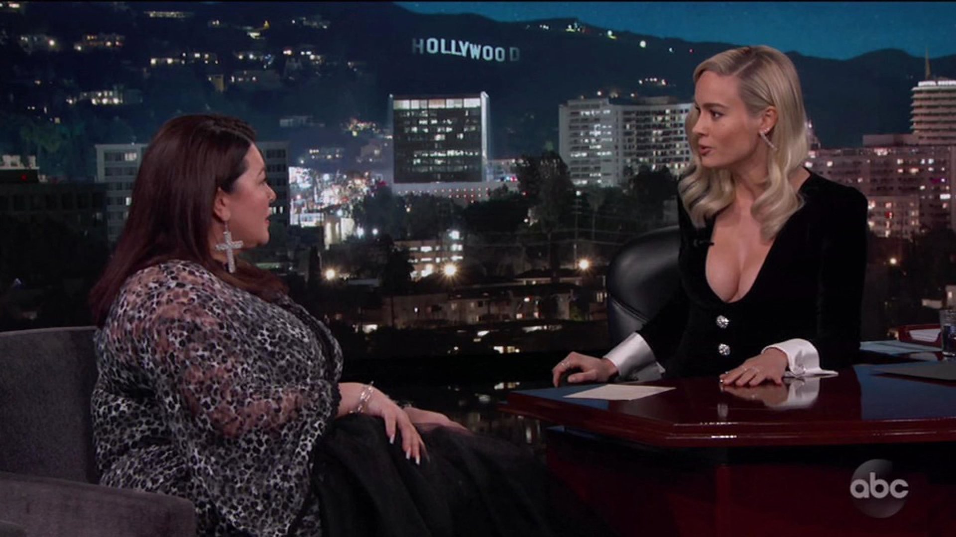 Molly a confirmé que c’était son super pouvoir, ce qui a poussé Brie à pointer sa robe en plaisantant : « Je t’ai facilité la tâche ! Voilà ! » Molly lui a alors dit : « Tu es un 30F, ce qui correspond à un triple D à G mais ce n’est pas ce que tu achètes. » Une Brie stupéfaite a répondu : « Je ne l’achète pas ! » Molly a ajouté : « Tu achètes plutôt des 34D, » ce à quoi Brie a répliqué : « Oh mon dieu ! » Molly lui a ensuite demandé : « C’est ce que tu achètes ? » et la star a confirmé : « Oui ! » Après que Molly s’est plainte que « personne en Amérique ne connaît les tailles de soutien-gorge », Brie a sorti une photo de Taylor Swift dans le nouveau film Cats et a dit : « J’ai un défi pour toi. Quelle est la taille de soutien-gorge de celle-ci ? » Molly a répondu en riant : « Elle est un peu plus petite, elle est D. » Brie, qui avait plaisanté sur le nouveau film Cats dans le monologue d’ouverture de l’émission, a demandé : « Tu prends en compte la fourrure ? » ce à quoi Molly a répondu : « Oh oui. » Également dans l’émission, Brie a interviewé son co-vedette de Just Mercy, Jamie Foxx, qui a aussi commenté son look en lui disant : « Tu es incroyable, tu es magnifique ! »