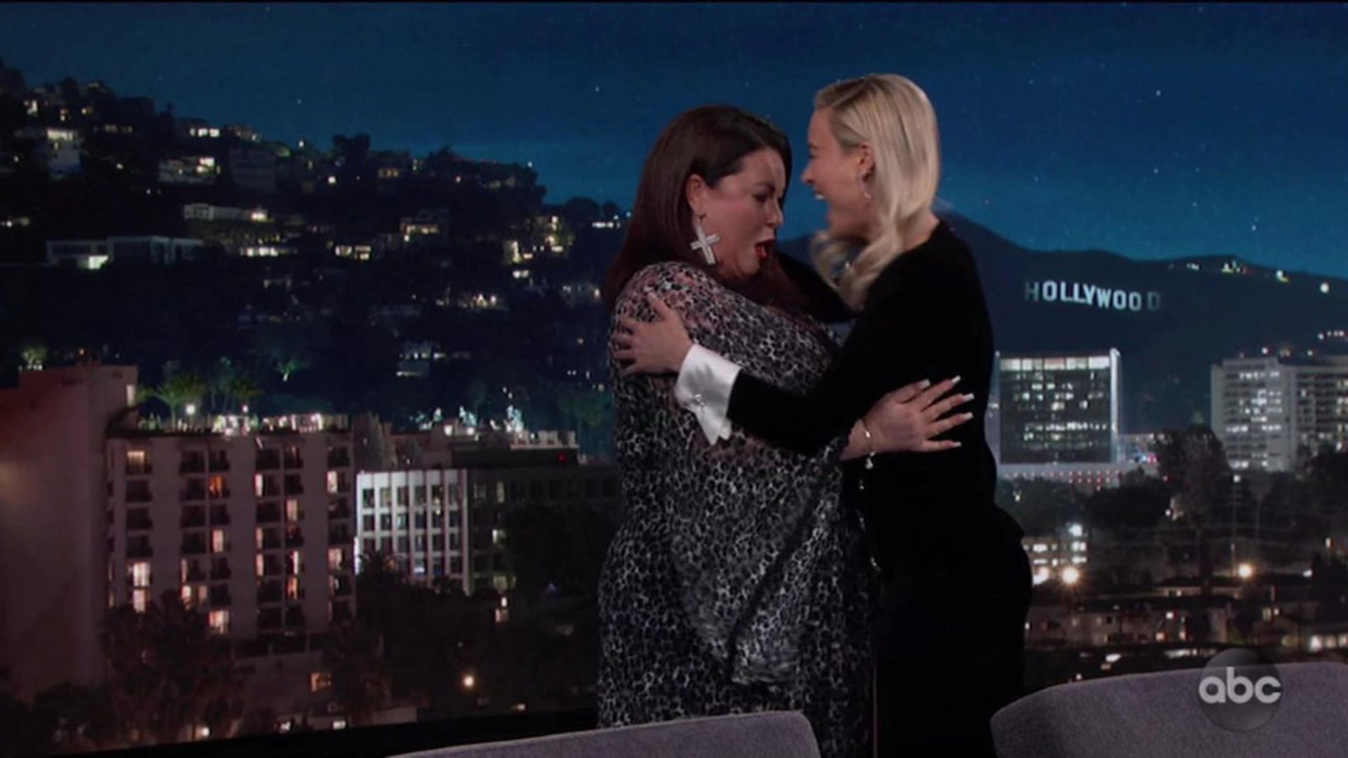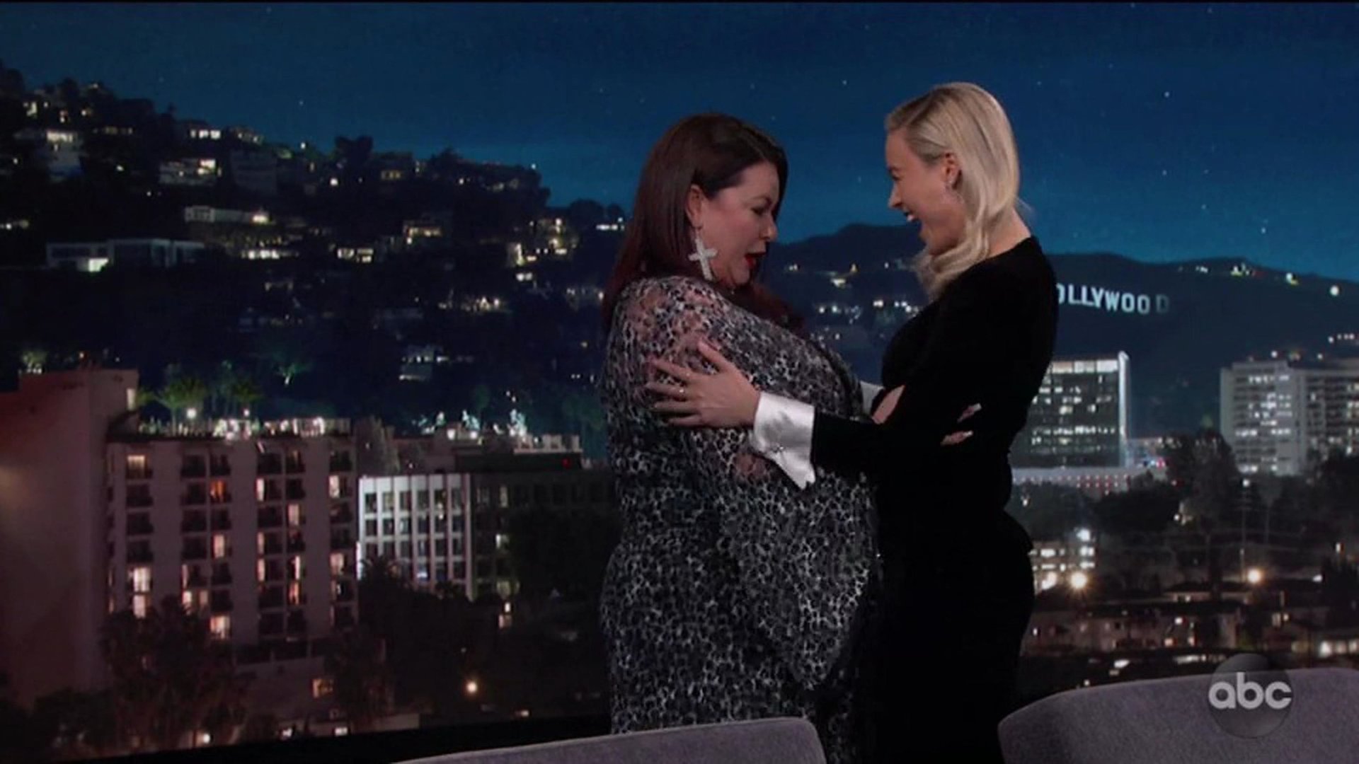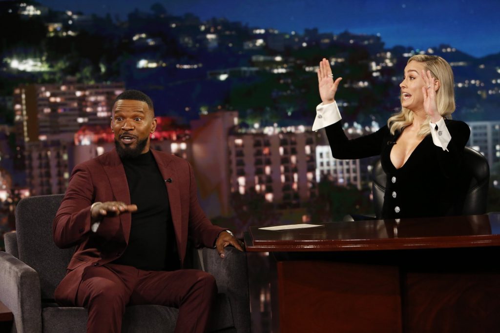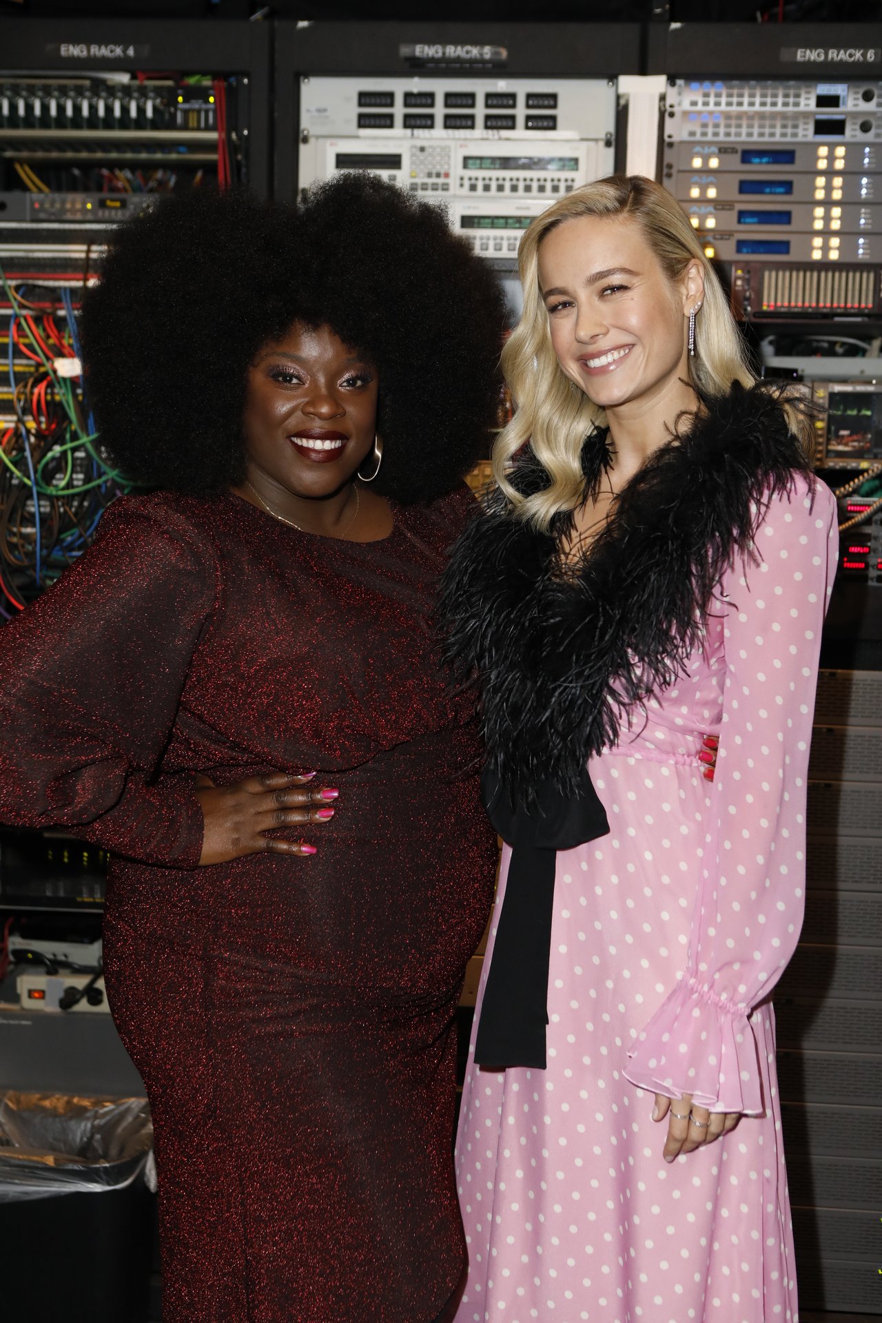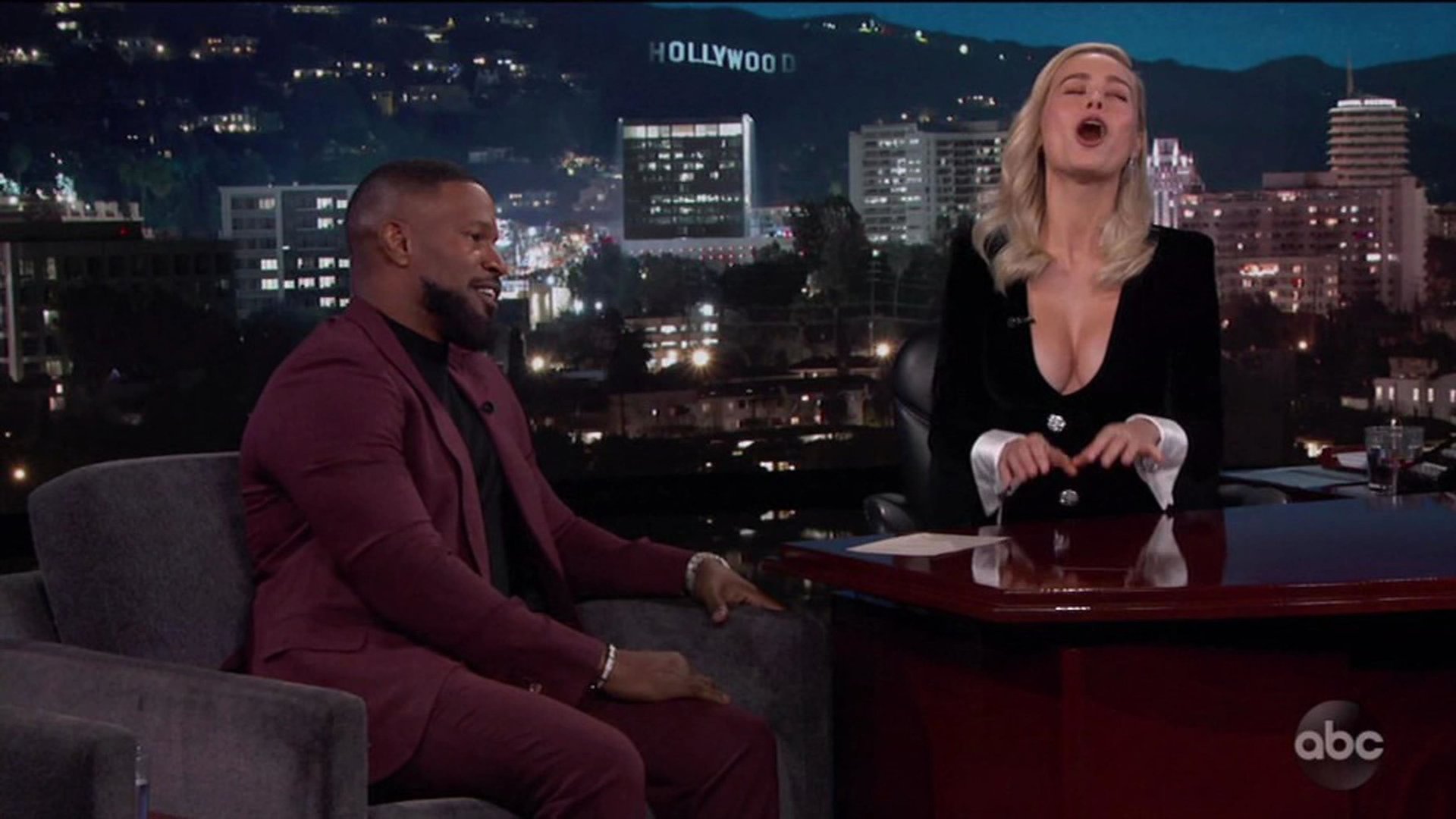 Molly a confirmé que c’était son super pouvoir, ce qui a poussé Brie à pointer sa robe en plaisantant : « Je t’ai facilité la tâche ! Voilà ! » Molly lui a alors dit : « Tu es un 30F, ce qui correspond à un triple D à G mais ce n’est pas ce que tu achètes. » Une Brie stupéfaite a répondu : « Je ne l’achète pas ! » Molly a ajouté : « Tu achètes plutôt des 34D, » ce à quoi Brie a répliqué : « Oh mon dieu ! » Molly lui a ensuite demandé : « C’est ce que tu achètes ? » et la star a confirmé : « Oui ! » Après que Molly s’est plainte que « personne en Amérique ne connaît les tailles de soutien-gorge », Brie a sorti une photo de Taylor Swift dans le nouveau film Cats et a dit : « J’ai un défi pour toi. Quelle est la taille de soutien-gorge de celle-ci ? » Molly a répondu en riant : « Elle est un peu plus petite, elle est D. » Brie, qui avait plaisanté sur le nouveau film Cats dans le monologue d’ouverture de l’émission, a demandé : « Tu prends en compte la fourrure ? » ce à quoi Molly a répondu : « Oh oui. » Également dans l’émission, Brie a interviewé son co-vedette de Just Mercy, Jamie Foxx, qui a aussi commenté son look en lui disant : « Tu es incroyable, tu es magnifique ! »