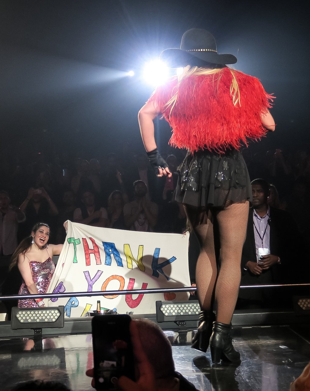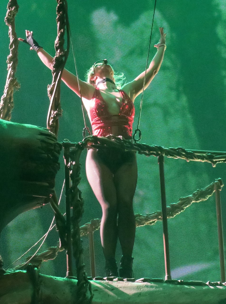 Bien qu'elle ait l'air bien pour son âge, il est peut-être temps de penser à passer à un concert plus mature. Je pense qu'elle a dépassé l'époque où elle "courait sur scène en tenues de Fredericks of Hollywood" dans sa carrière.