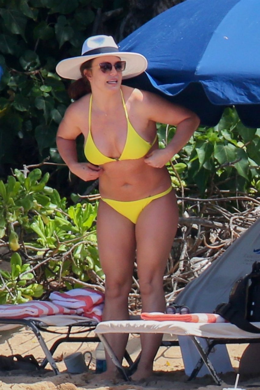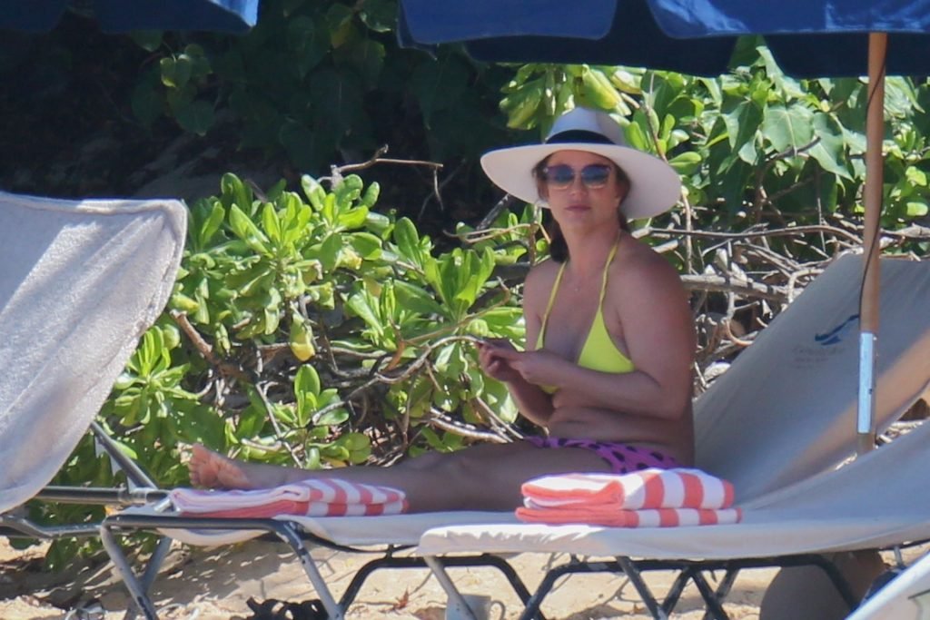 Britney Spears porte un tout petit bikini jaune à la plage à Hawaï, le 10/09/2019. La chanteuse semble profiter d’un moment de détente après avoir récemment obtenu un nouveau tuteur suite à la démission de son père pour “raisons de santé”.