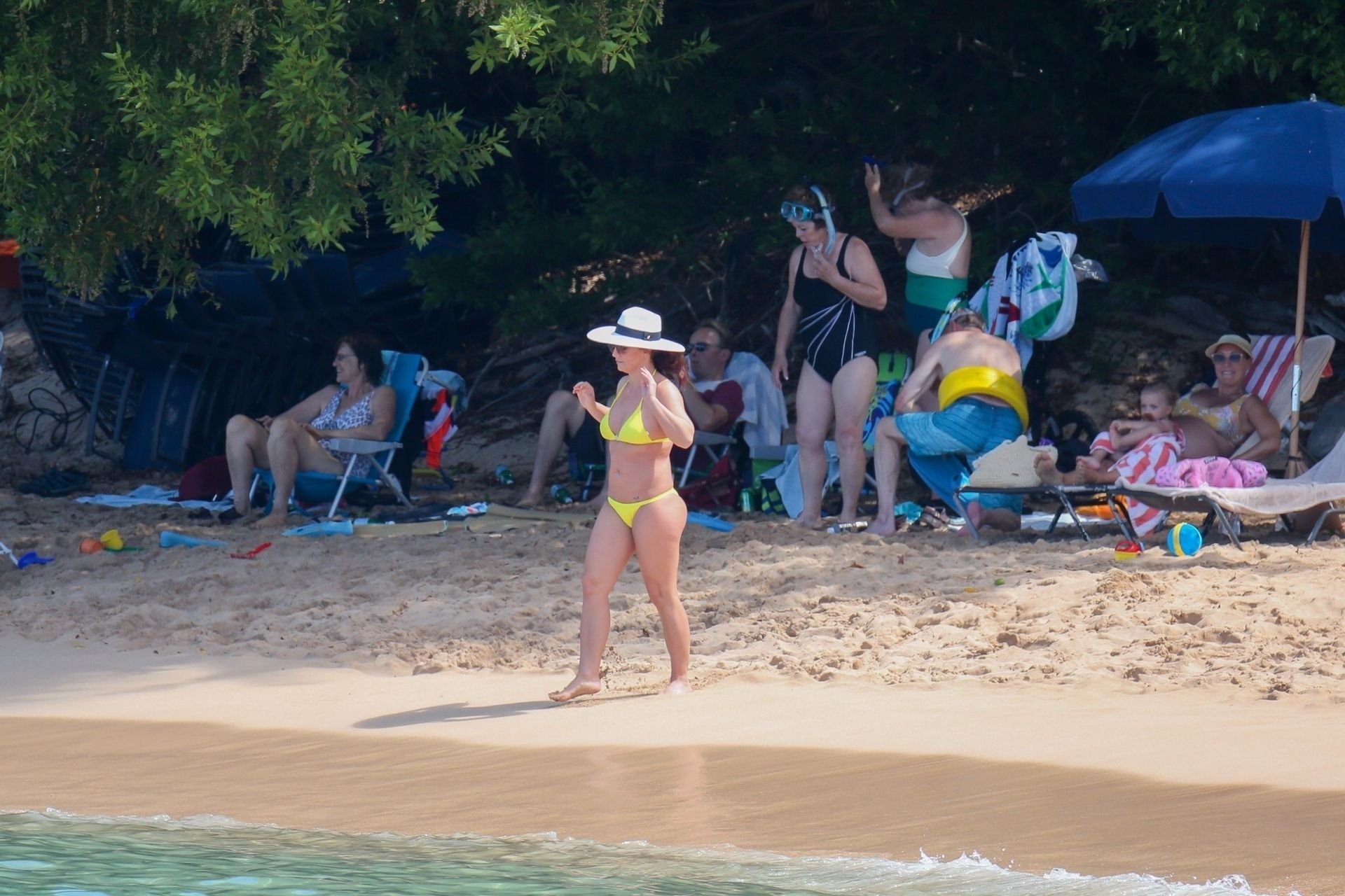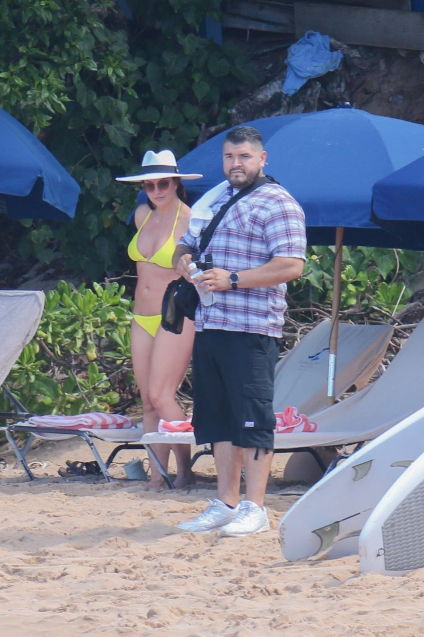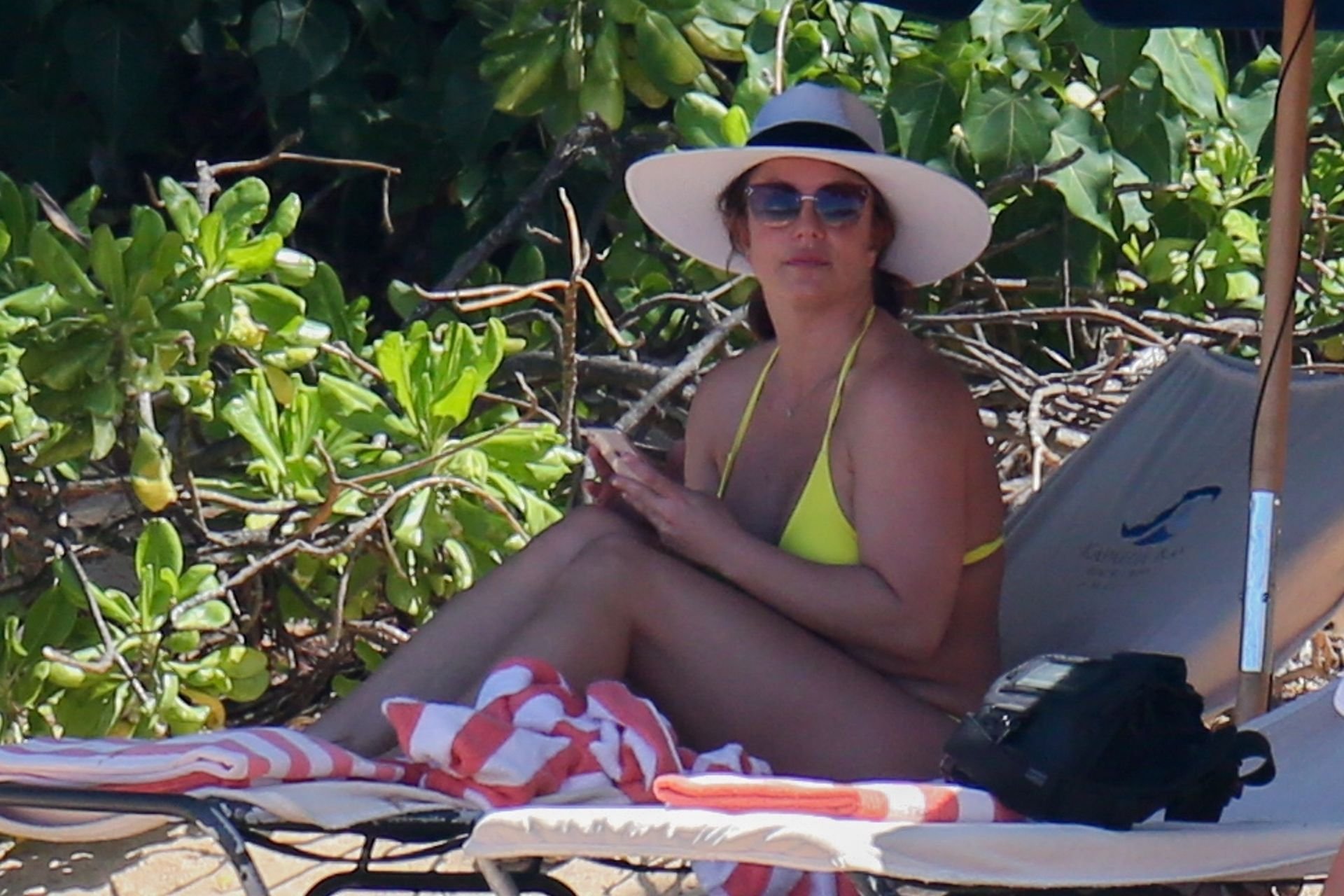 Britney Spears porte un tout petit bikini jaune à la plage à Hawaï, le 10/09/2019. La chanteuse semble profiter d’un moment de détente après avoir récemment obtenu un nouveau tuteur suite à la démission de son père pour “raisons de santé”.
