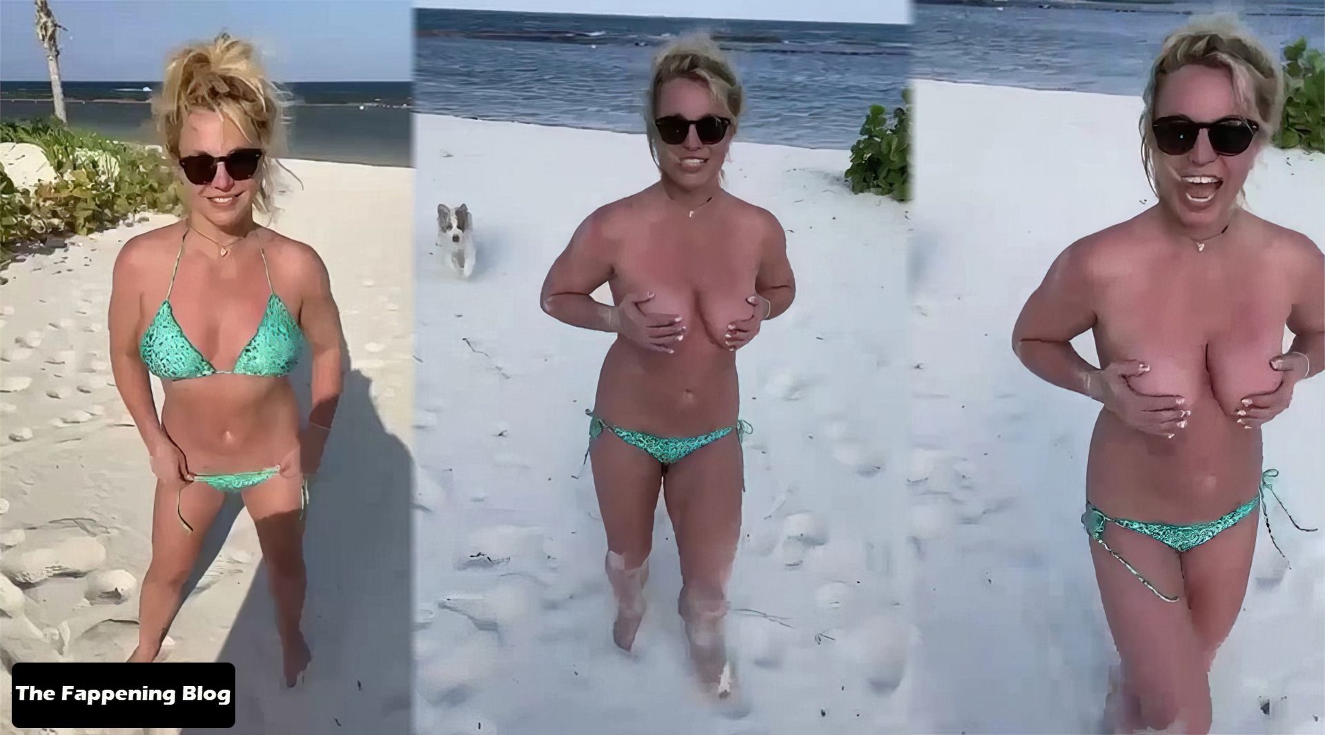 Britney Spears profite d’une journée en posant en bikini et torse nu sur la plage – Instagram, 16/05/2022.