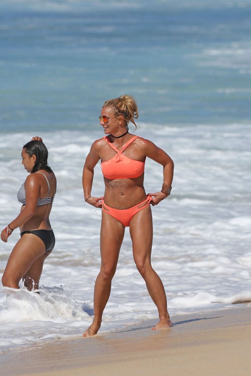 Britney Spears montre son corps chaud dans un bikini pêche à la plage à Hawaï, 08/06/16. Très belles photos de paparazzi, elle a l’air géniale ! Britney Spears est une chanteuse et actrice américaine. Âge : 34 ans (2 décembre 1981).