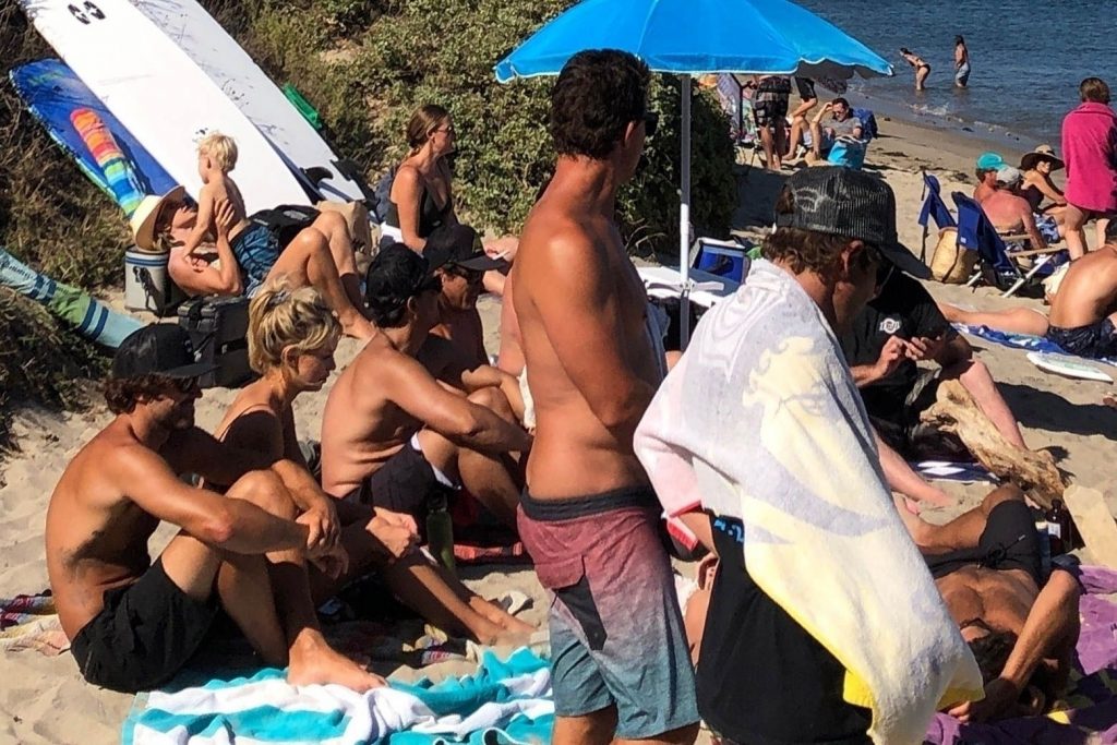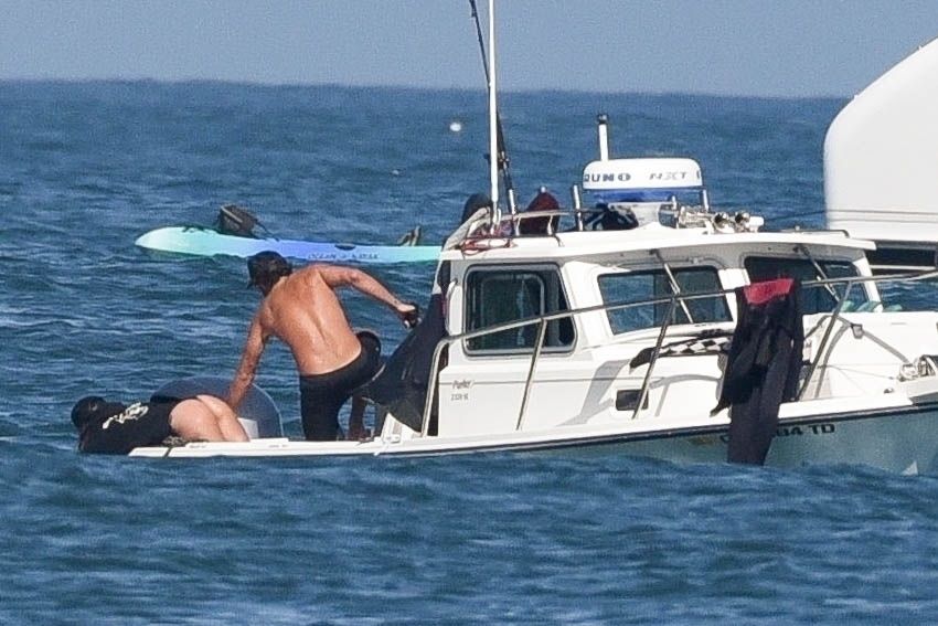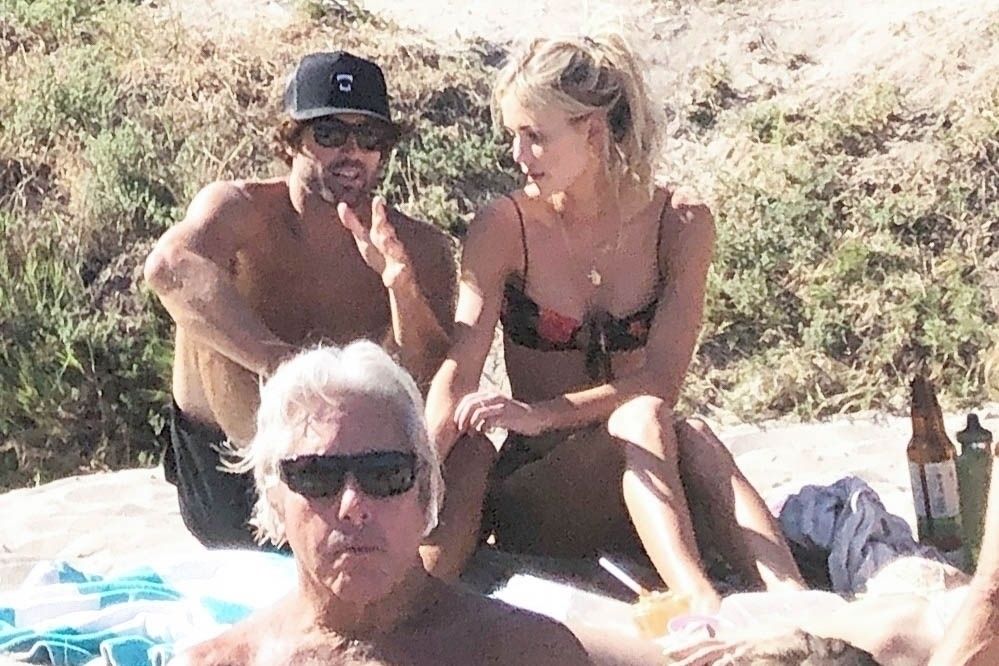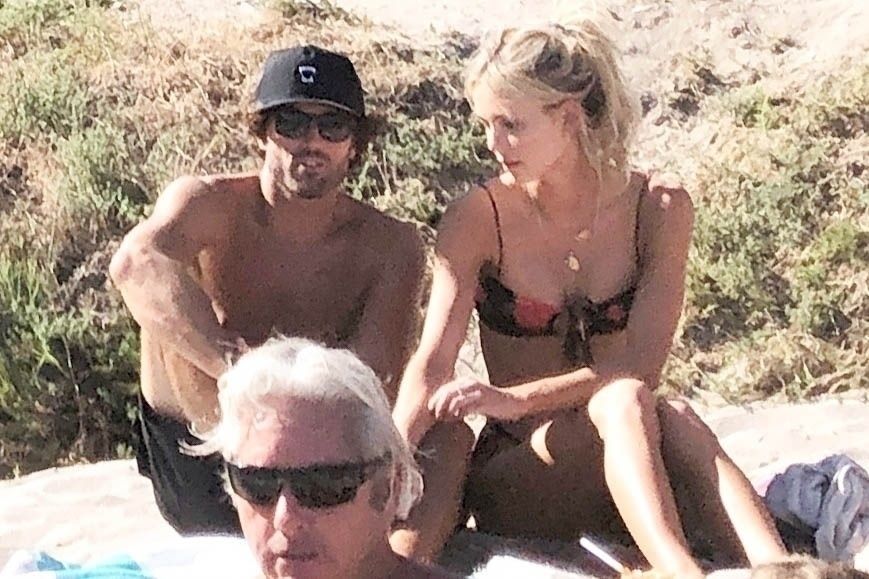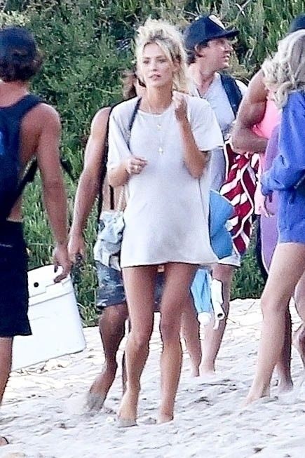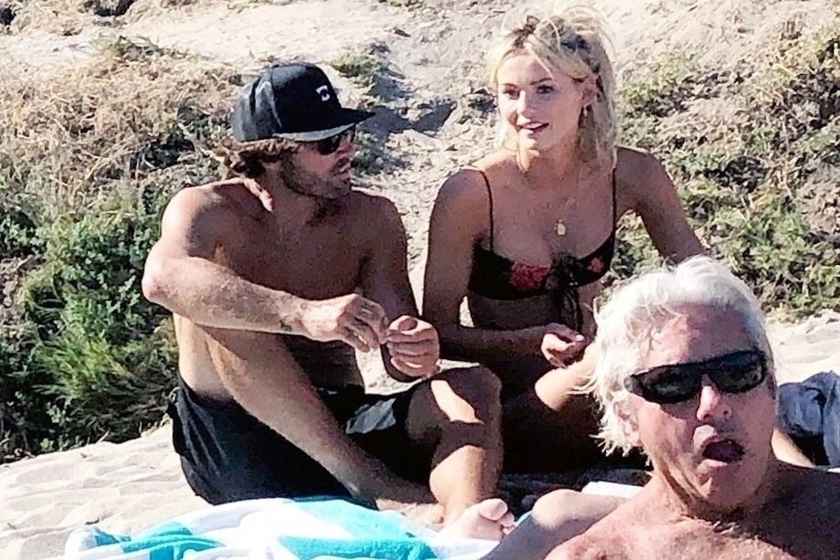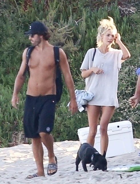 Reality TV Star Brody Jenner passe la journée à se détendre sur la plage avec des amis et une inconnue blonde et brune à Malibu. Le charmant mondain exhibait ses abdos sculptés en marchant torse nu sur la plage avec ses amis.