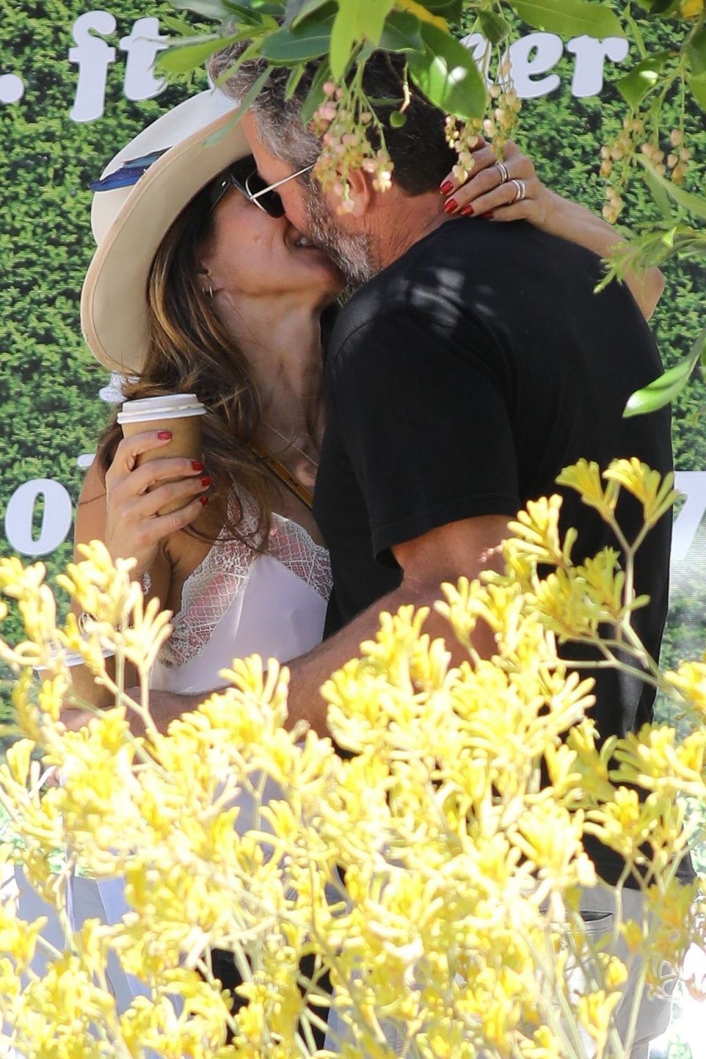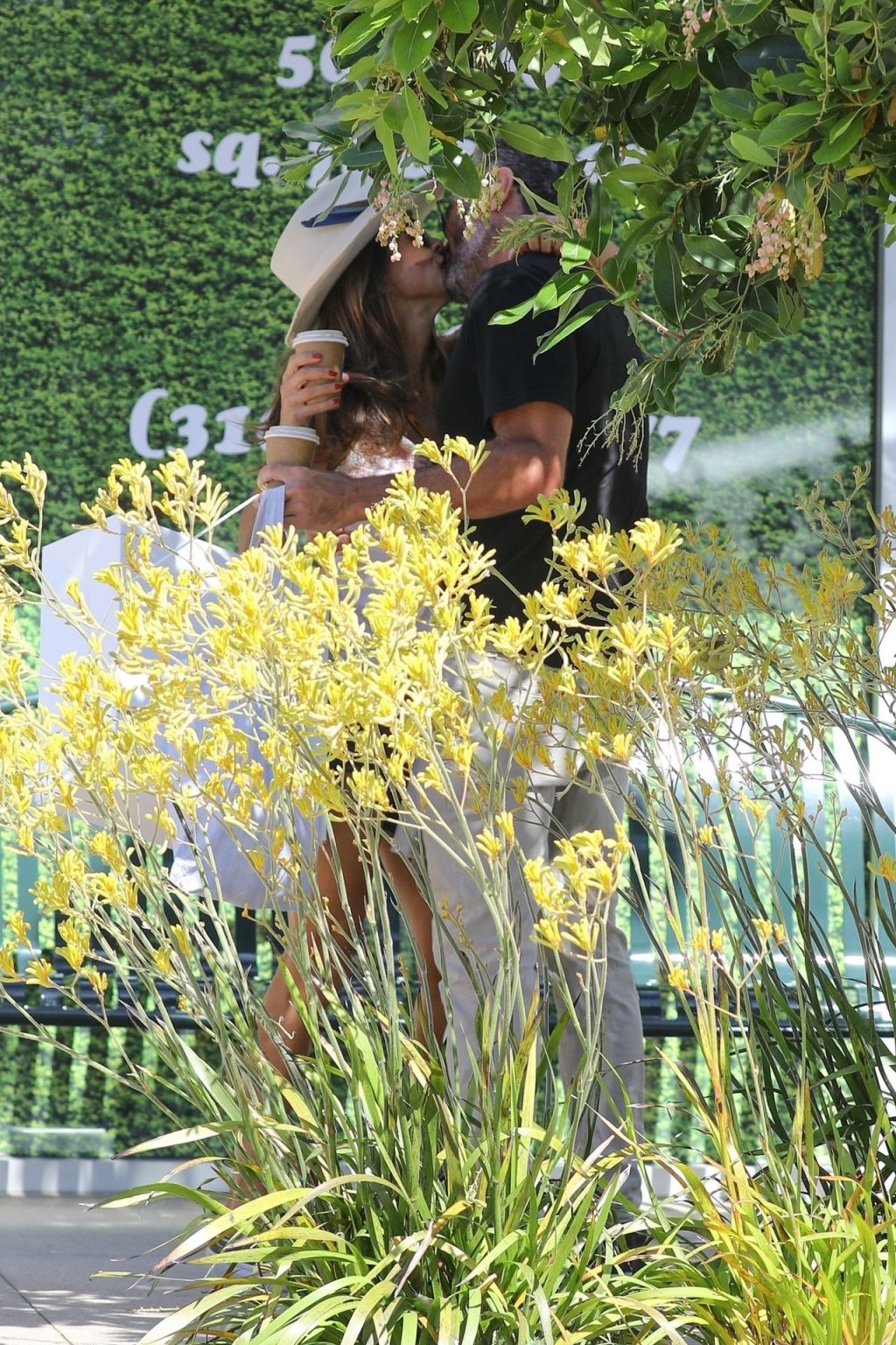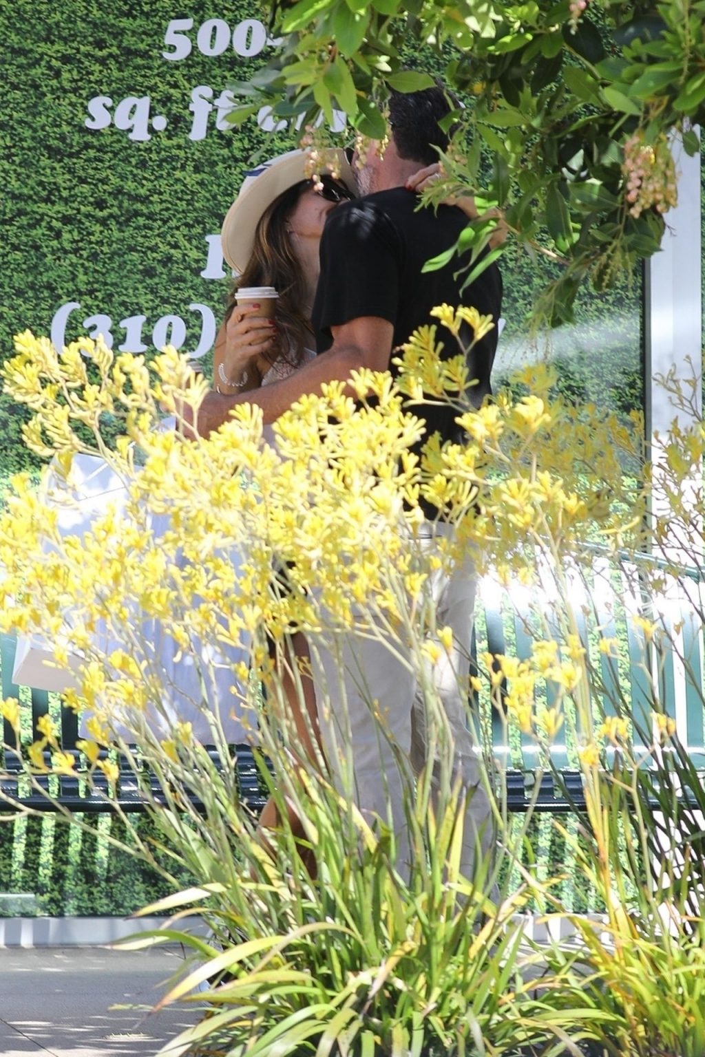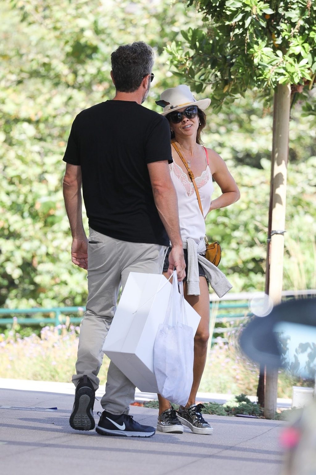 Sexy MILF Brooke Burke et son petit ami Scott Rigsby montrent un peu d’affection en public lors d’une sortie shopping à Malibu, le 13/06/2020.