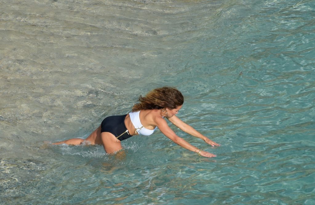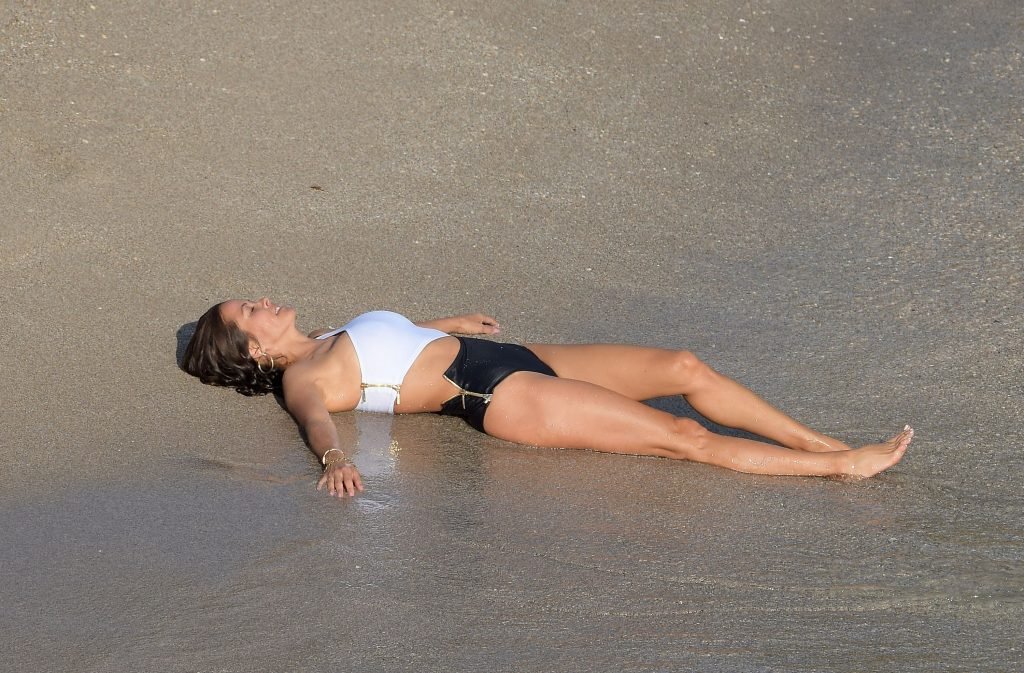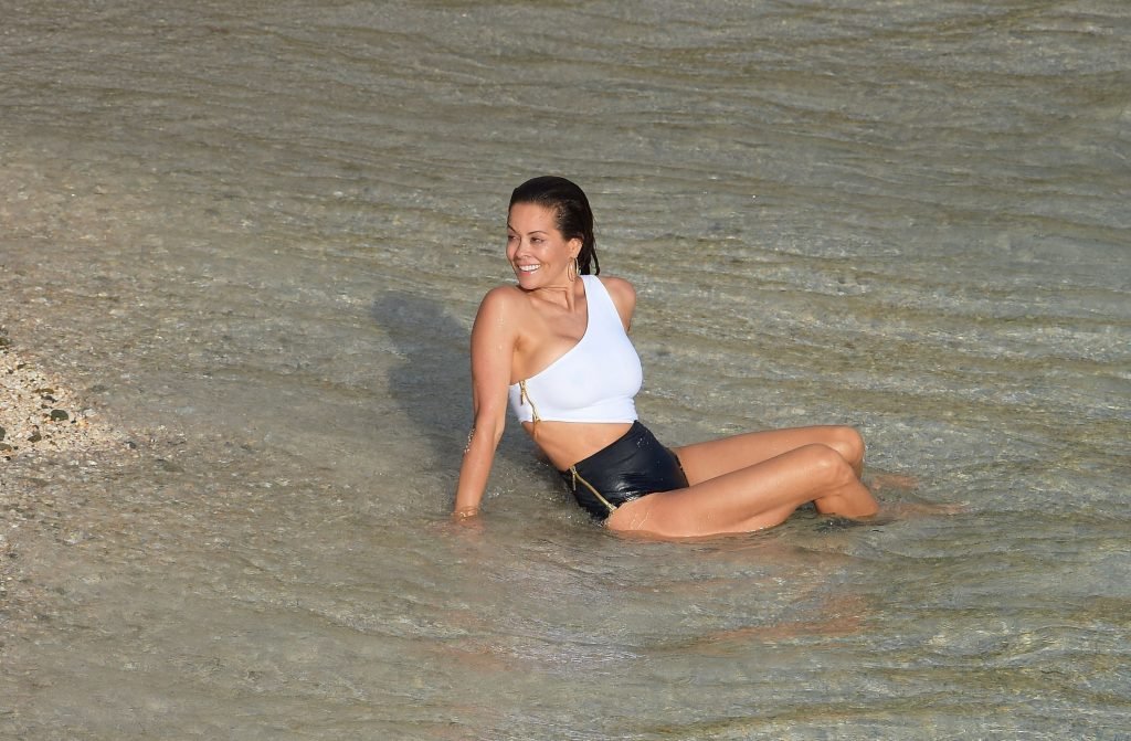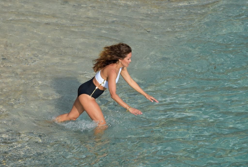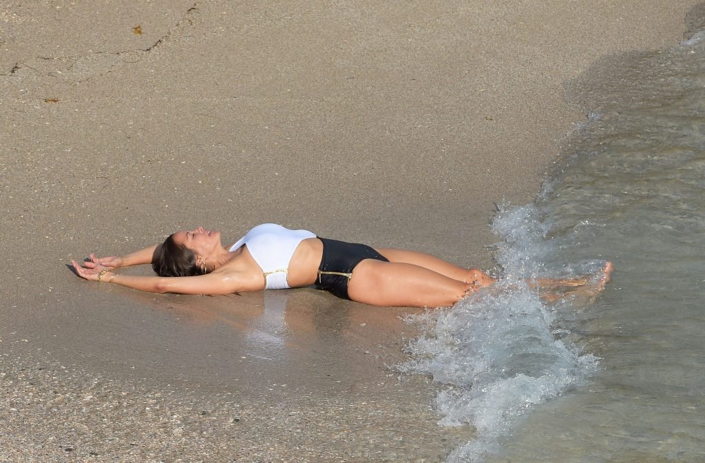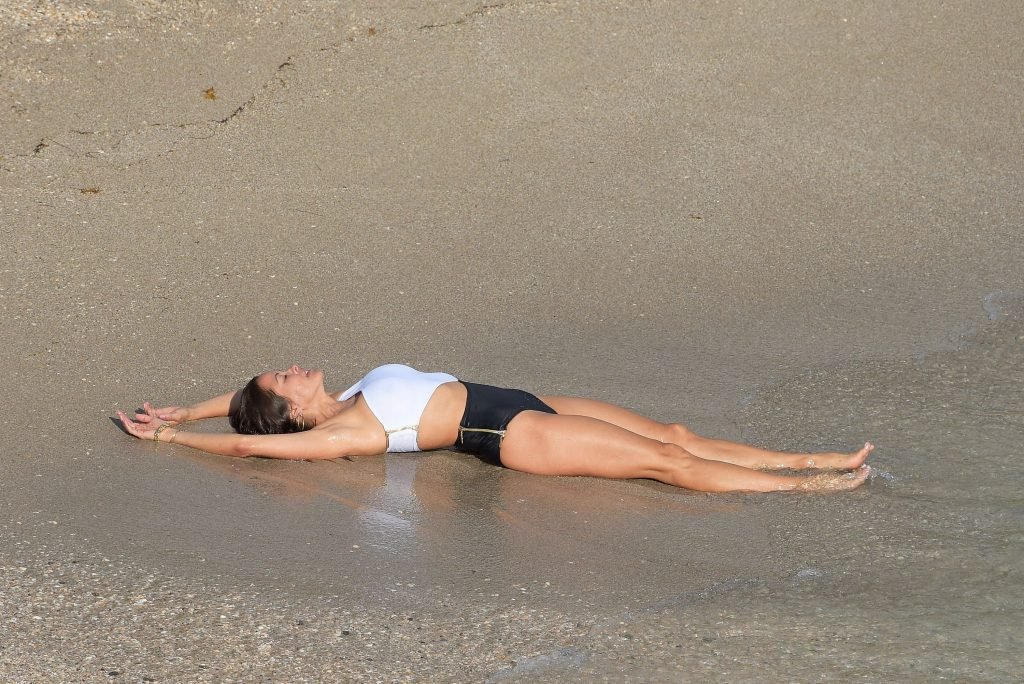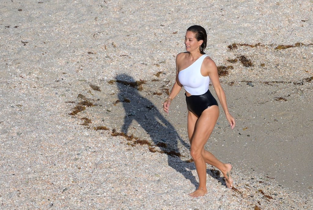 Brooke Burke exhibe son corps parfait dans un maillot de bain noir et blanc sur la plage de St. Barths, 29/03/2017. Brooke Burke est une actrice et mannequin américaine. Âge – 45 ans.