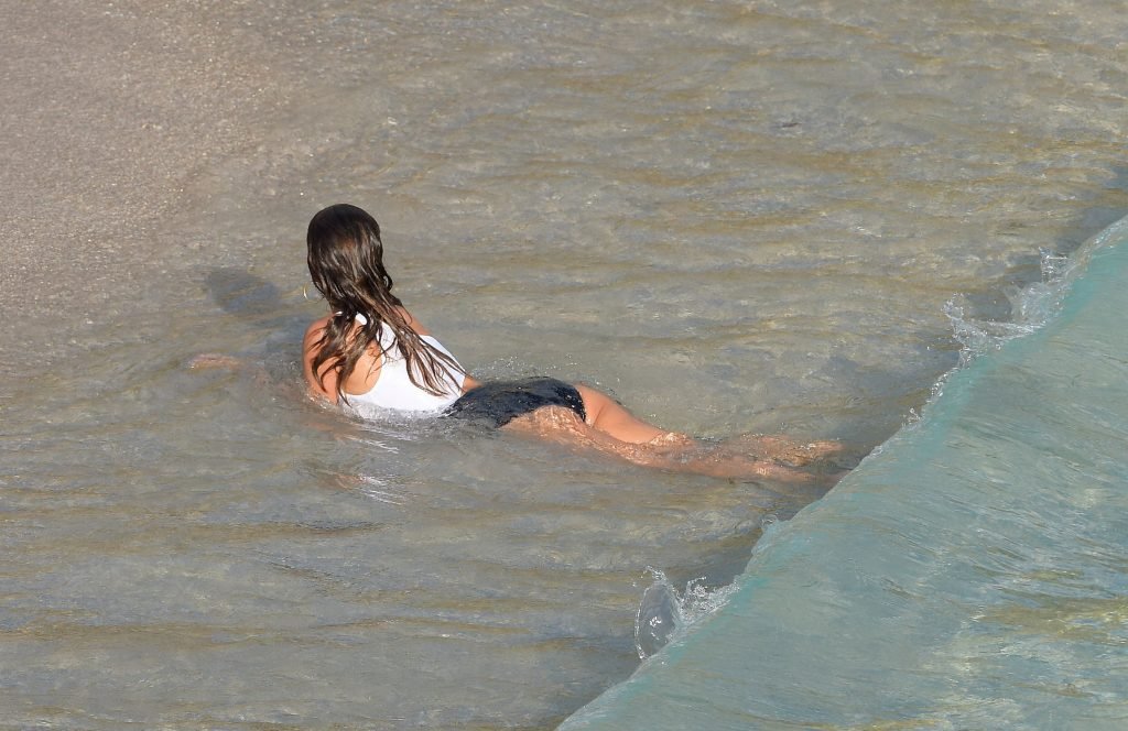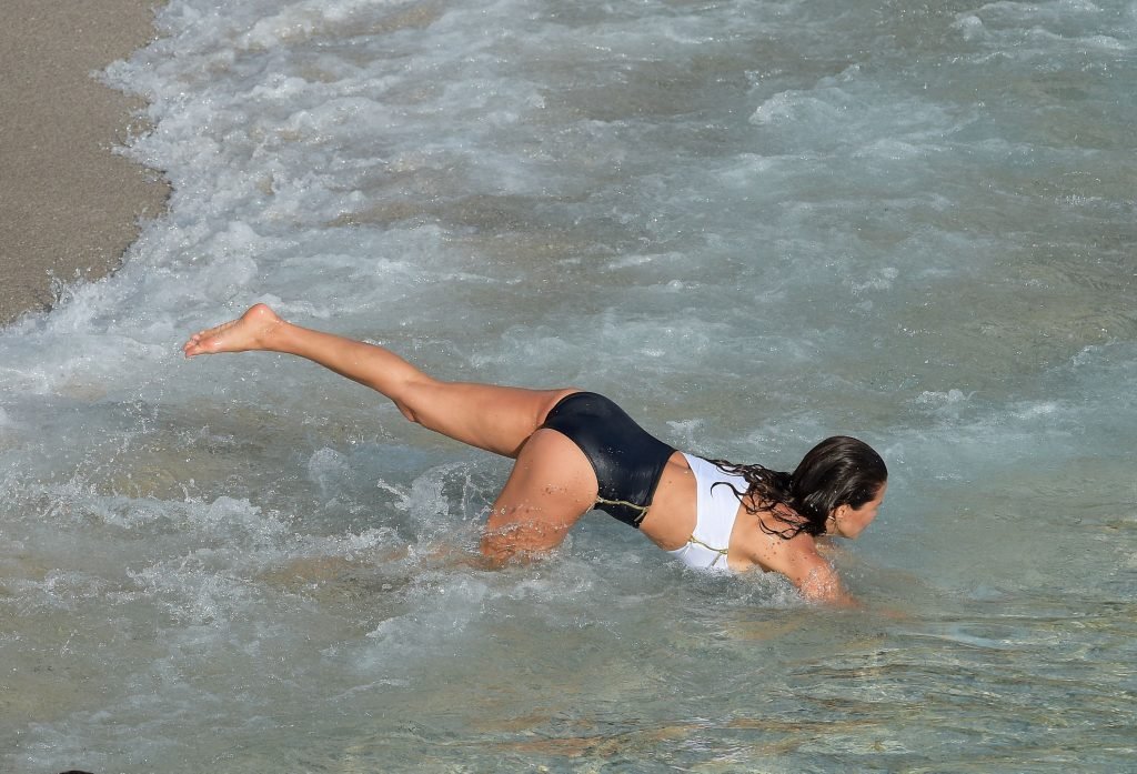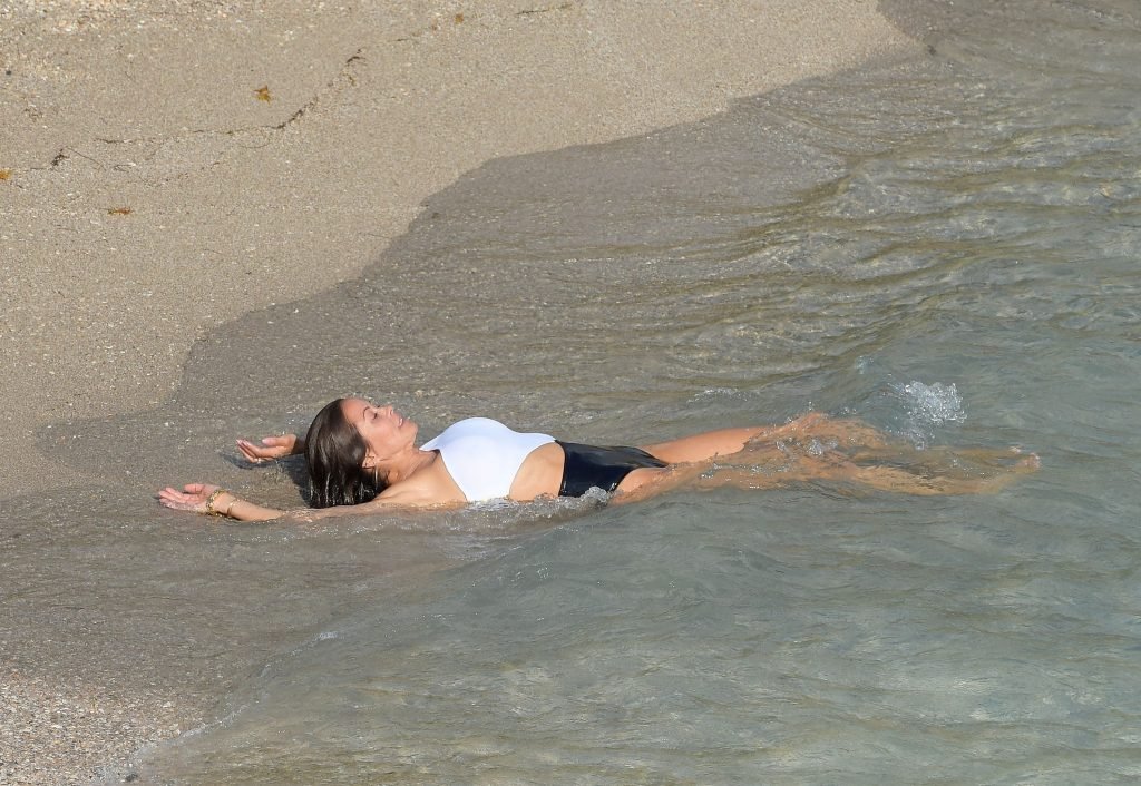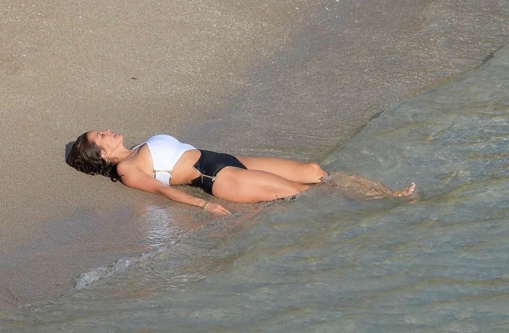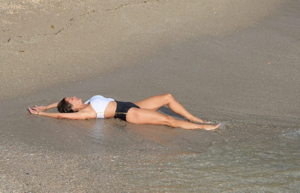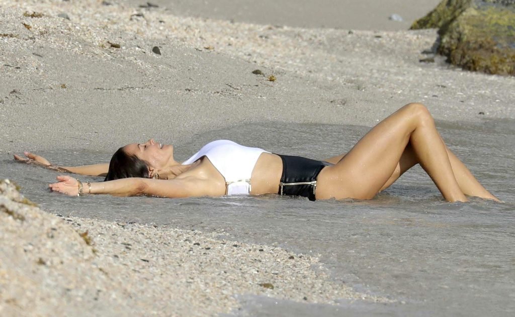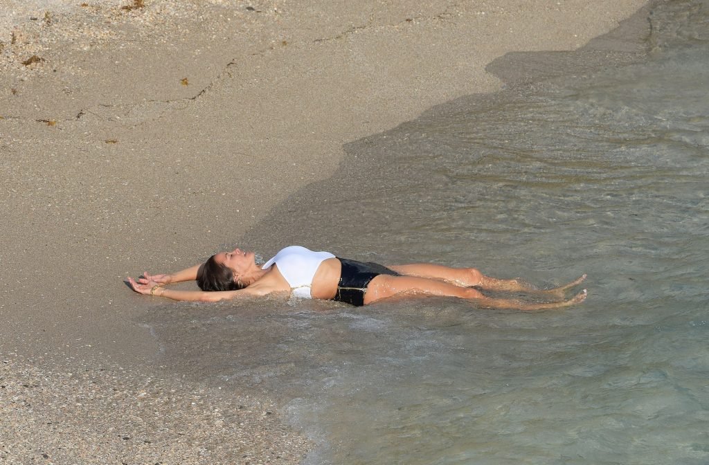 Brooke Burke exhibe son corps parfait dans un maillot de bain noir et blanc sur la plage de St. Barths, 29/03/2017. Brooke Burke est une actrice et mannequin américaine. Âge – 45 ans.